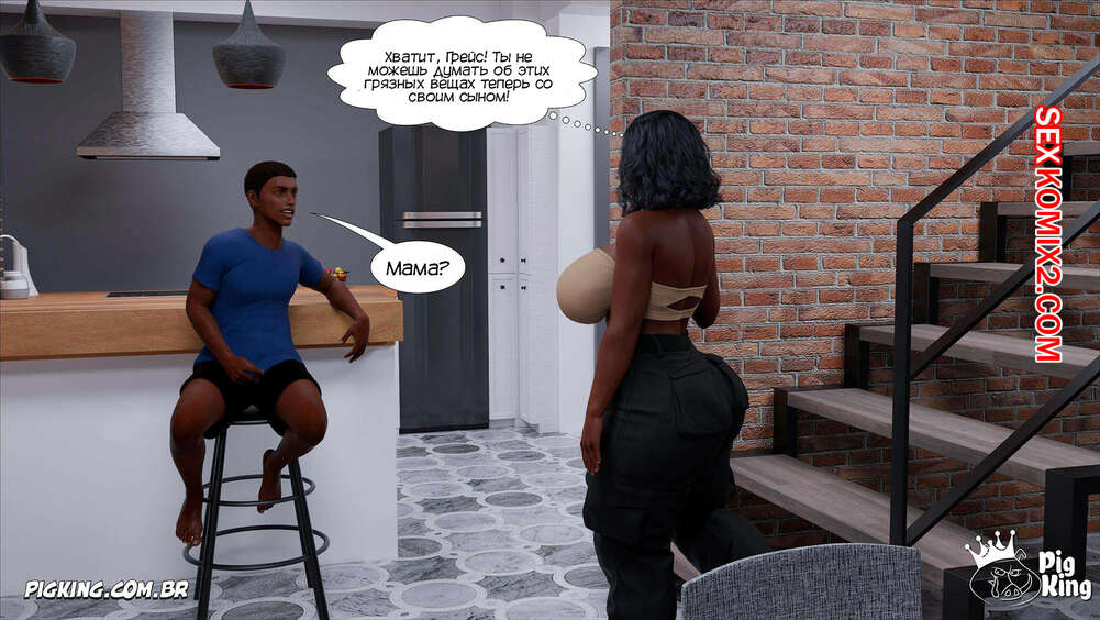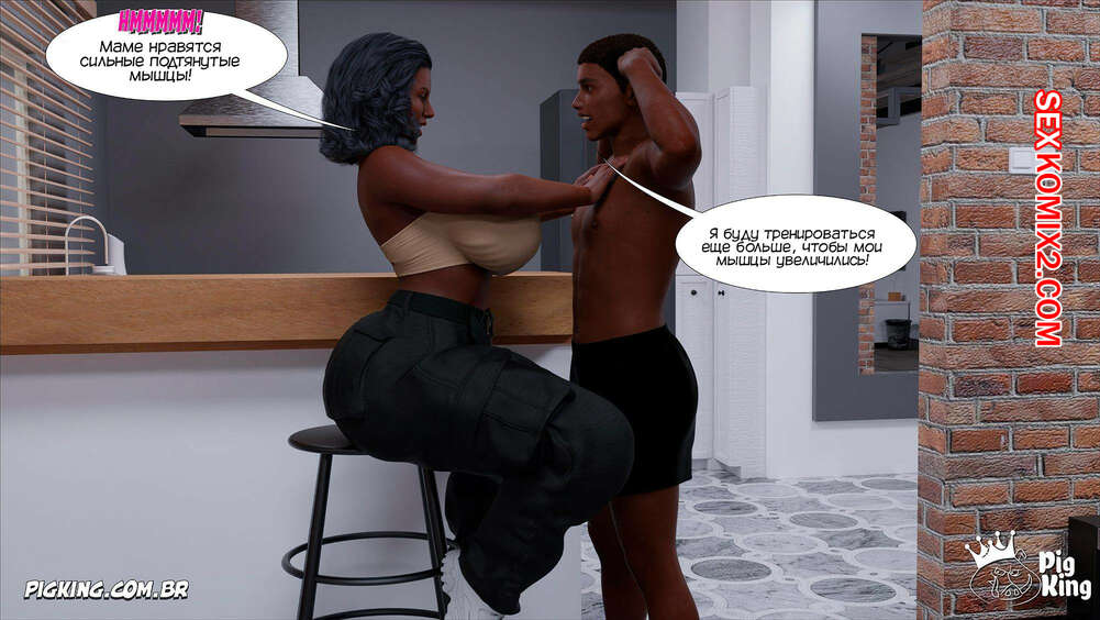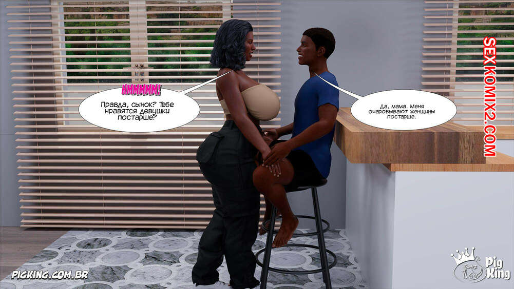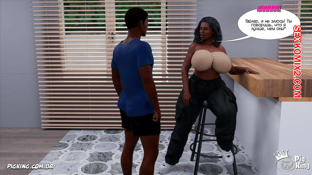 Порно комикс Большой черный член. Часть 4. Big Black Cocks. CrazyDad3D Грейс очень возбуждена и хочет узнать, привлекает ли она своего сына так же, как свеого отца. Милфа осталась наедине с Тайлером и стала его соблазнять, желая услышать от сына комплименты.