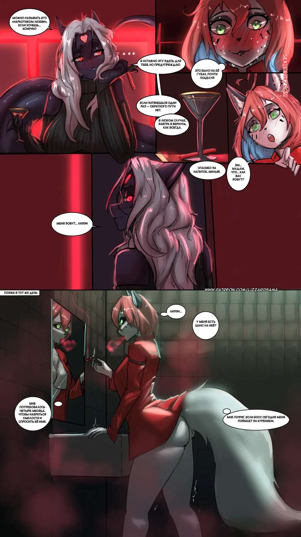 Порно комикс Не связывайся с Лиззи. Dont Deal With Lizzy. LizzardSama Горячая блондинка фурри по имени Лиззи отправилась в бар выпить. Там она познакомилась с барменшой и позвала ее в туалет повеселиться, сделав ей предложение перейти работать к ней.
