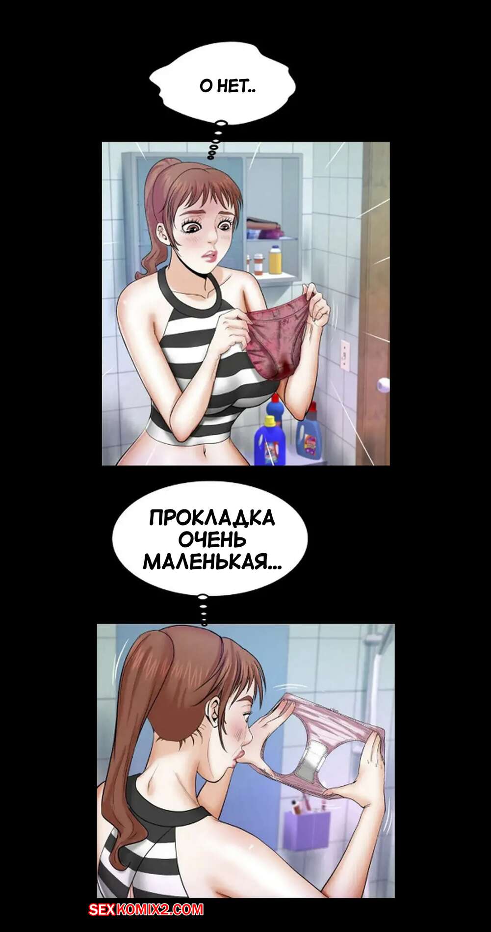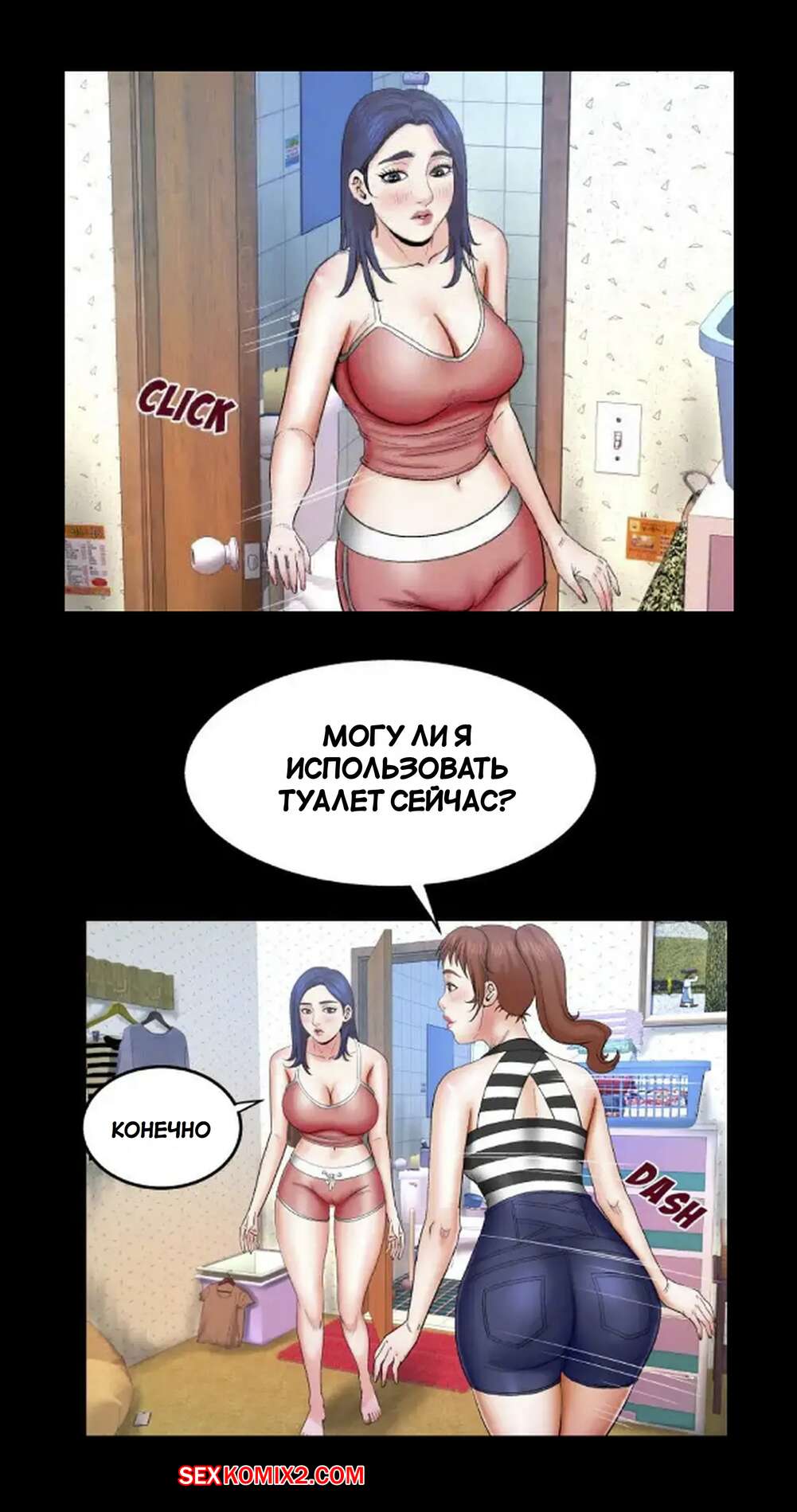 Порно комикс Моя тетя. Без цензуры. Часть 25. My Aunt. Toomics Девушка с трудом дождалась, когда парень выйдет из ванной, и сама побежала туда. Красотки долго не было, поэтому парень пошел туда к ней, чтобы узнать в чем дело.