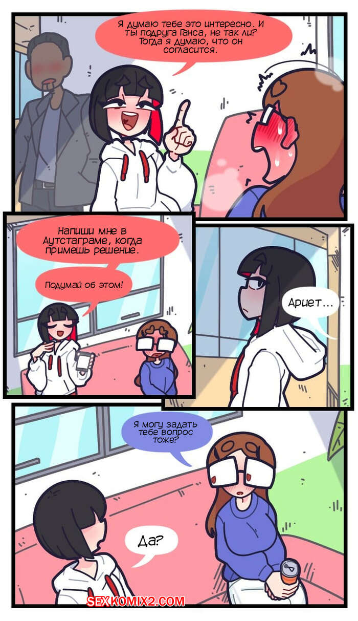Порно комикс Привет Марколин Р. Часть 14. Hello Marcolin R. Kozatchu Ариет и Ганс подумаывают о том, чтобы устроить групповуху. Они стали искать подходящую кандидатку и Ариет положила глаз на подругу парня из Франции. Она решила поговорить с ней в школе и предложить идею групповухи.