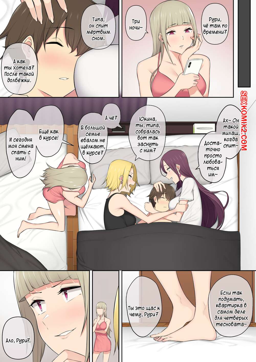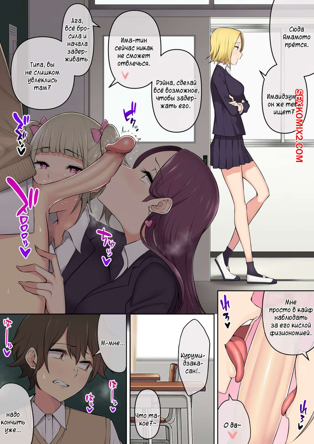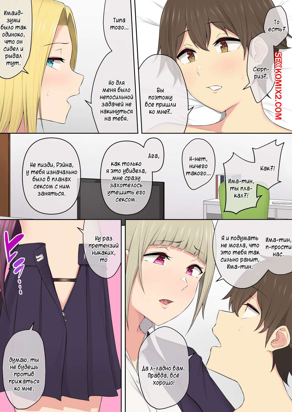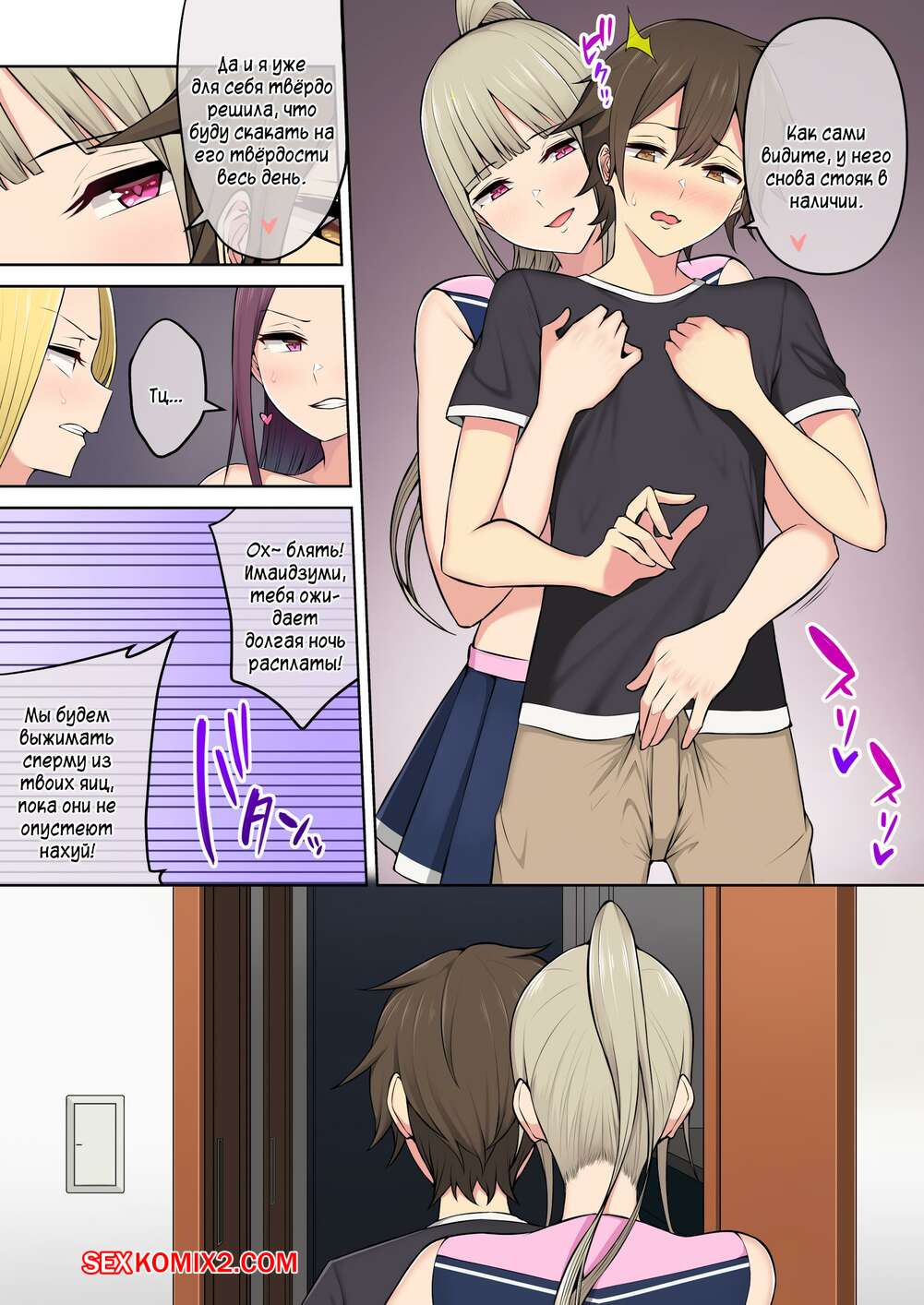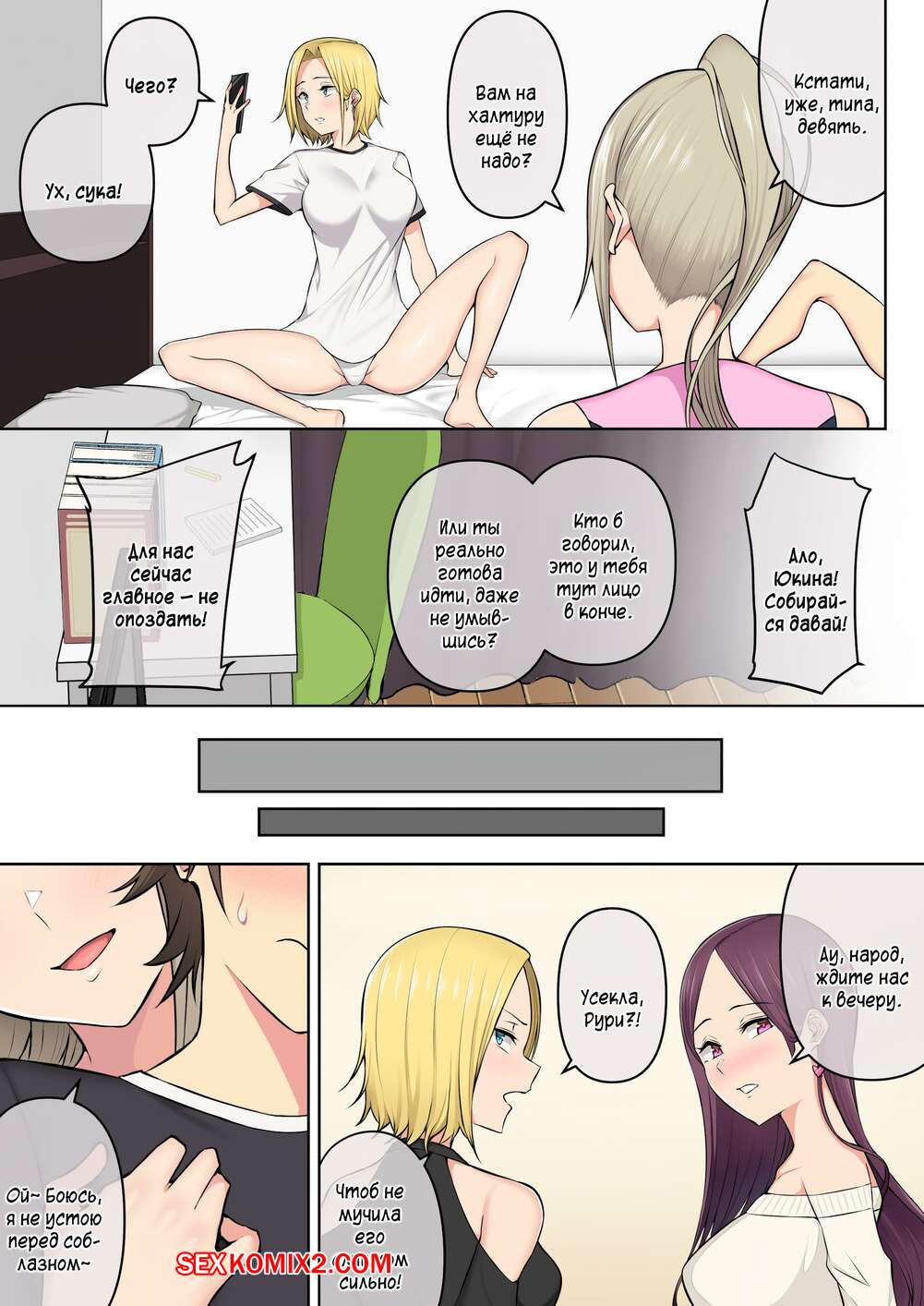 Порно комикс Дом Имаидзуми какимто образом стал местом тусовки для гяру. Часть 3 Горячие красотки были очень возбуждены и решили повеселиться с молодым парнем. Они разделись и отсосали его большой хуй, после чего дали парню себя хорошенько выебать.
