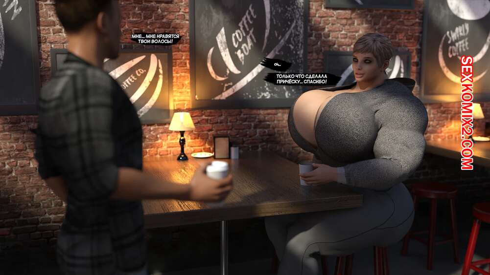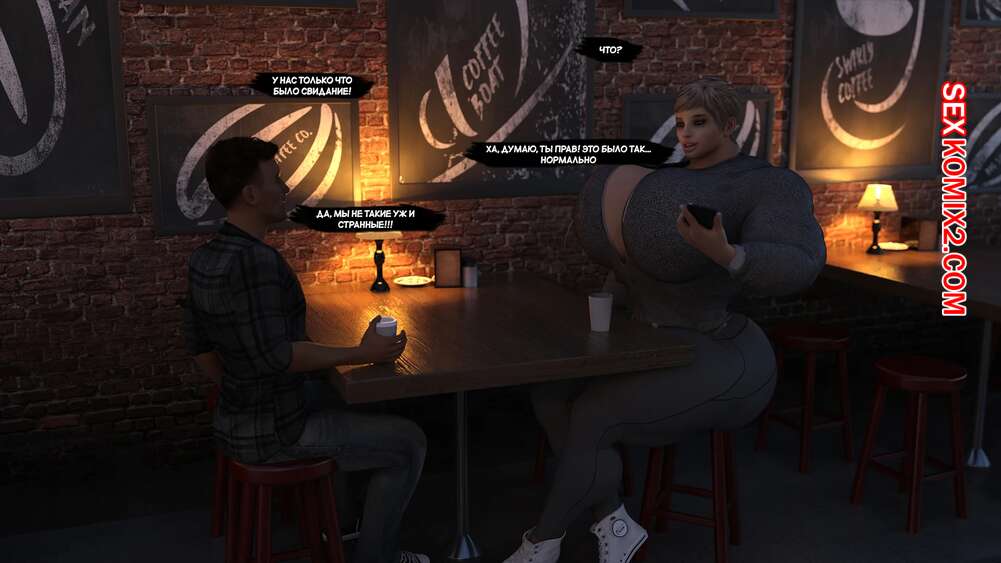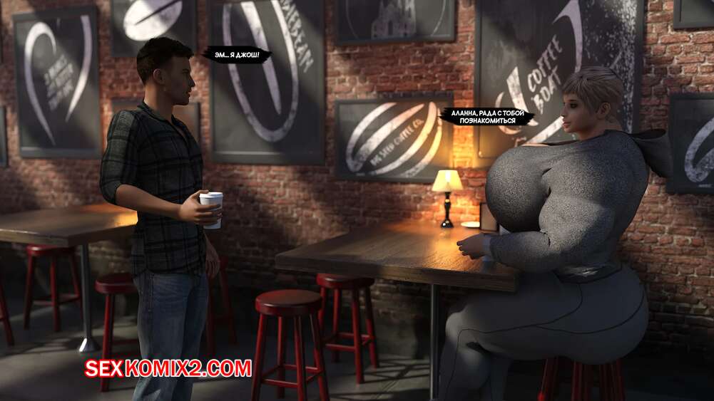 Порно комикс Аланна. Alannah. EndlessRain0110. Парень встретил в кафе накаченную девушку с огромными сиськами и пригласил ее на свидание. Они пошлы выпить в бар, после чего отправились домой к парню и занялись страстной еблей.
