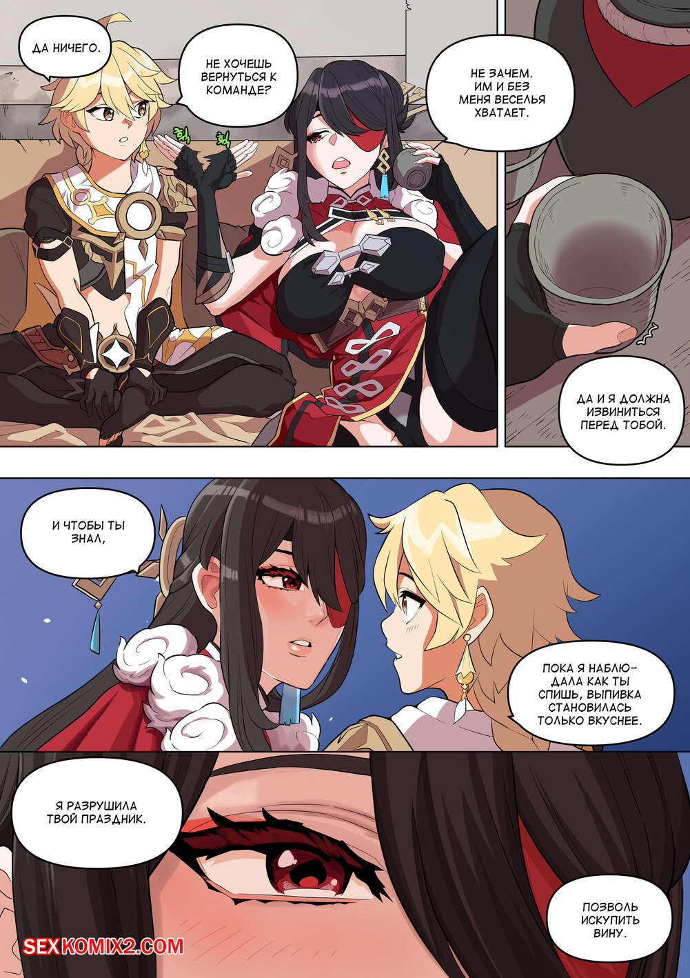 Порно комикс Genshin Impact. The Alcor. Bluecandy Горячая брюнетка напилась в баре со своим дружком и решила с ним повеселиться. Девушка отвела парня в номер и отсосала его большой хуй, после чего дала ему себя выебать.