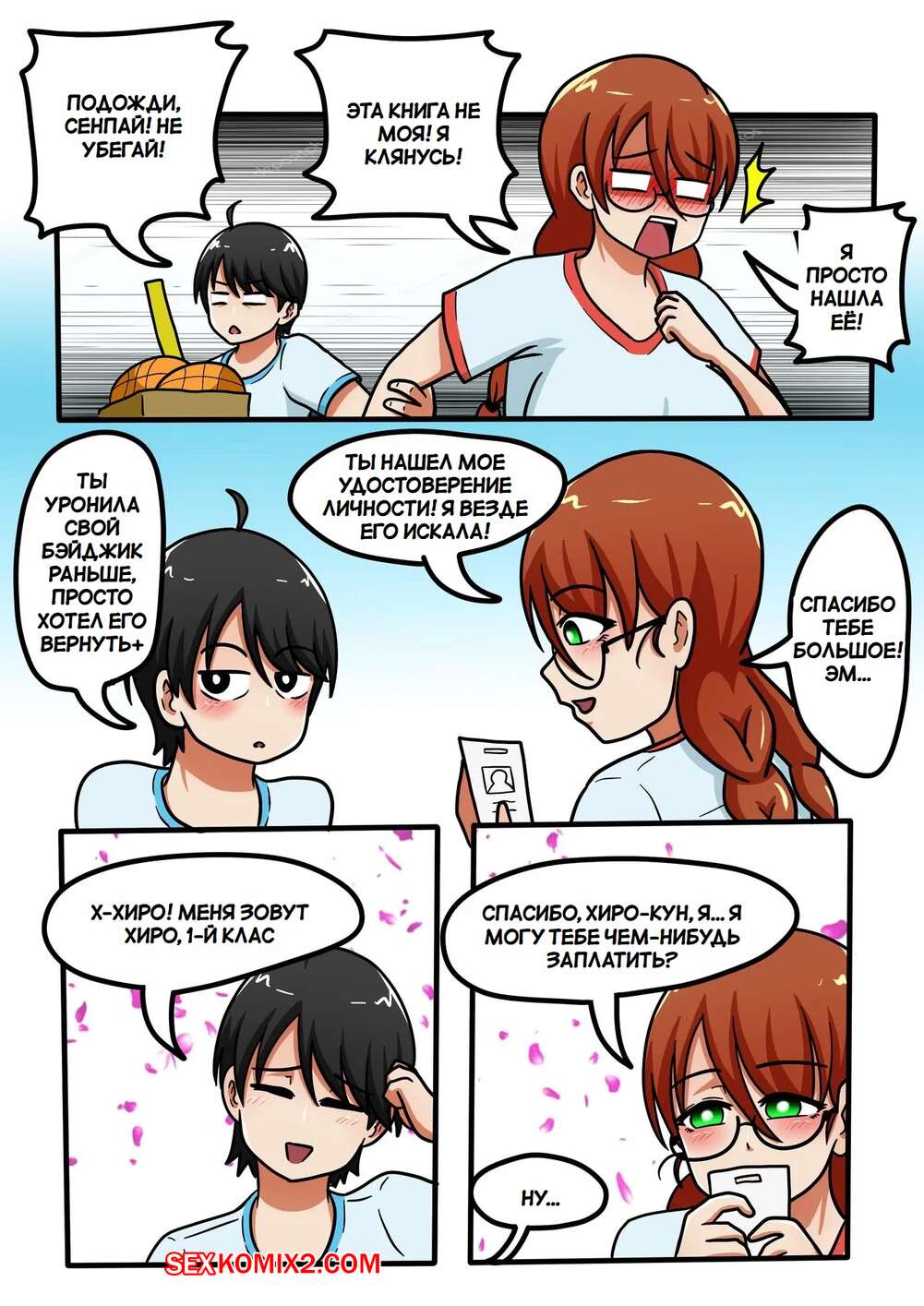 Порно комикс Любовь Онее Сан. Часть 2. Onee sans Love Горячая брюнетка в очках осталась наедине с парнем со своей школы. Девушка была так сильно возбуждена, поэтому она встала на колени и стала сосать хуй своего дружка, подрачивая его сиськами.
