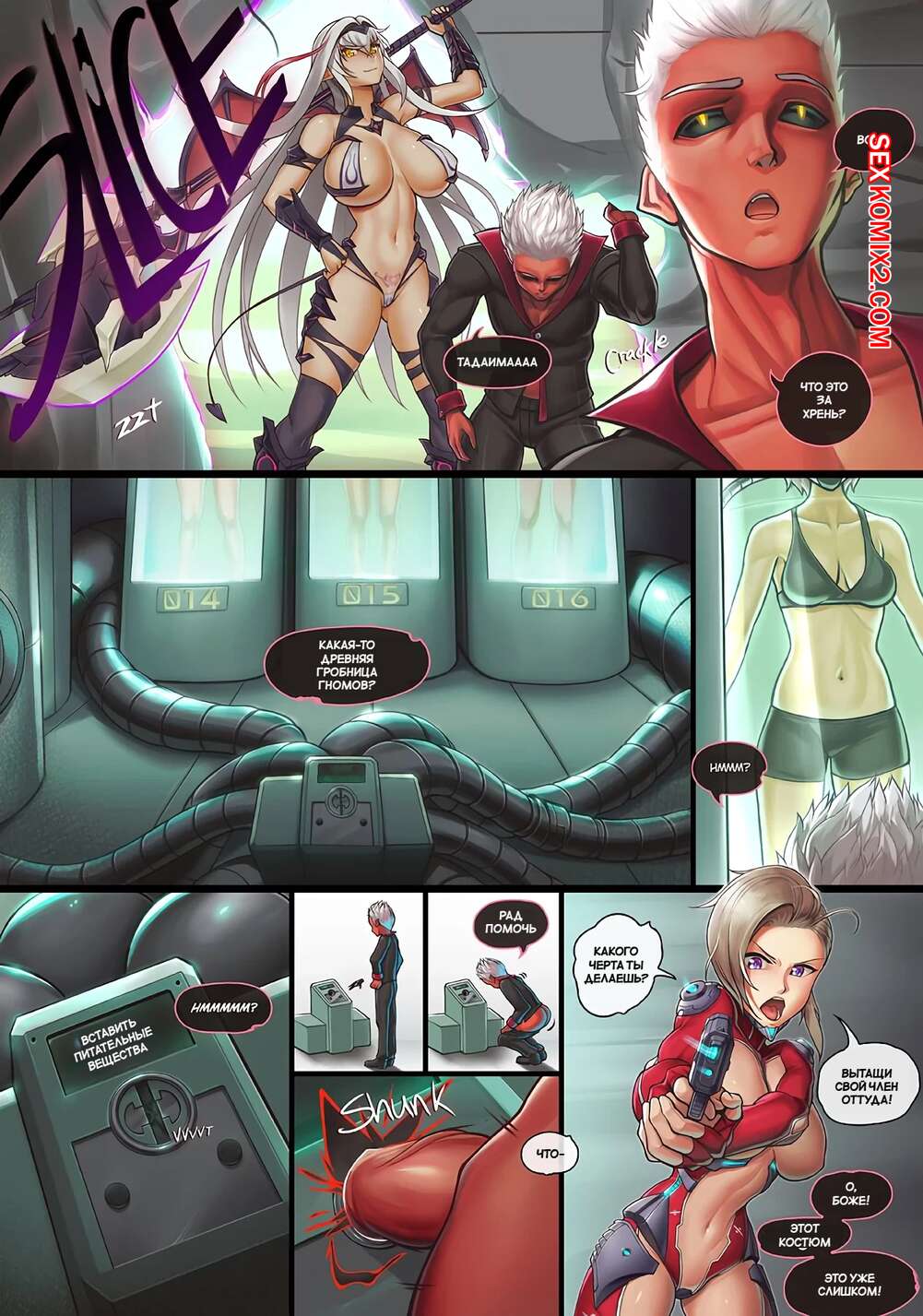 Порно комикс Доминион героев. Часть 3. Dominion of Heroes. hybridmink Во время дежурства в лаборатории горячая брюнетка встретила нарушителя. Краснокожий парень решил повеслетиься с девушкой, поэтому он повалил ее на землю и выебал ее пизденку.