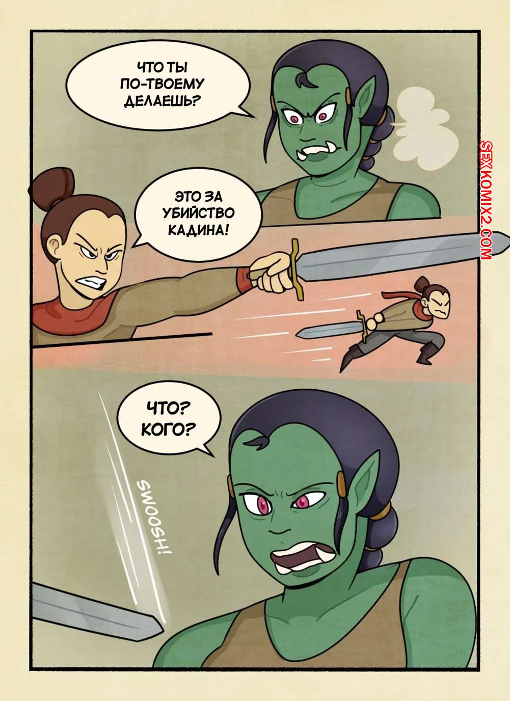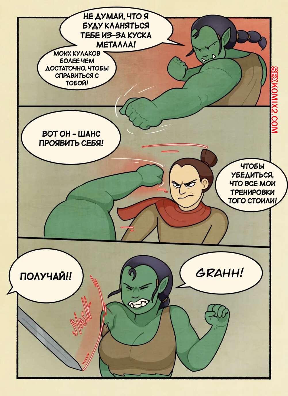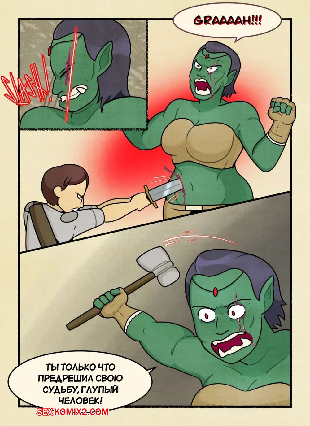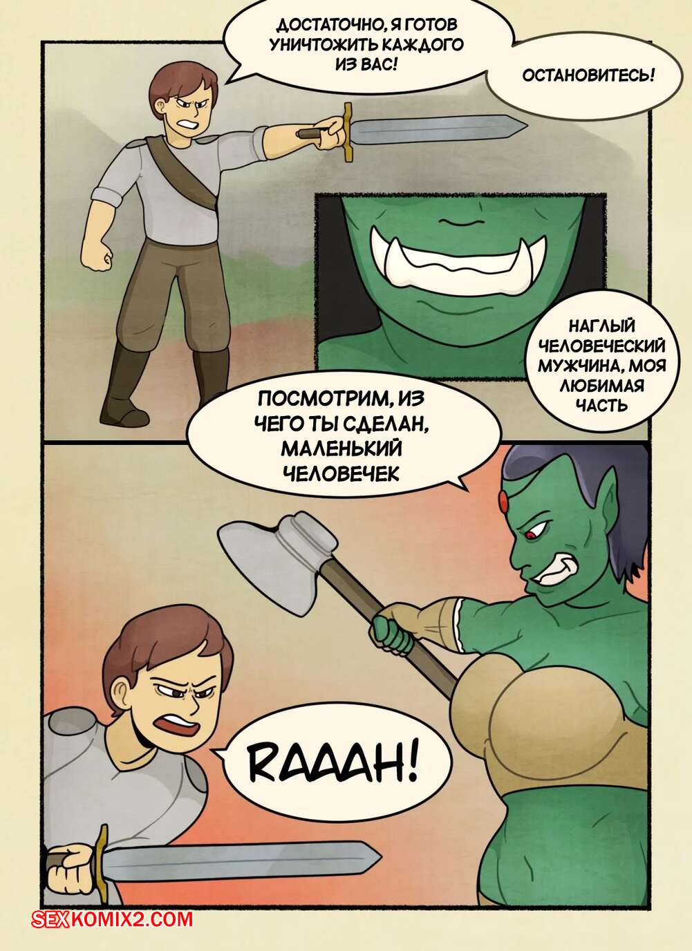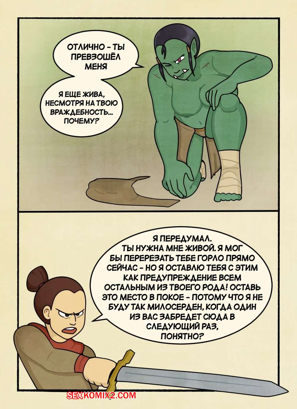 Порно комикс Убийца орков. The Orc Slayer. DeadEndDraws. Защитник деревни вступил в схватку с девушкой орком и вскоре она оказалсь перед ним голой. Парень разделся и стал трахать пизденку брюнетки, но ей было недостаточно и она требовала большего.