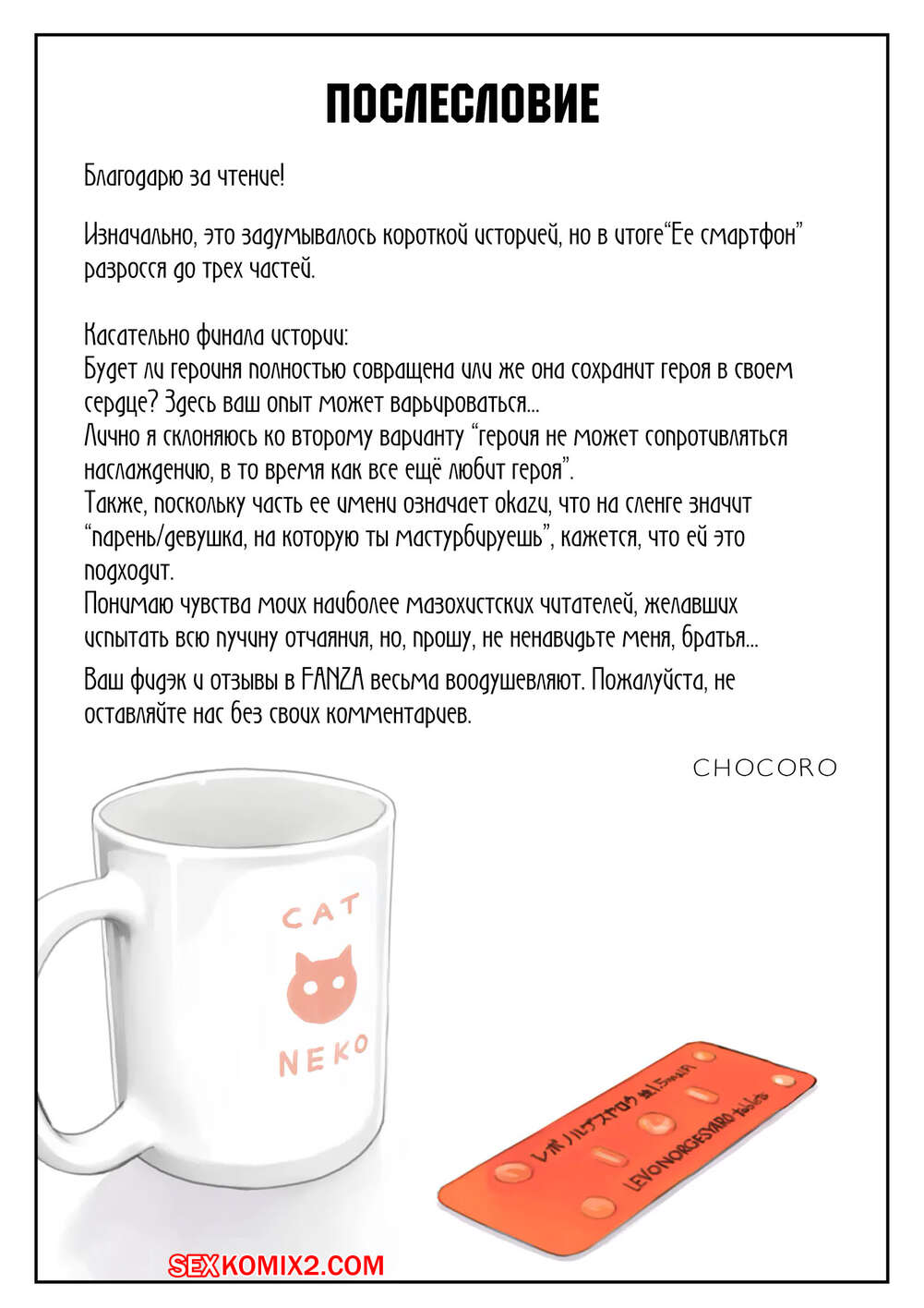 Порно комикс Я всего лишь покопался в ее смартфоне. Chocoro Молодой парень заглянул в телефон к своей девушке и увидел то, что совсем не ожидал увидеть. Девушка регулярно встречается со своим любовником, который ее хорошенько ебет.