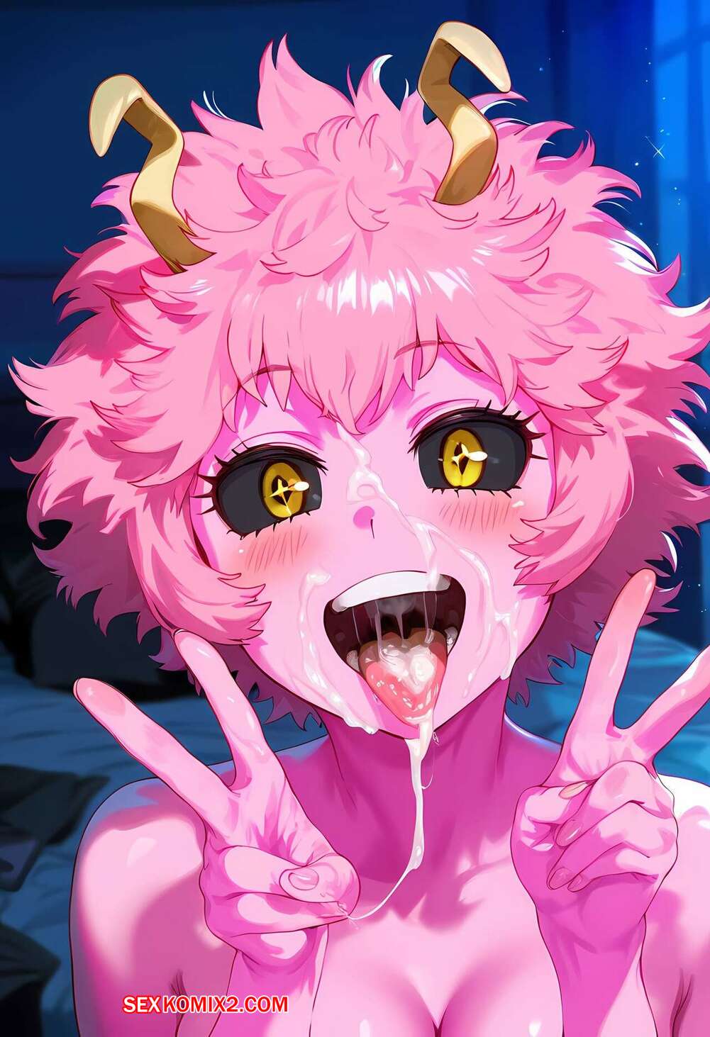 Порно комикс Ashido Mina. GintoAI Горячая красотка была очень возбуждена и решила повеселиться со своим дружком. Девушка разделась и отсосала большой хуй парня, после чего дала ему выебать свою пизденку.