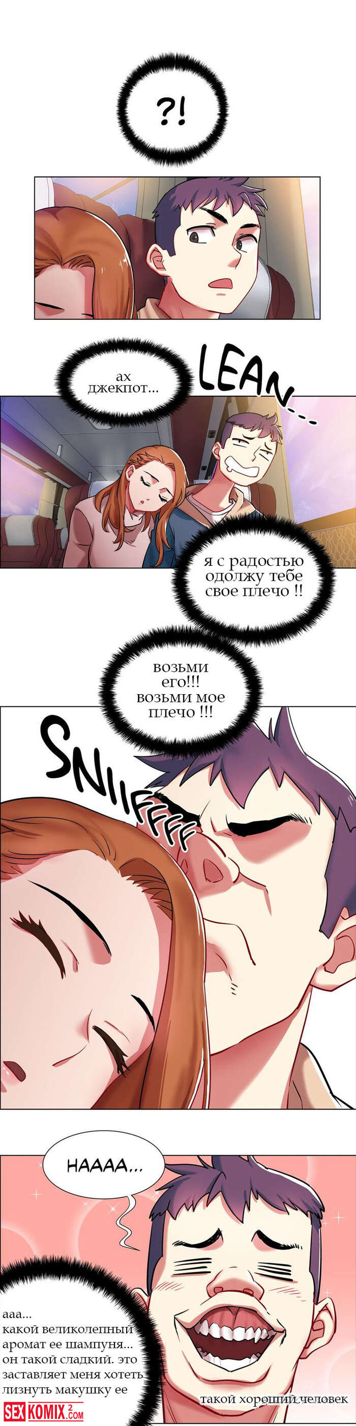 Порно комикс Прокат девушек. Части 1 и 2. Rental Girls. В автобусе рядом с парнем селя сексуальная девушка, прямо на его руку, и даже не заметила. Парень почувствовал пальцами сочню киску девушки и сильно возбудился.