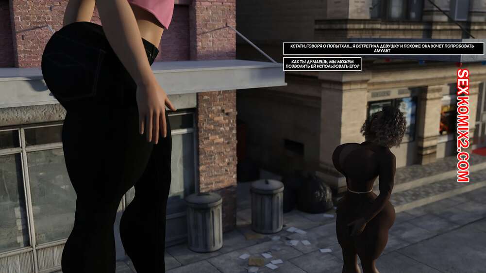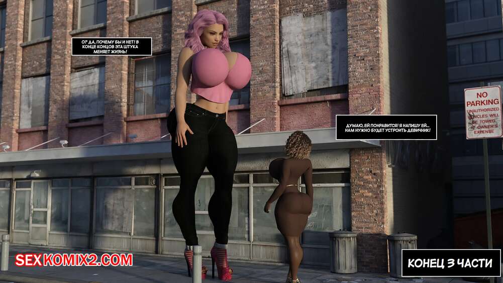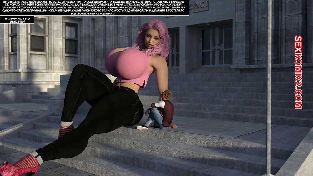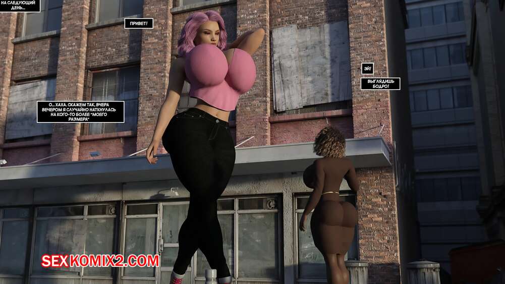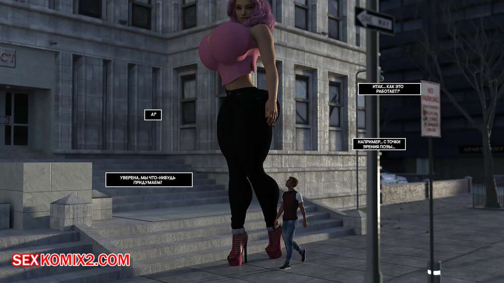 Порно комикс Удвоить размер. Часть 3. Doublesize Красотка достигла огромных размеров и предложила парню отправиться к ней домой и повеселиться. Там парень стал больше, а девушка уменьшилась, после чего она стала ласкать большой член своего дружка.