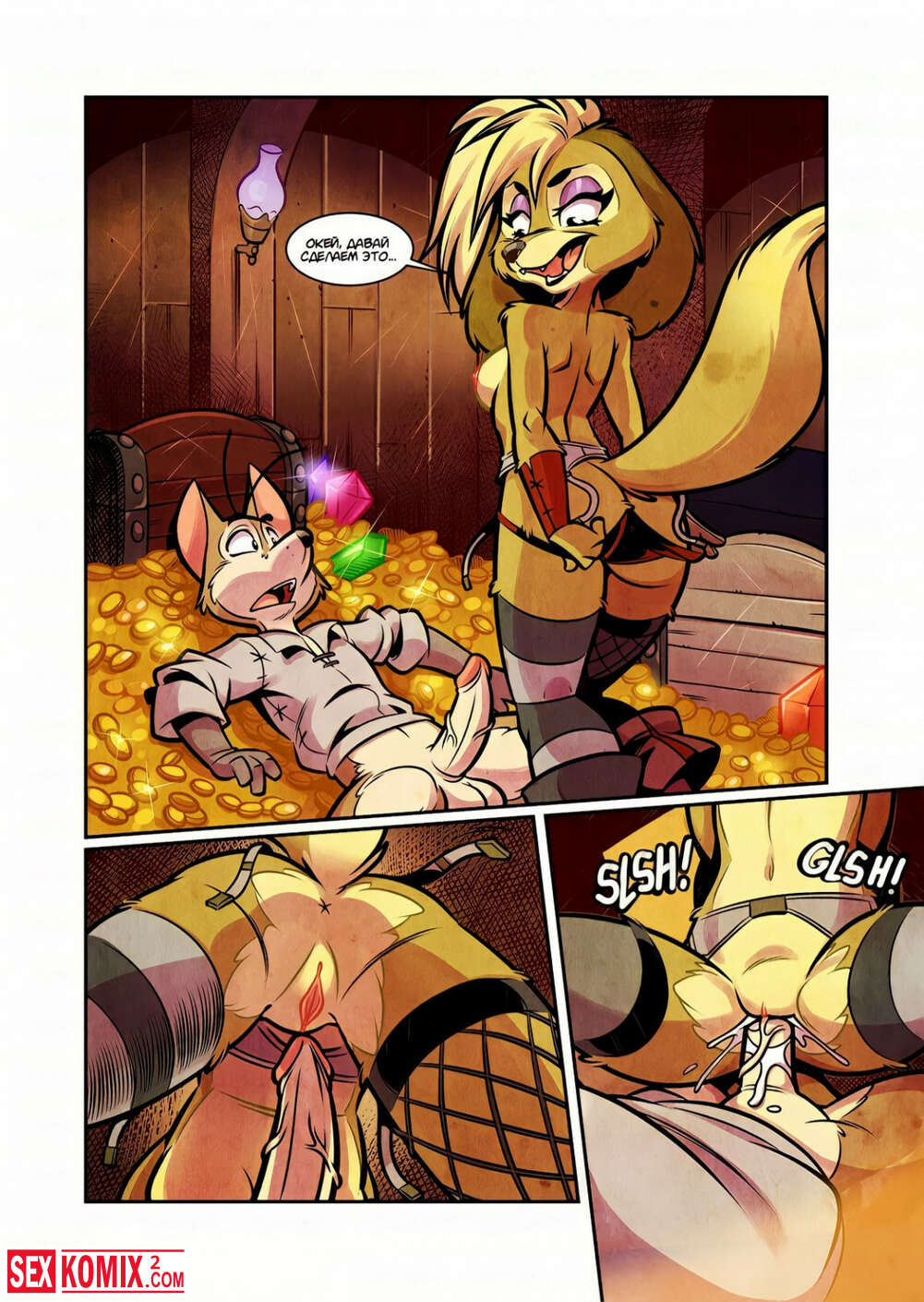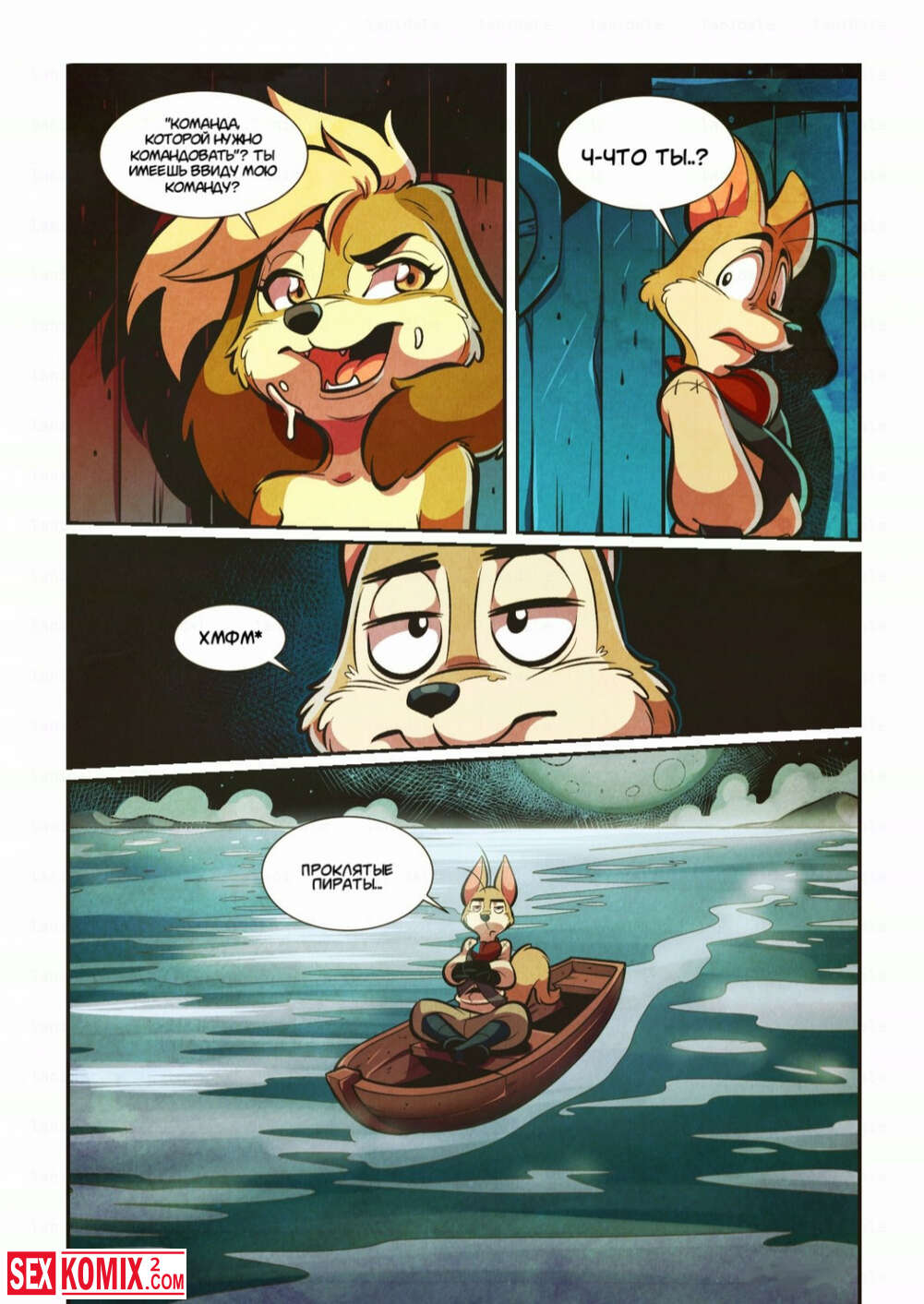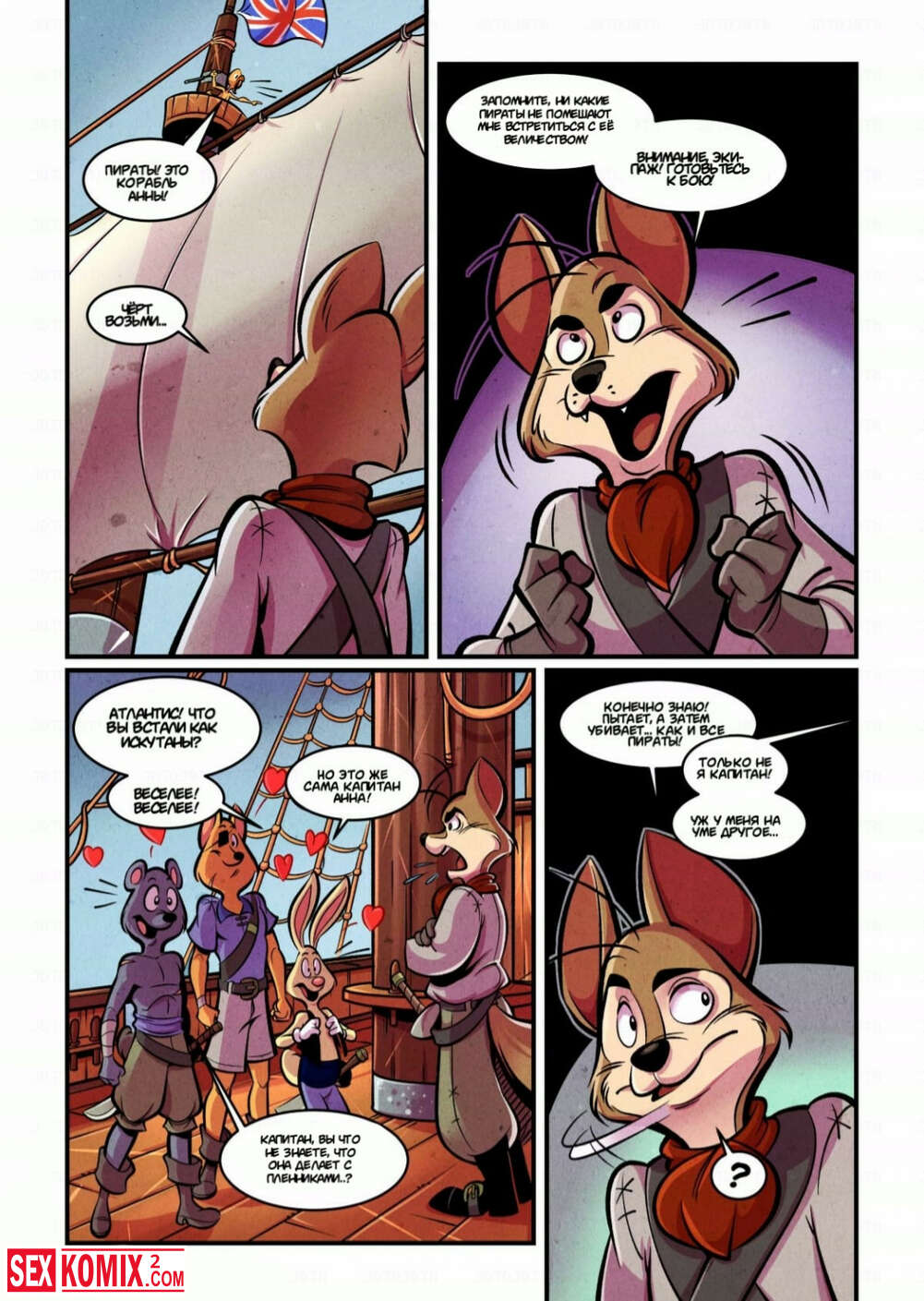 Порно комикс Фурри. Капитан Анна. Женщина пират со своей командой захватили судно с золотом. Она отправилась к капитану, чтобы отблагодарить его за эту добычу.