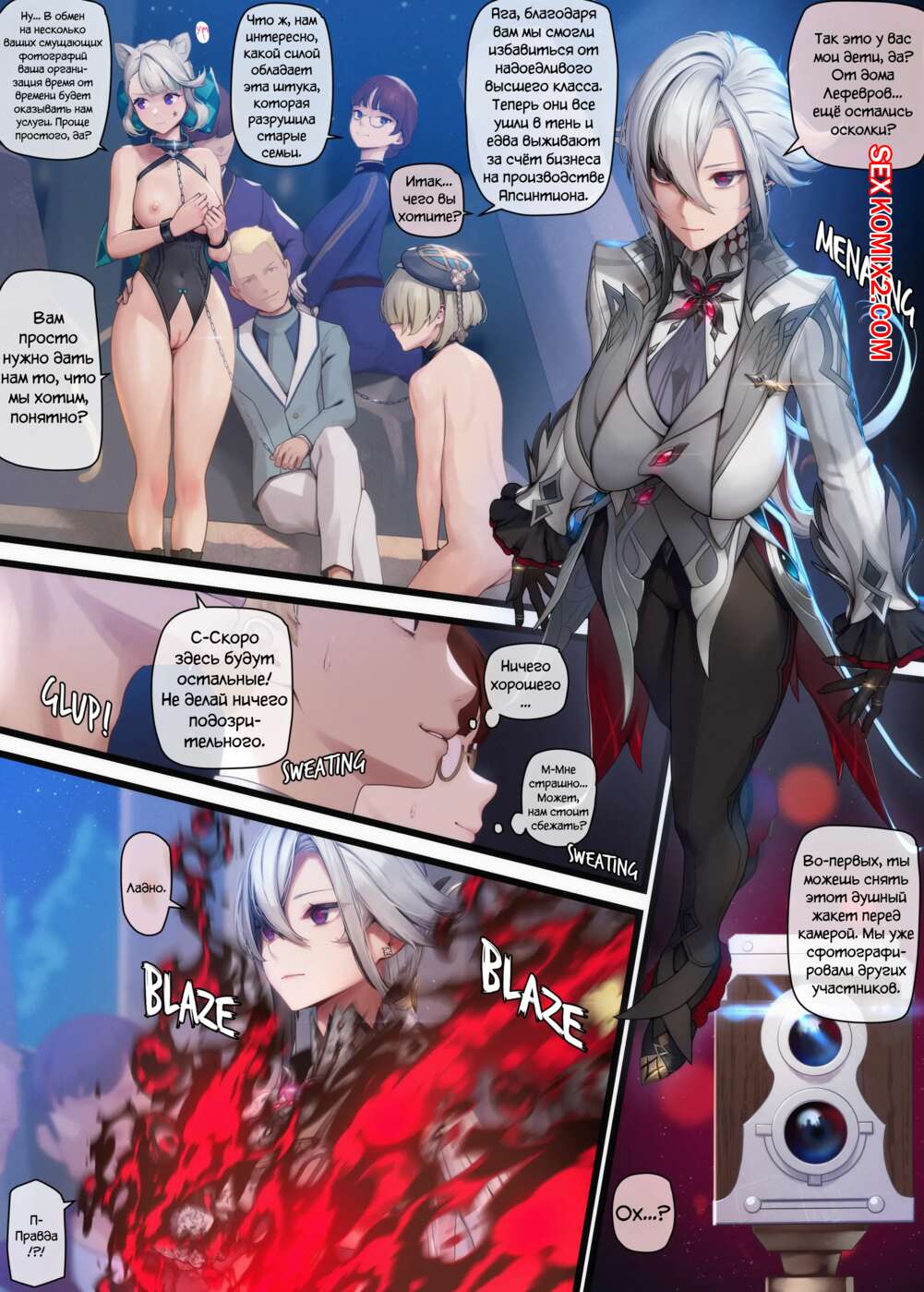 Порно комикс Genshin Impact. Арлекино. Arlecchino. Mana Парни схватили сексуальную блондинку, желая с ней повеселиться. Они раздели девушку и дали ей отсосать свои большие хуи, после чего как следует выебали блондиночку во все дырочки.