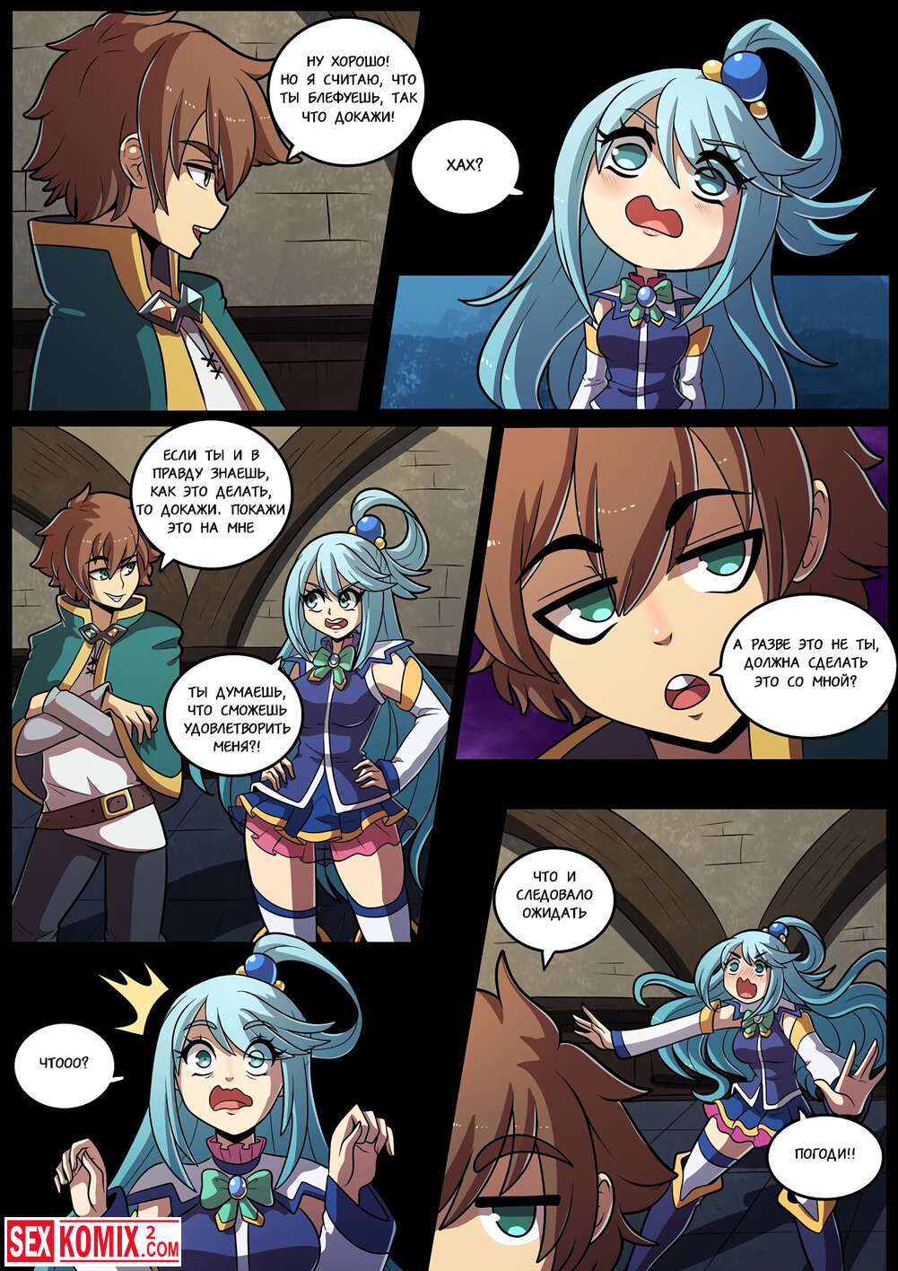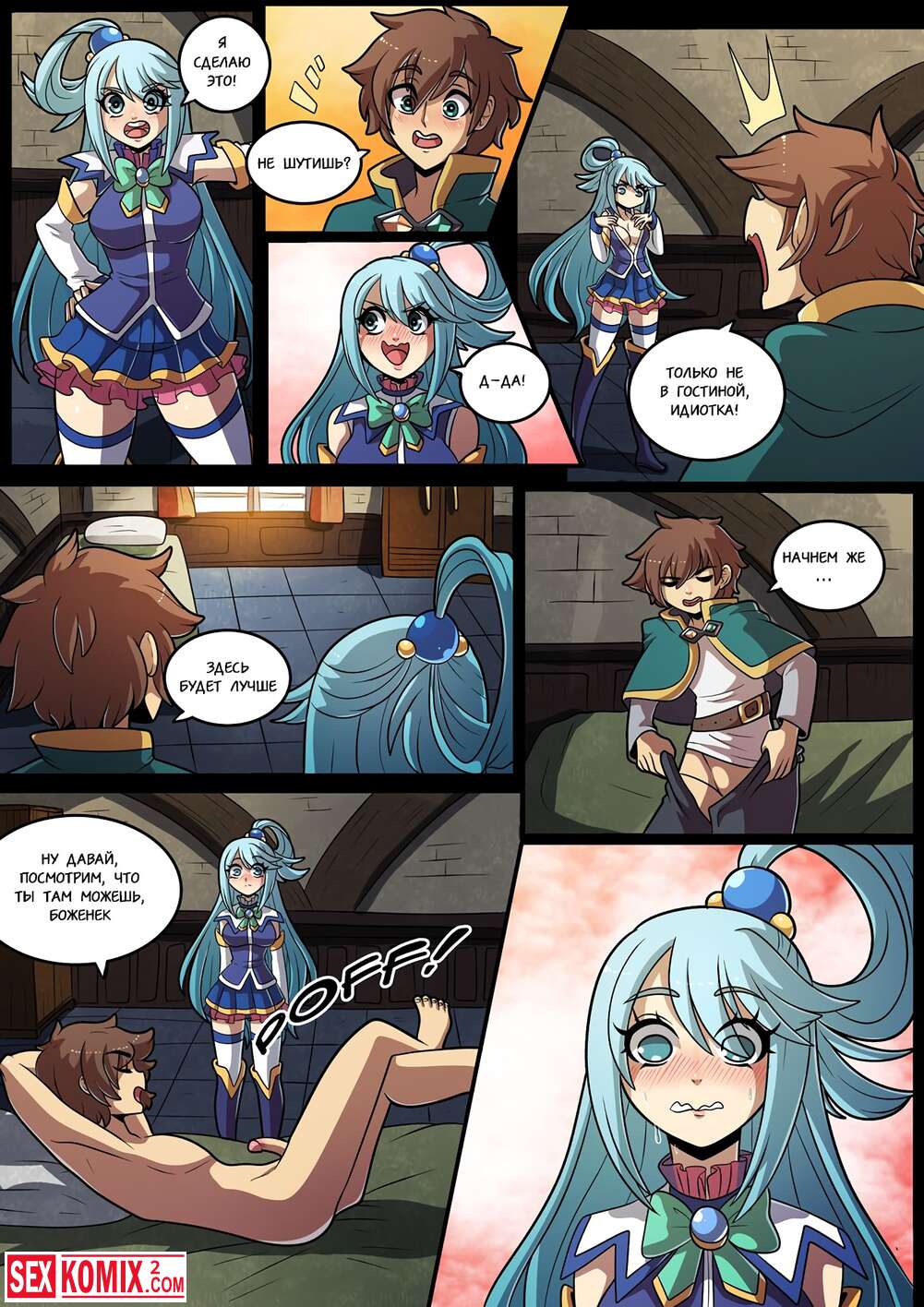 Порно комикс Konosubass. Задание Аквы. Финансовые дела девушки очень плохи и она обратилась за помощью к своему другу. Он посоветовал пройти квест за который она получит хорошую награду.
