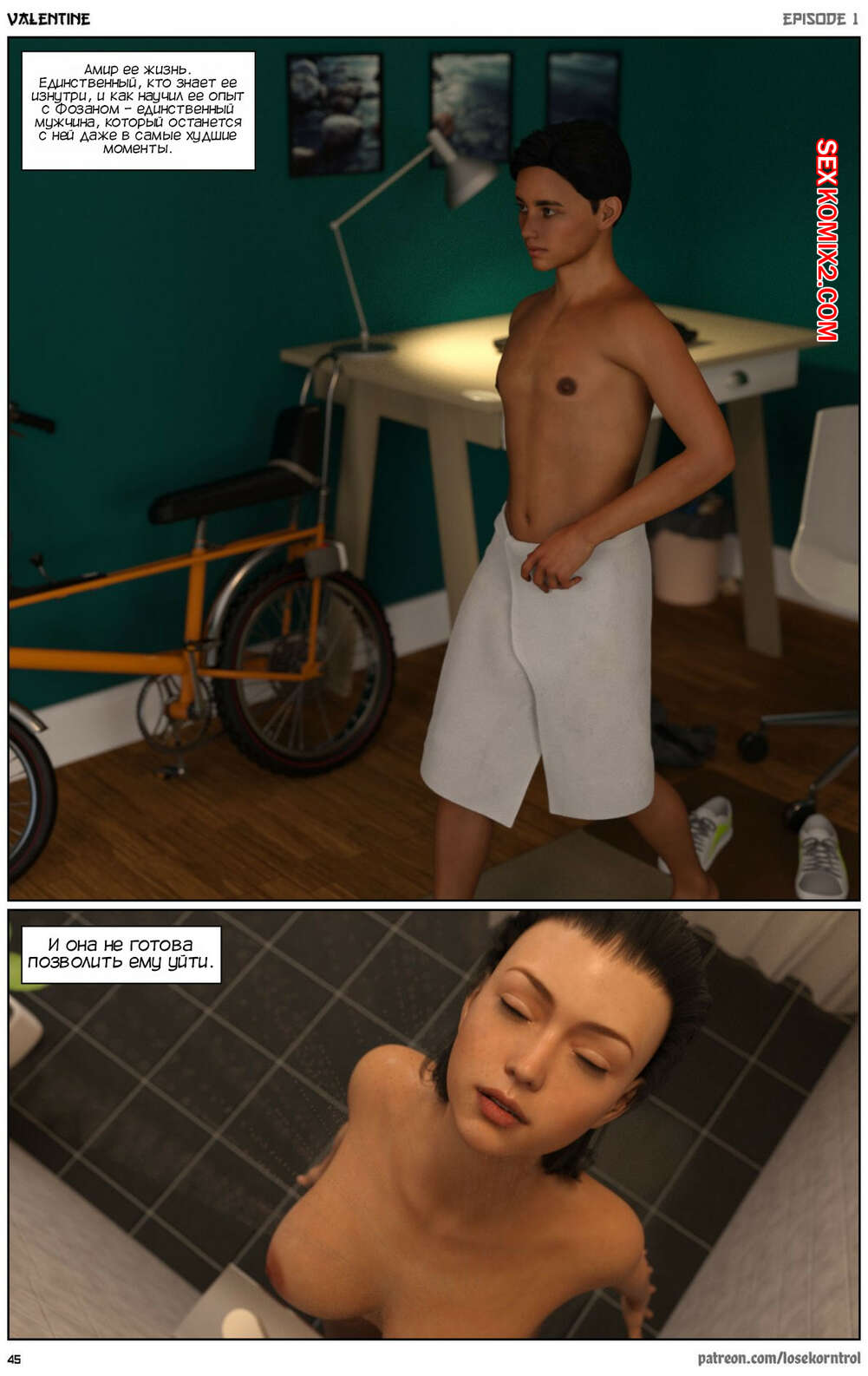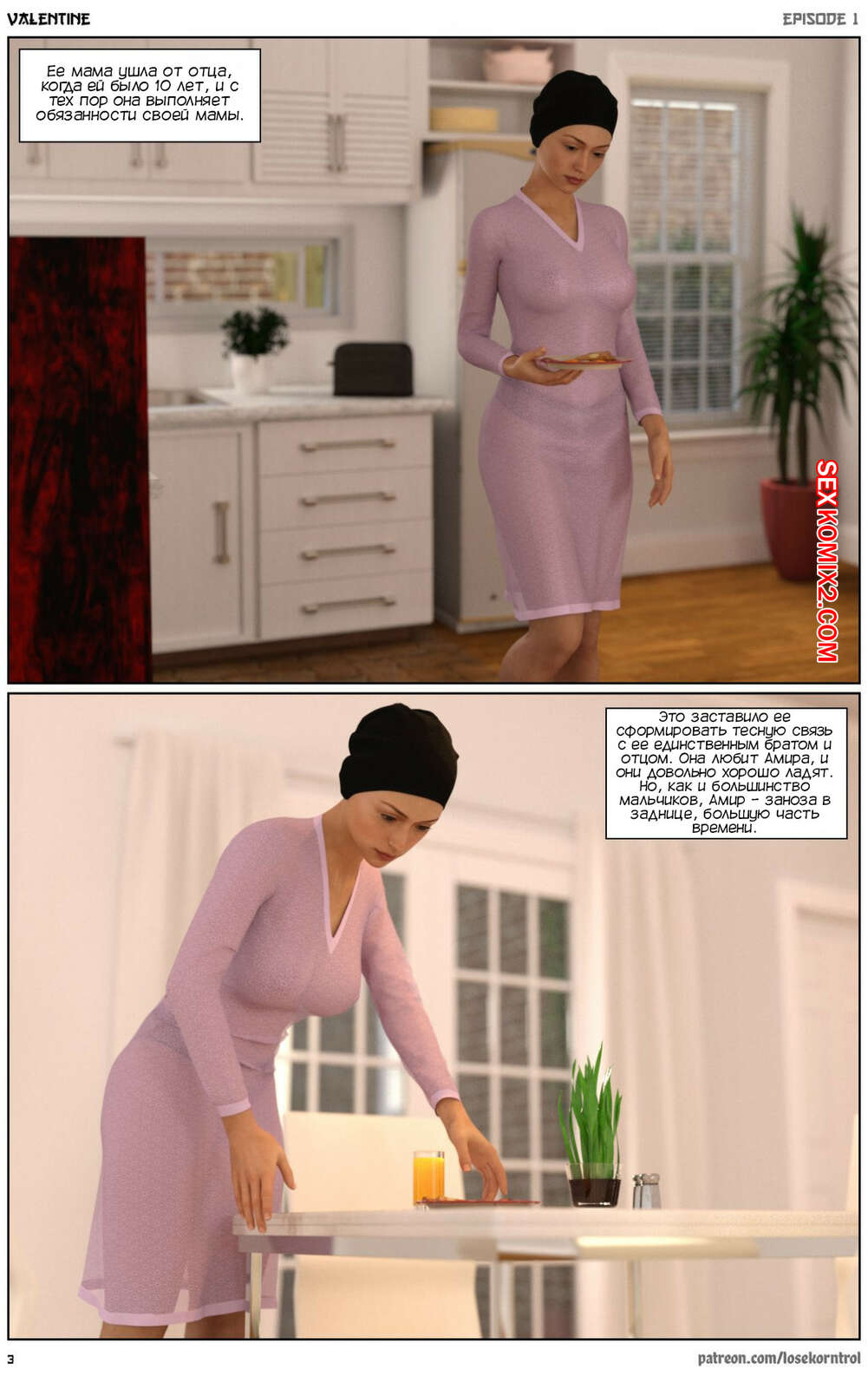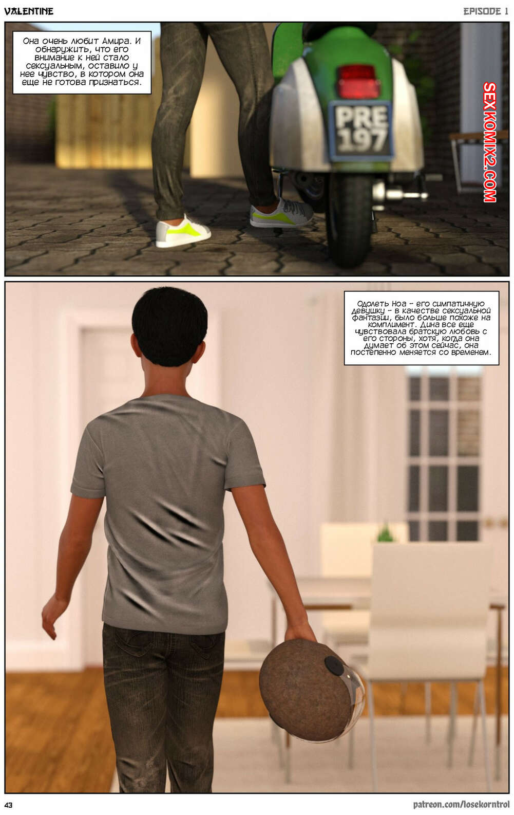 Порно комикс Валентина. Часть 1. Valentine. Losekorntrol Горячая брюнетка Дина приготовила с утра завтрак своему младшему брату Амиру. Девушка пошла в его комнату, чтобы позвать парня, но застала его за дрочкой на ее фото. Теперь это ее очень тревожит..