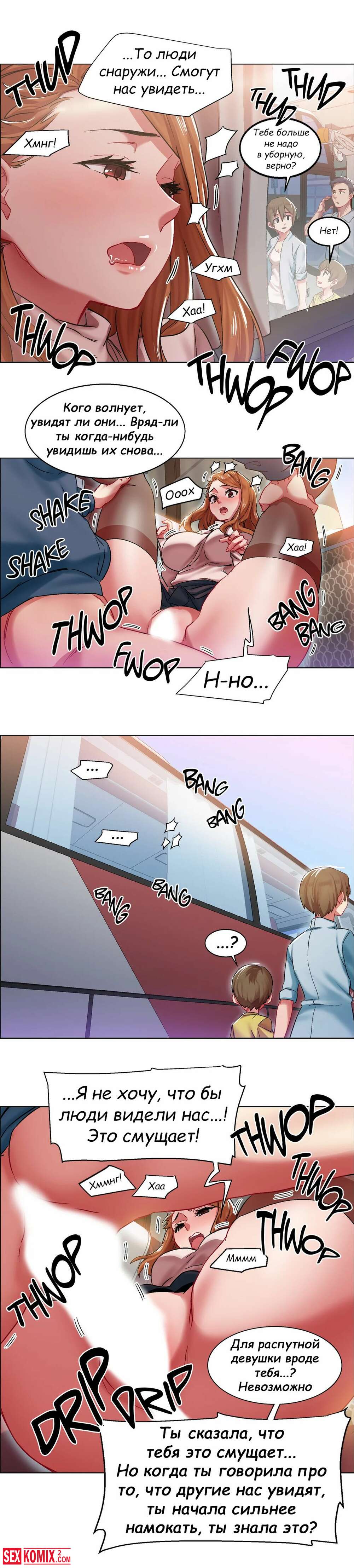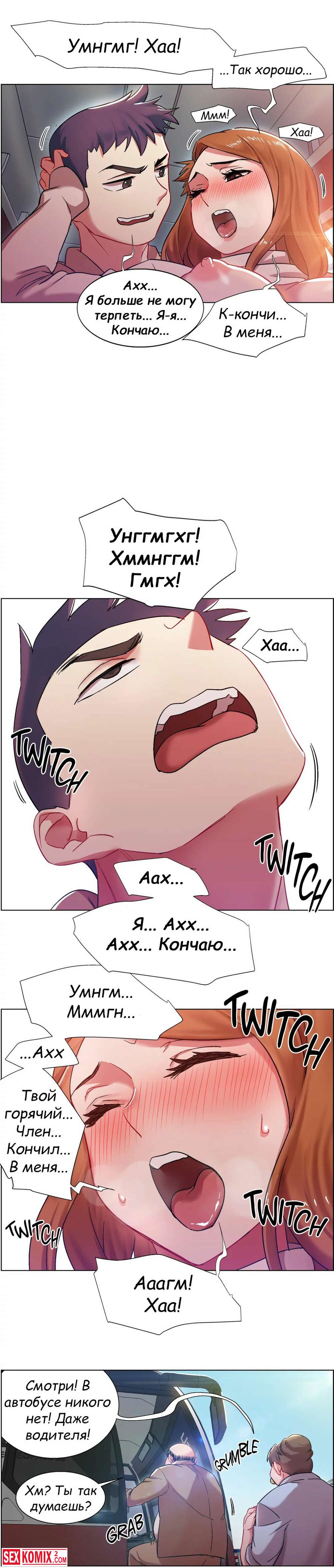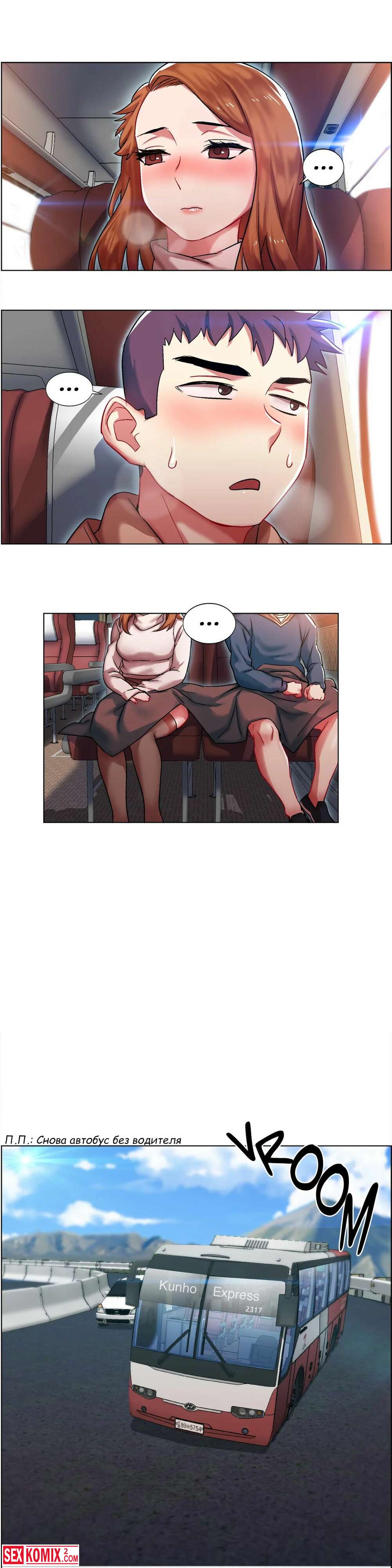Порно комикс Прокат девушек. Части 5 и 6. Rental Girls. В автобусе стало пусто и теперь попутчики могут нормально потрахаться. Девушка поворачивается попкой и впускает хуй парня в себя.