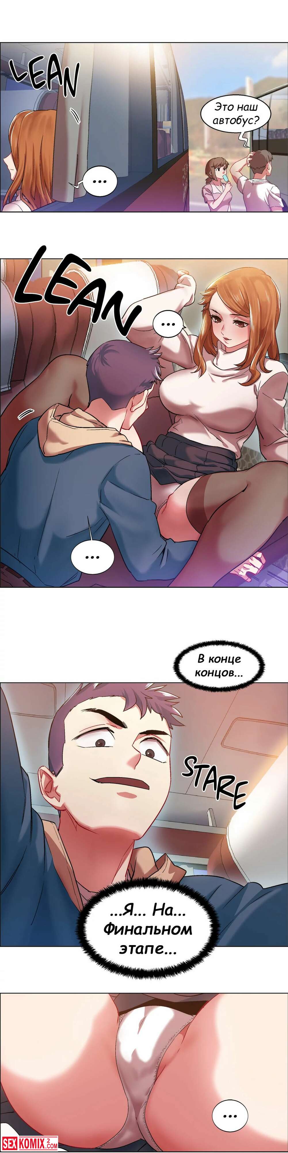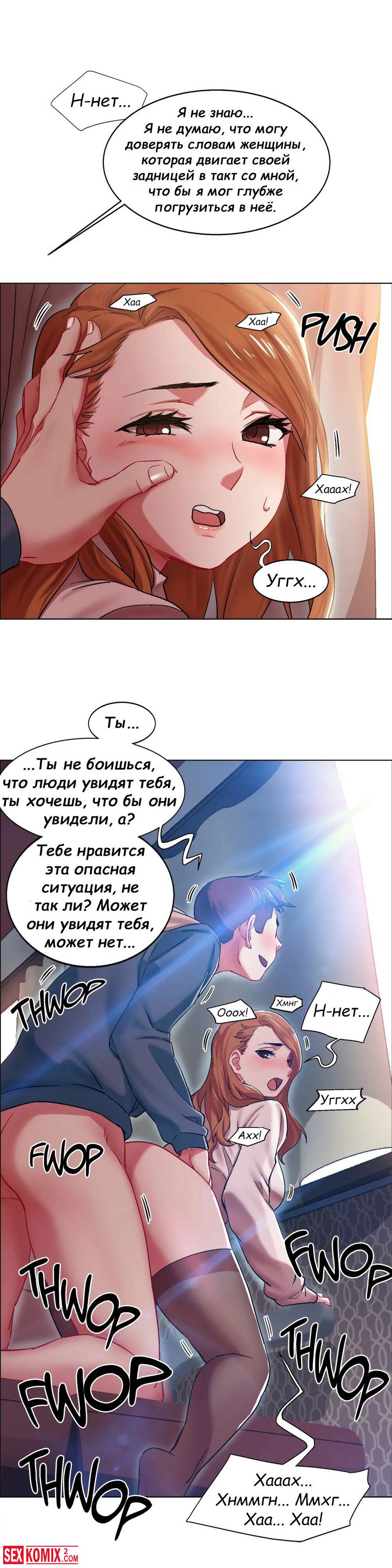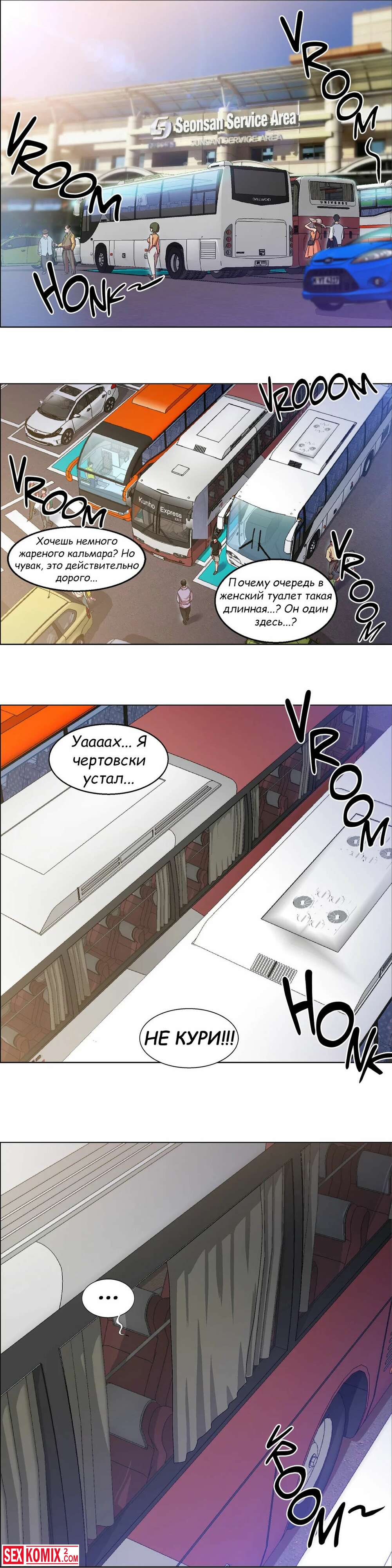 Порно комикс Прокат девушек. Части 5 и 6. Rental Girls. В автобусе стало пусто и теперь попутчики могут нормально потрахаться. Девушка поворачивается попкой и впускает хуй парня в себя.
