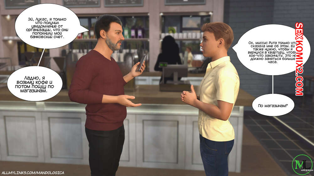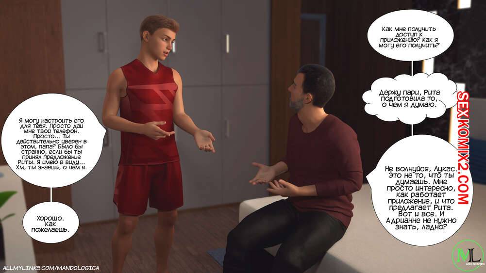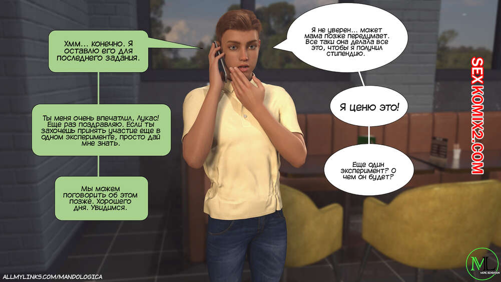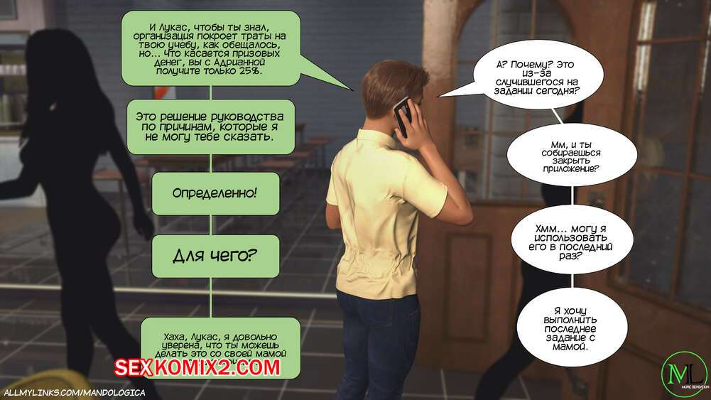 Порно комикс Разрушение границ. Часть 9. Breaking Boundaries. MandoLogica Лукас наконец получил стипендию и Кристен решила закрыть приложение. Парень попросил оставить его ненадолго, чтобы выполнить еще одно задание со своей горячей мамой.