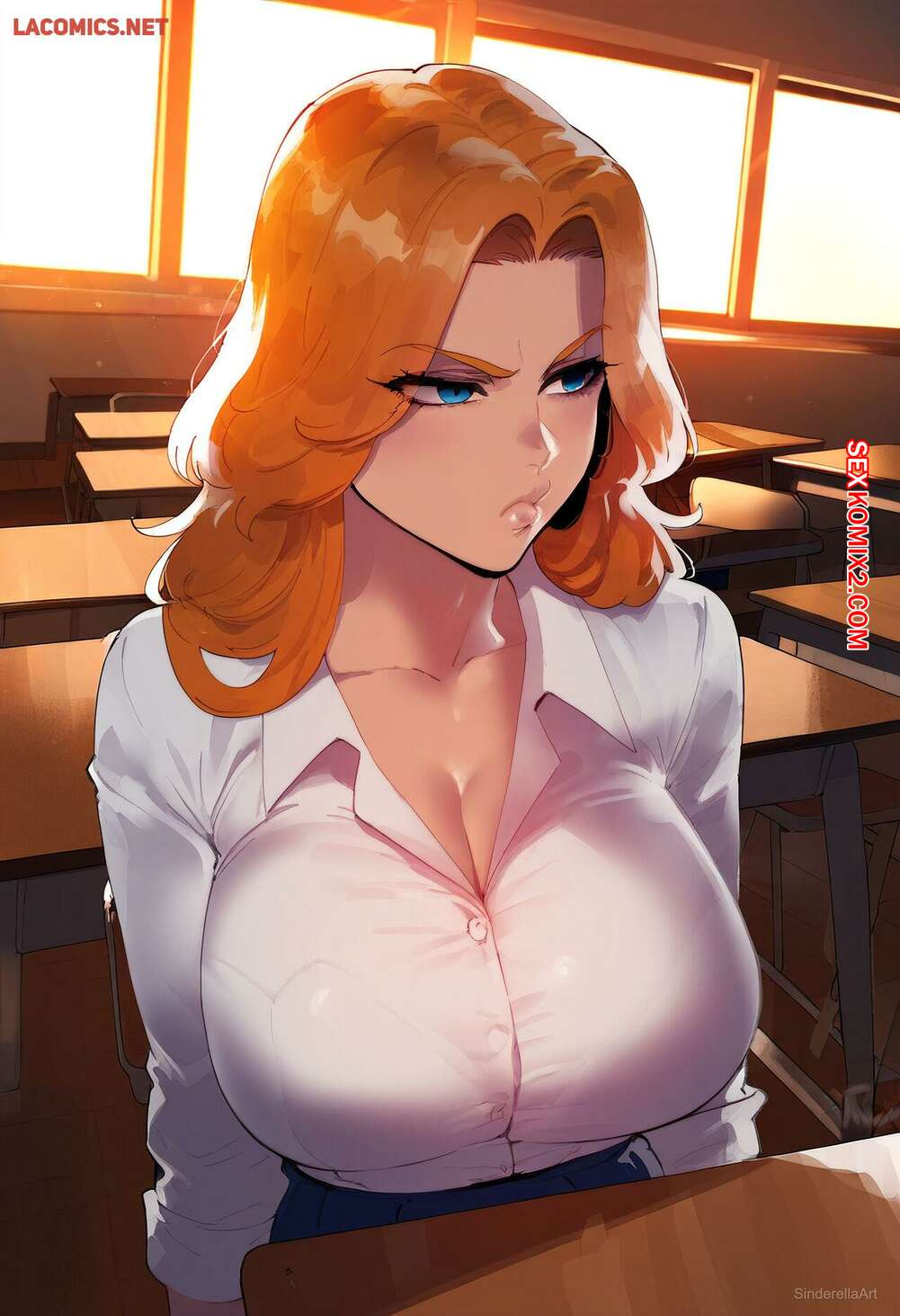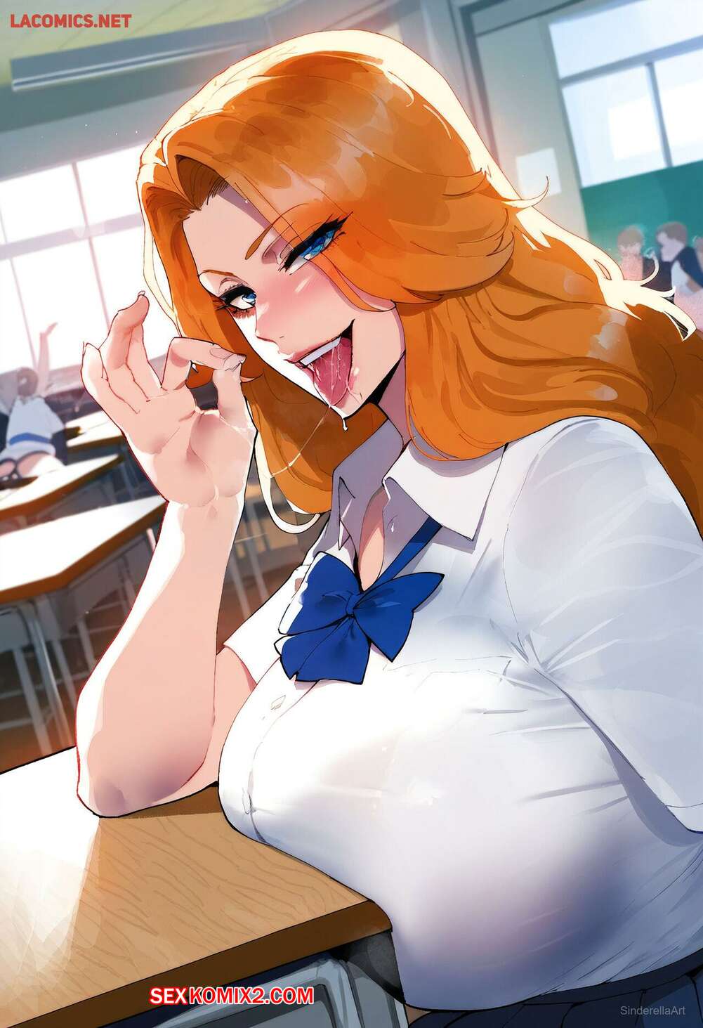 Порно комикс Rangiku Matsumoto. SinderellaAI Рыжая красотка Рангику была очень возбуждена и решила повеселиться со своим дружком. Девушка разделась и отсосала большой хуй парня, после чего дала ему себя выебать.
