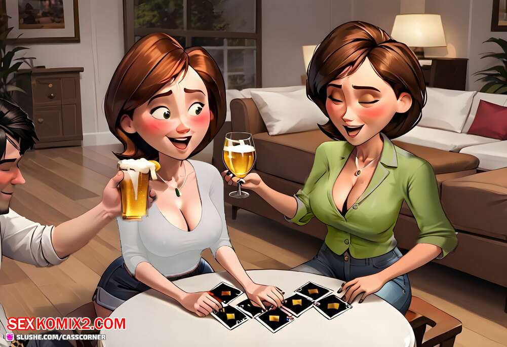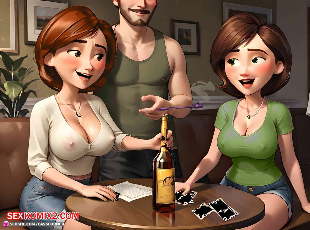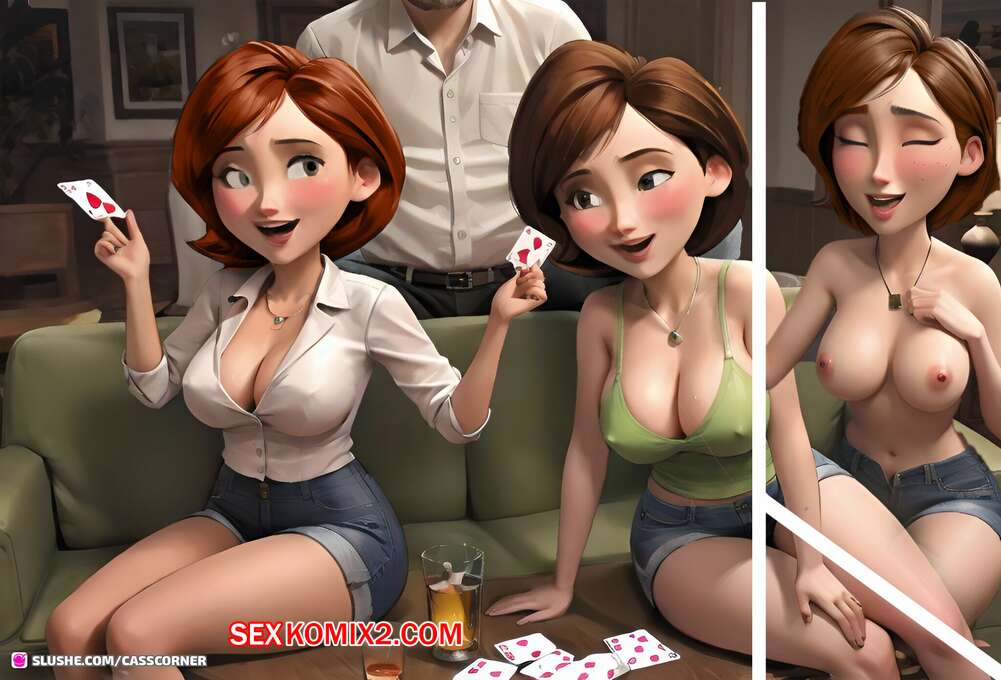 Порно комикс CassCorner. Part 6. Just a card game Две горячие милфы играли в карты на раздевание с парнем. Девушки оказались голыми и стали сосать большой хуй паренька, после чего дали ему себя хорошенько выебать.
