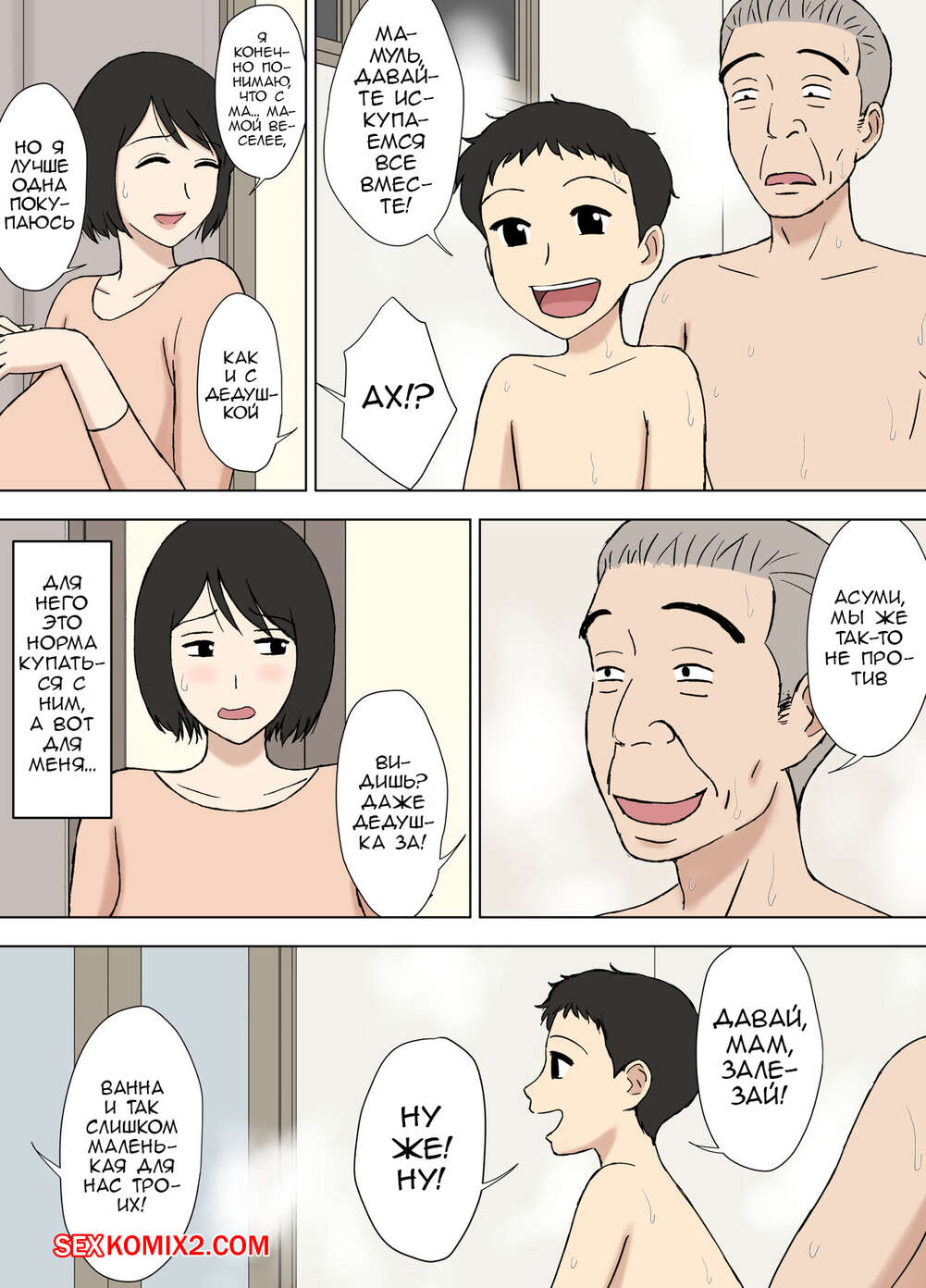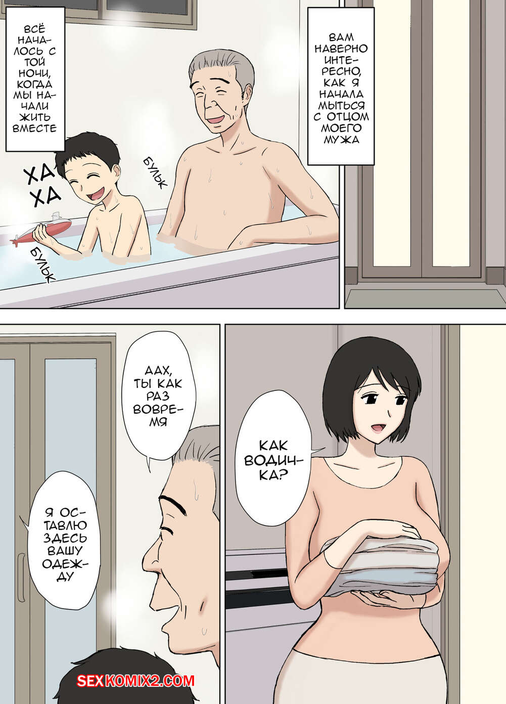 Порно комикс Моя жёнушка принимает ванну с моим отцом 2. Urakan Горячая милфа продолжает наслаждаться жизнью со своим отцом. Красотка раздевается и сосет хуй старика, после чего трахается с ним. Вдобавок ко всему к ним иногда еще присоединяется сын милфы.