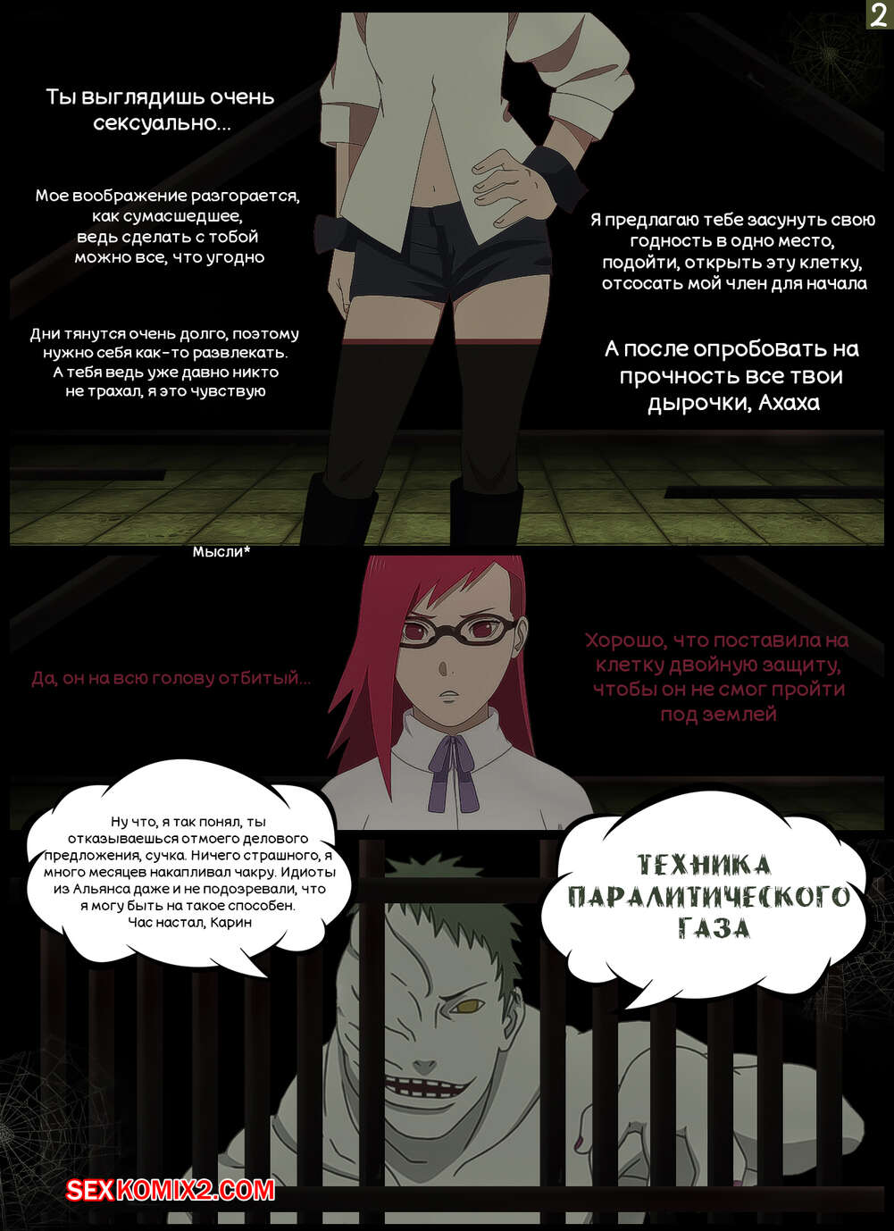 Порно комикс Наруто. Возбуждающее Заточение. Exciting Imprisonment. KristoLin Белый Зецу вырывается из клетки и трахает Карин Узумаки, но девушка и сама не против такого исхода. Она с удовольствием сосет его большой хуй, после чего прыгает своими дырочками на его члене.