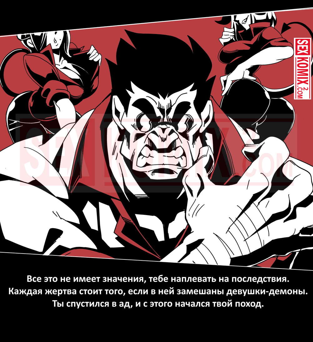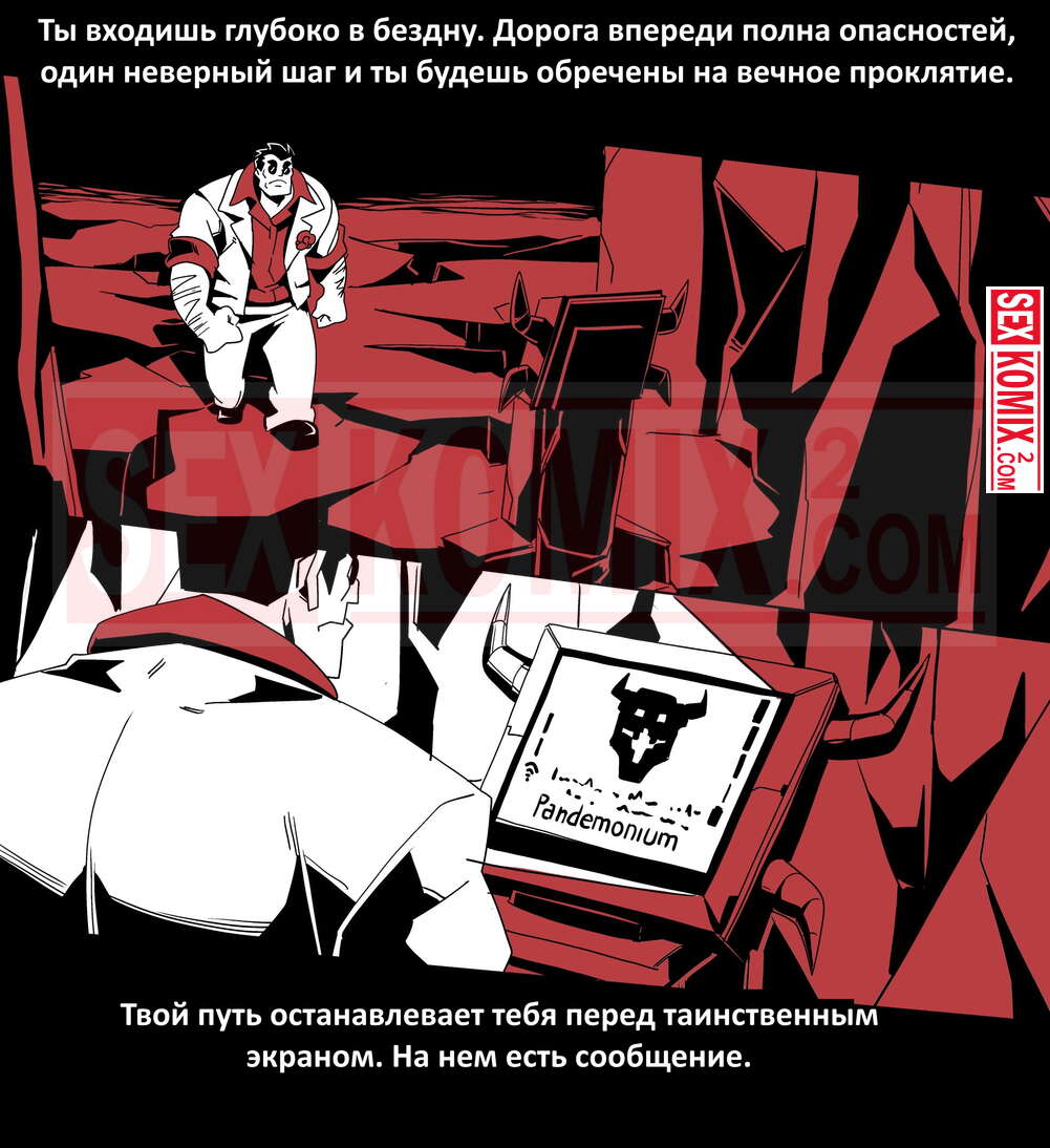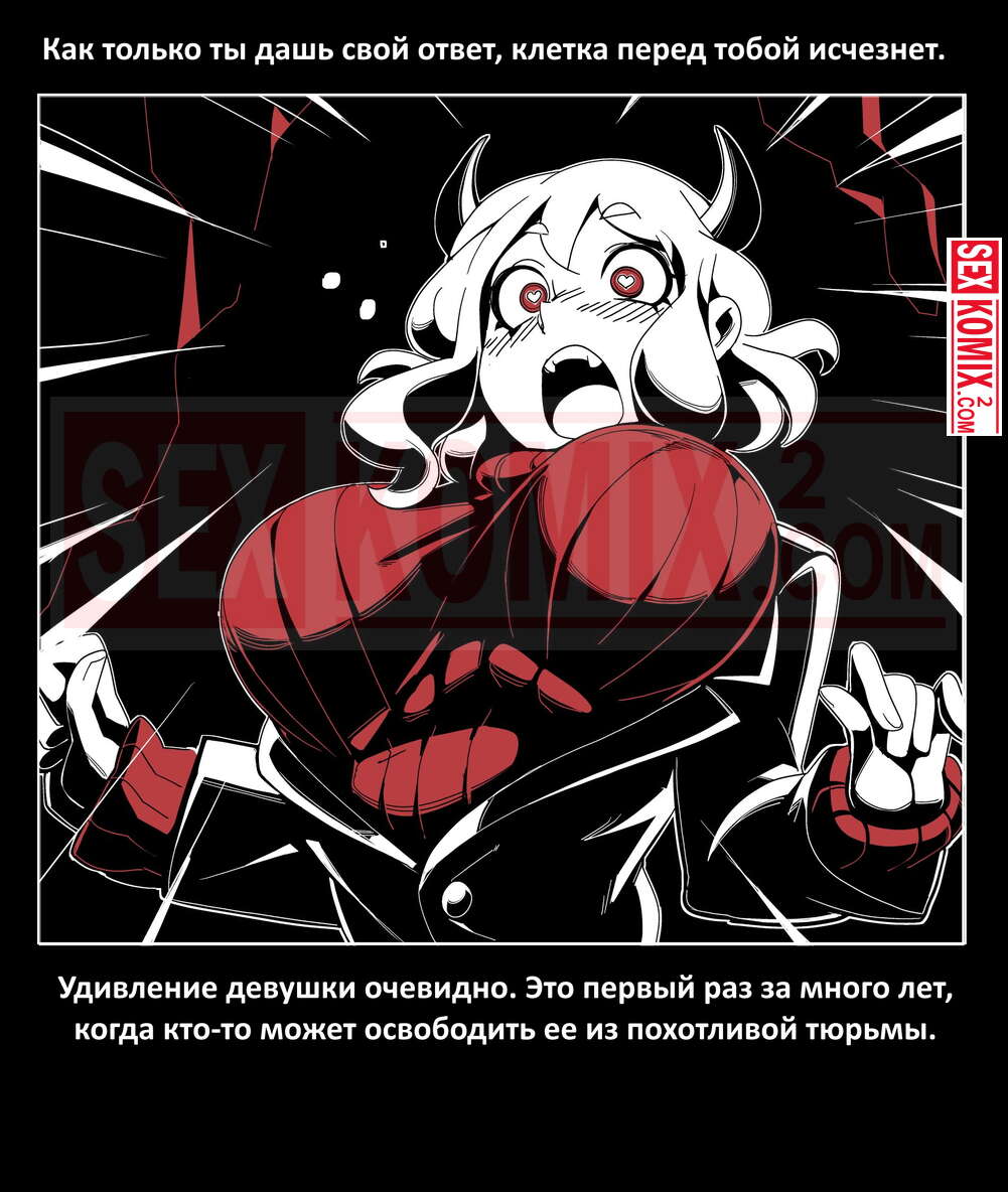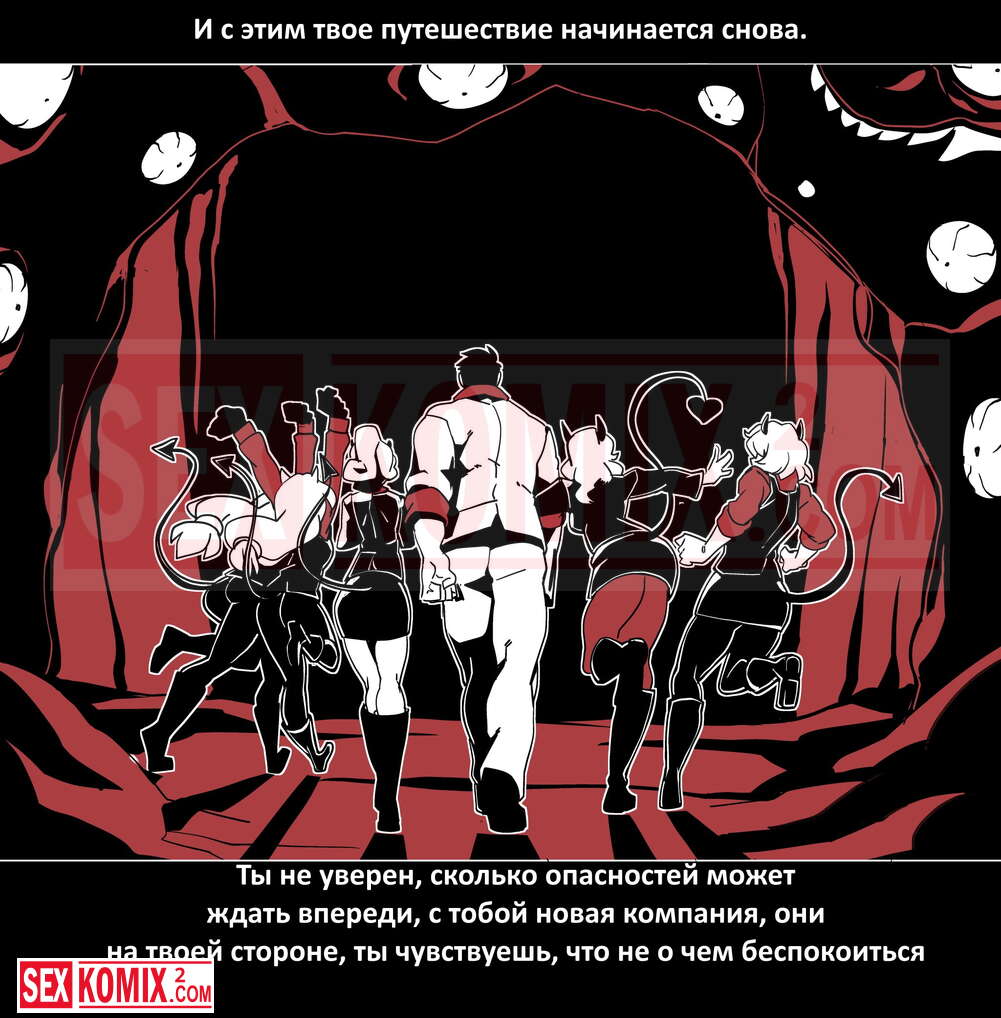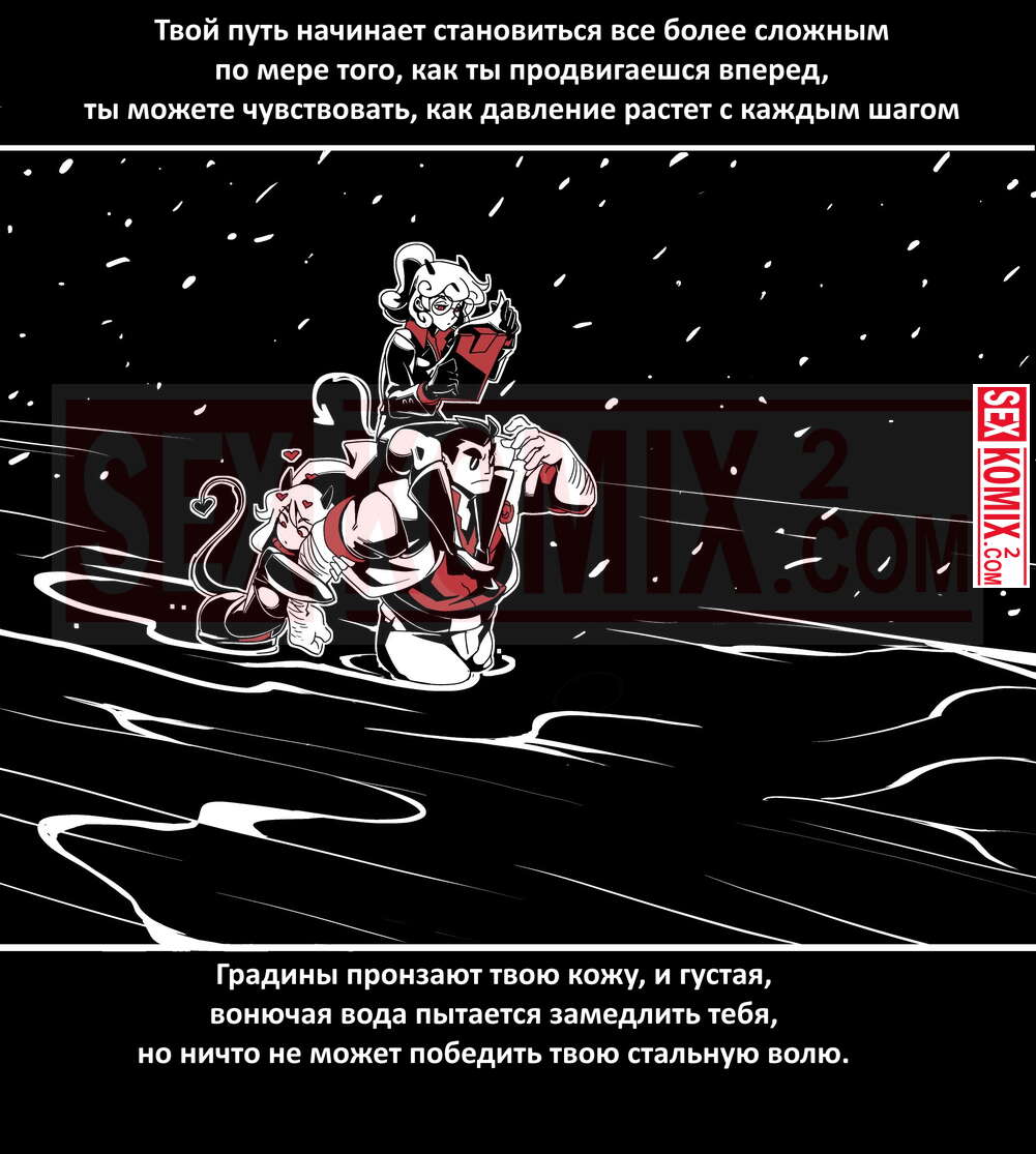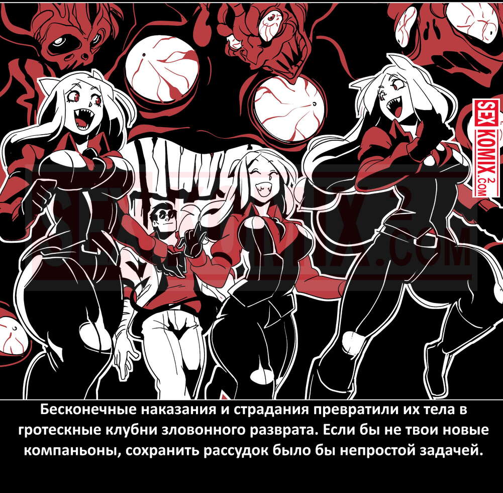 Порно комикс Безумие Хеллтакер. Helltaker. На русском. Мужчина понял, что ему перепадет отличный секс с демоническими красотками и он пошел в дорогу, на встречу опасностям, ради секса. Это похоже на какую-то игры, проходя уровни ты получаешь в награду киску горячей демоницы.