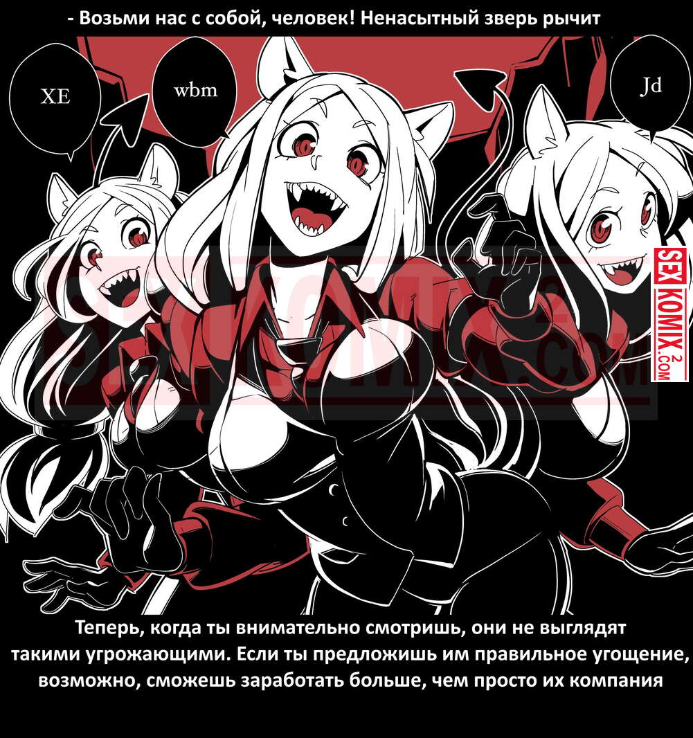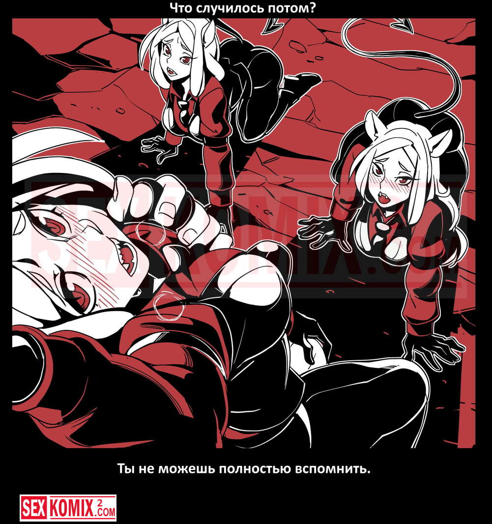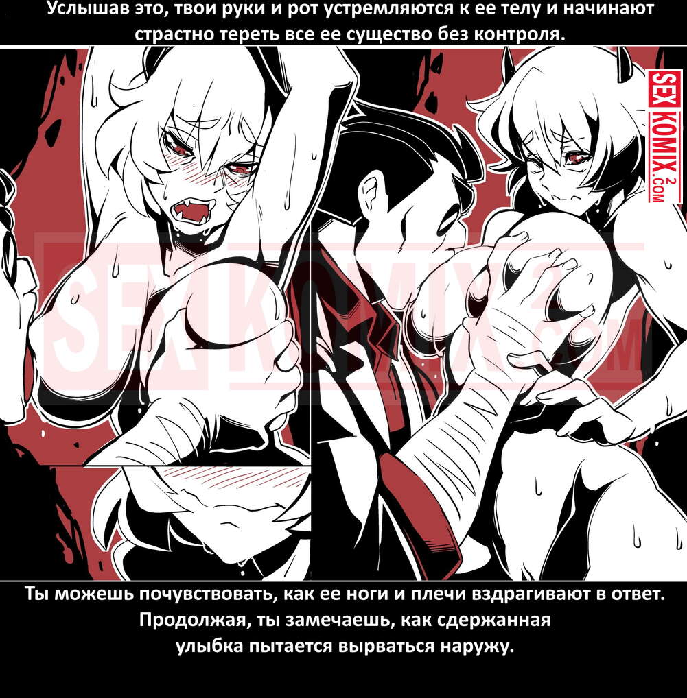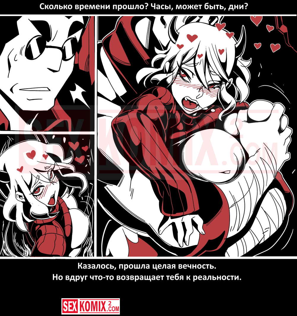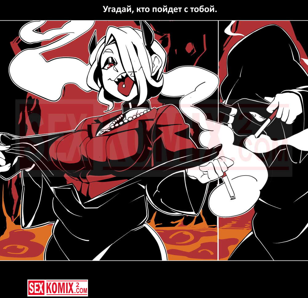 Порно комикс Безумие Хеллтакер. Helltaker. На русском. Мужчина понял, что ему перепадет отличный секс с демоническими красотками и он пошел в дорогу, на встречу опасностям, ради секса. Это похоже на какую-то игры, проходя уровни ты получаешь в награду киску горячей демоницы.