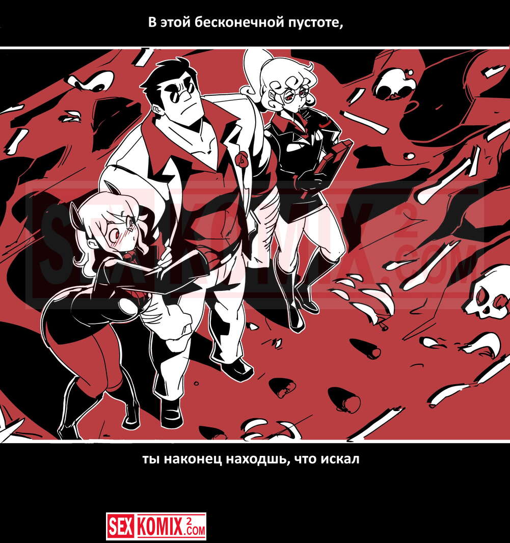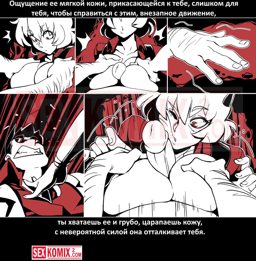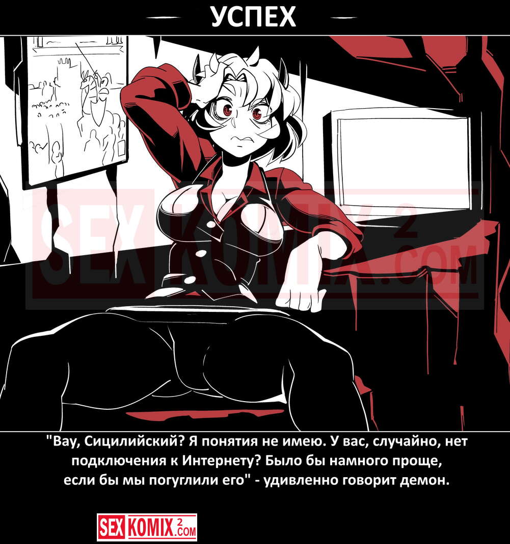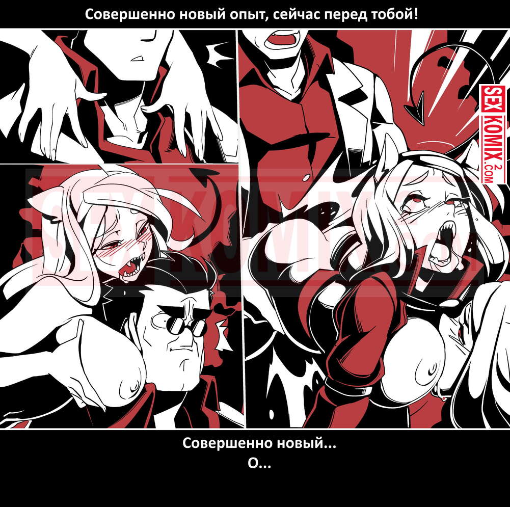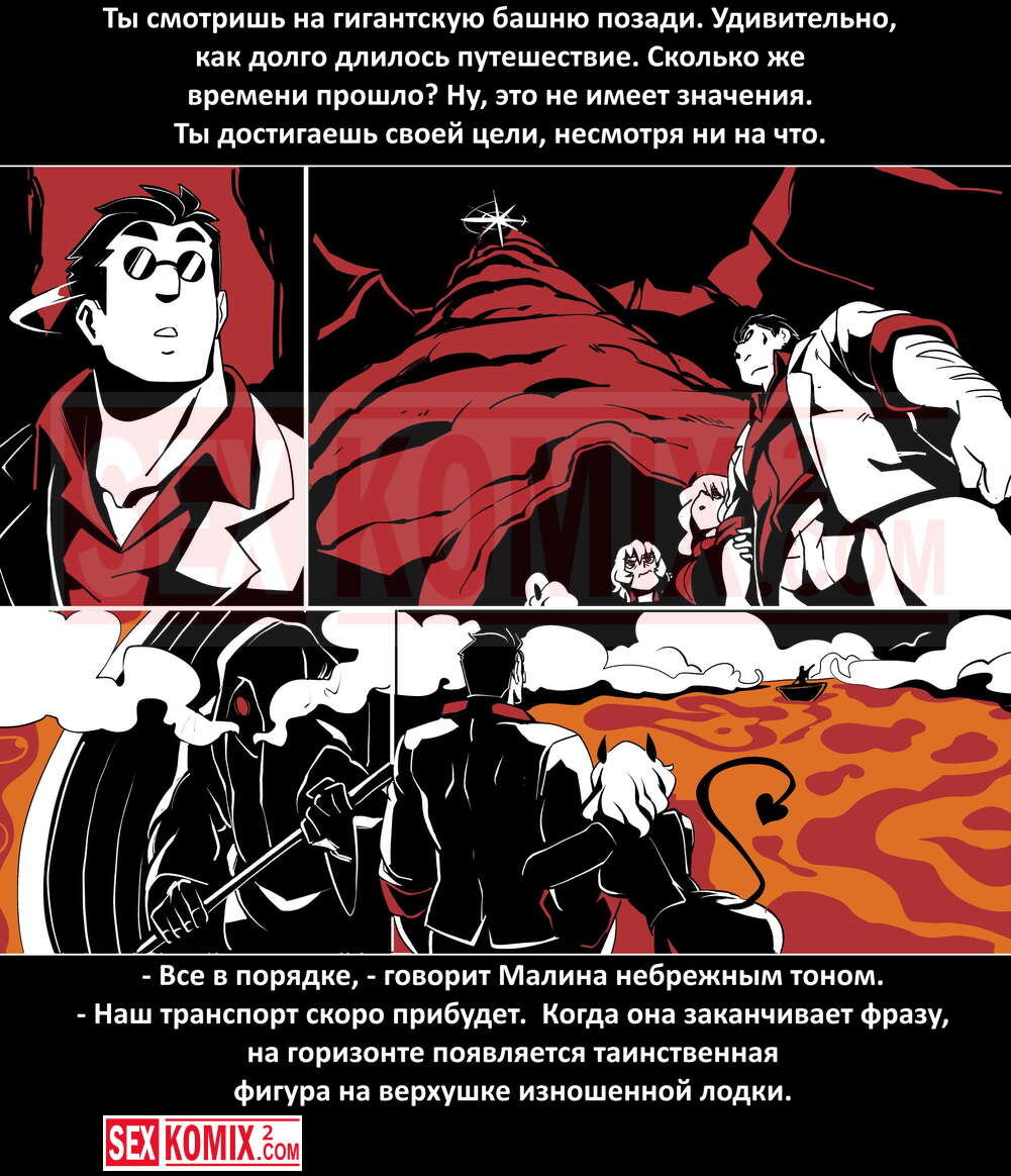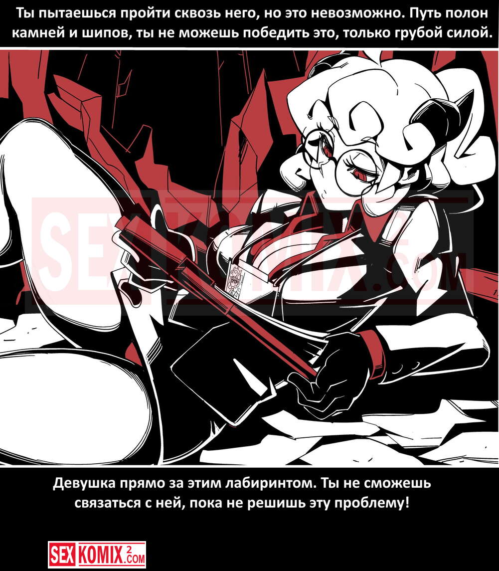 Порно комикс Безумие Хеллтакер. Helltaker. На русском. Мужчина понял, что ему перепадет отличный секс с демоническими красотками и он пошел в дорогу, на встречу опасностям, ради секса. Это похоже на какую-то игры, проходя уровни ты получаешь в награду киску горячей демоницы.