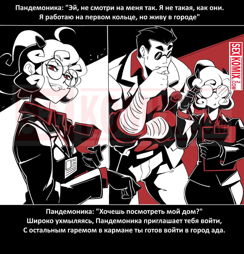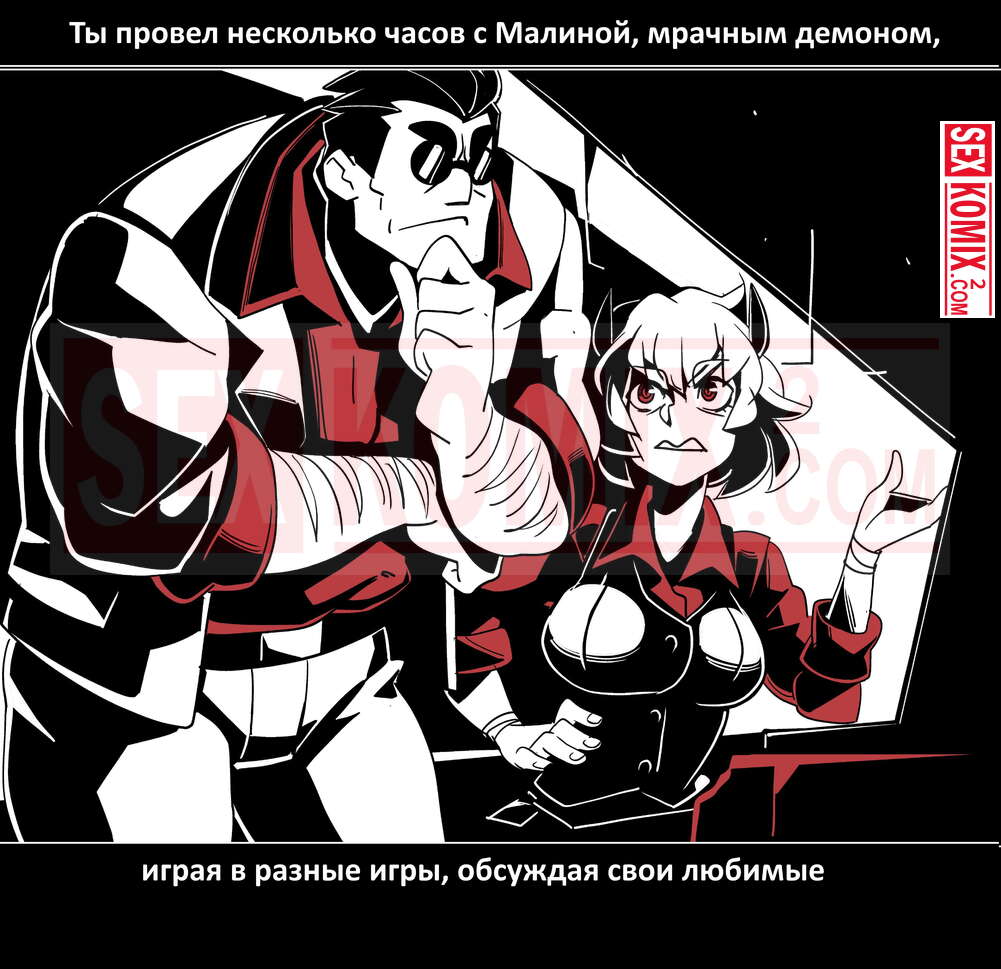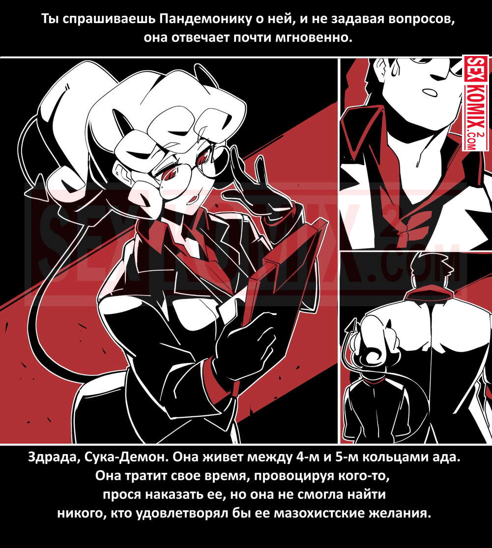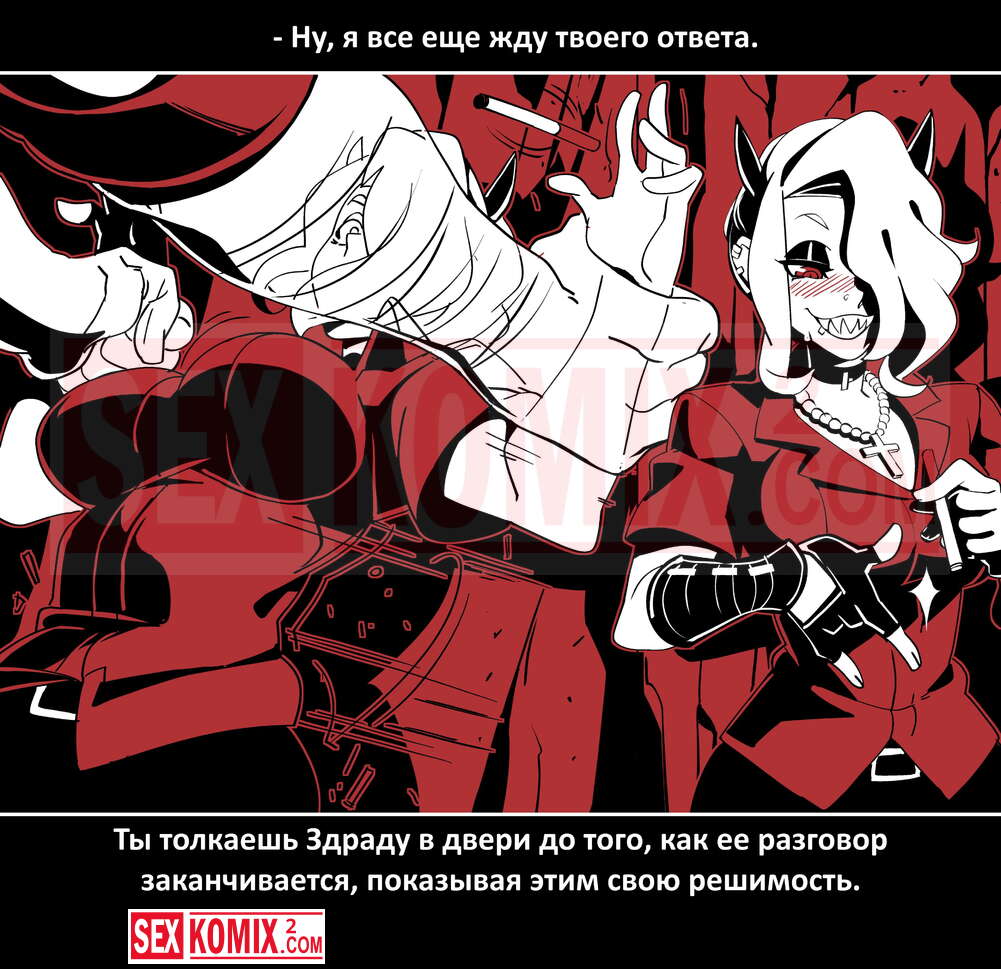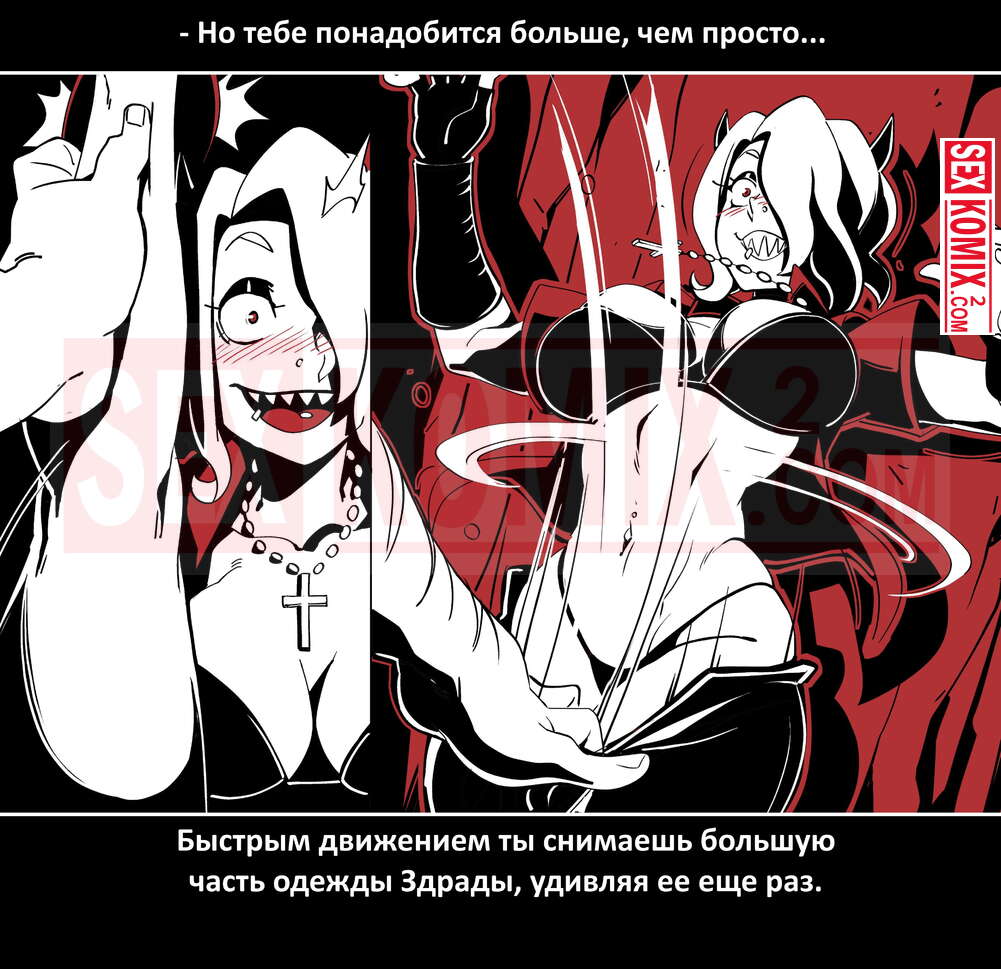 Порно комикс Безумие Хеллтакер. Helltaker. На русском. Мужчина понял, что ему перепадет отличный секс с демоническими красотками и он пошел в дорогу, на встречу опасностям, ради секса. Это похоже на какую-то игры, проходя уровни ты получаешь в награду киску горячей демоницы.