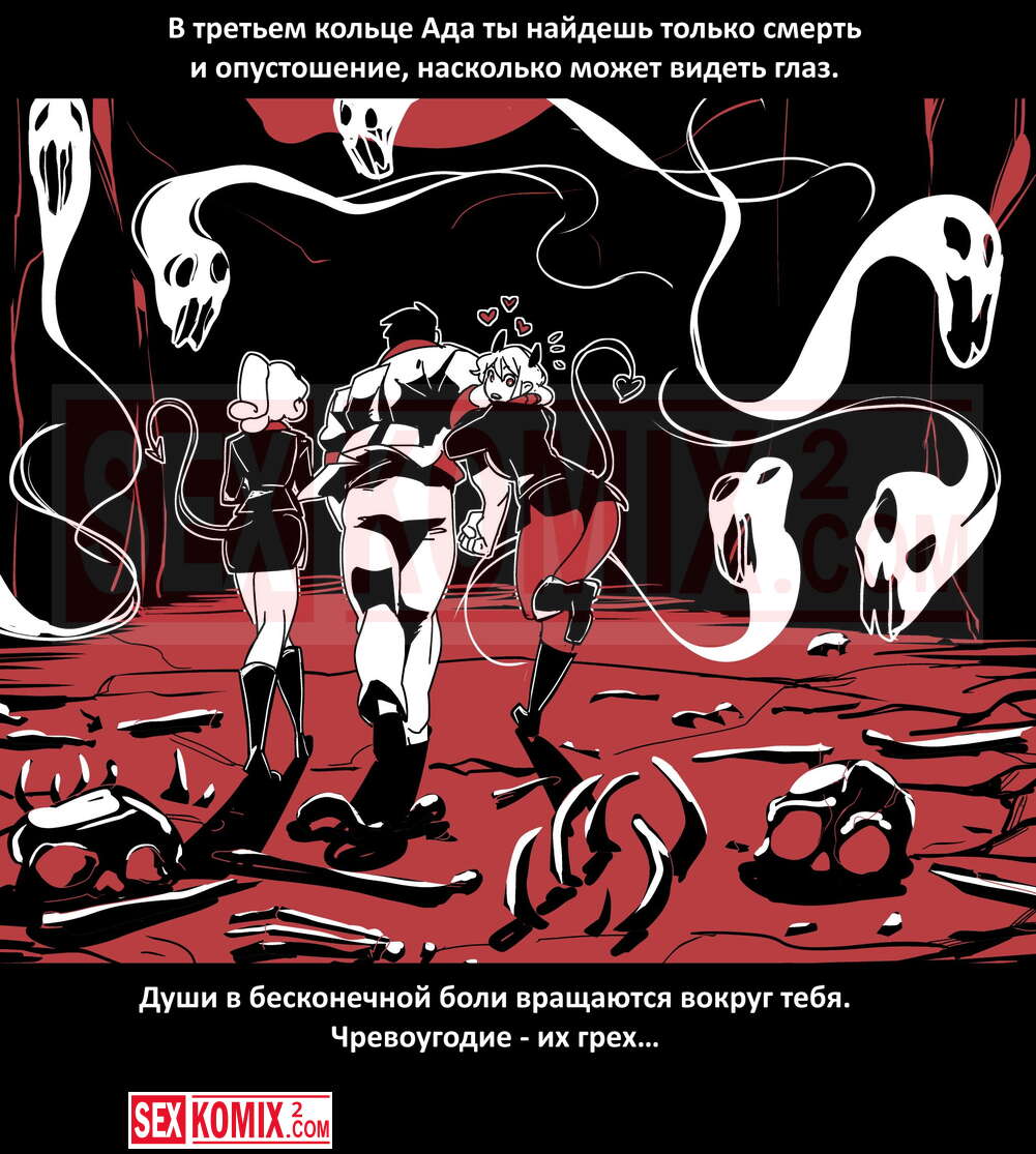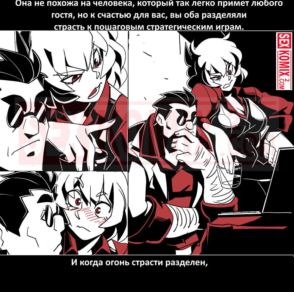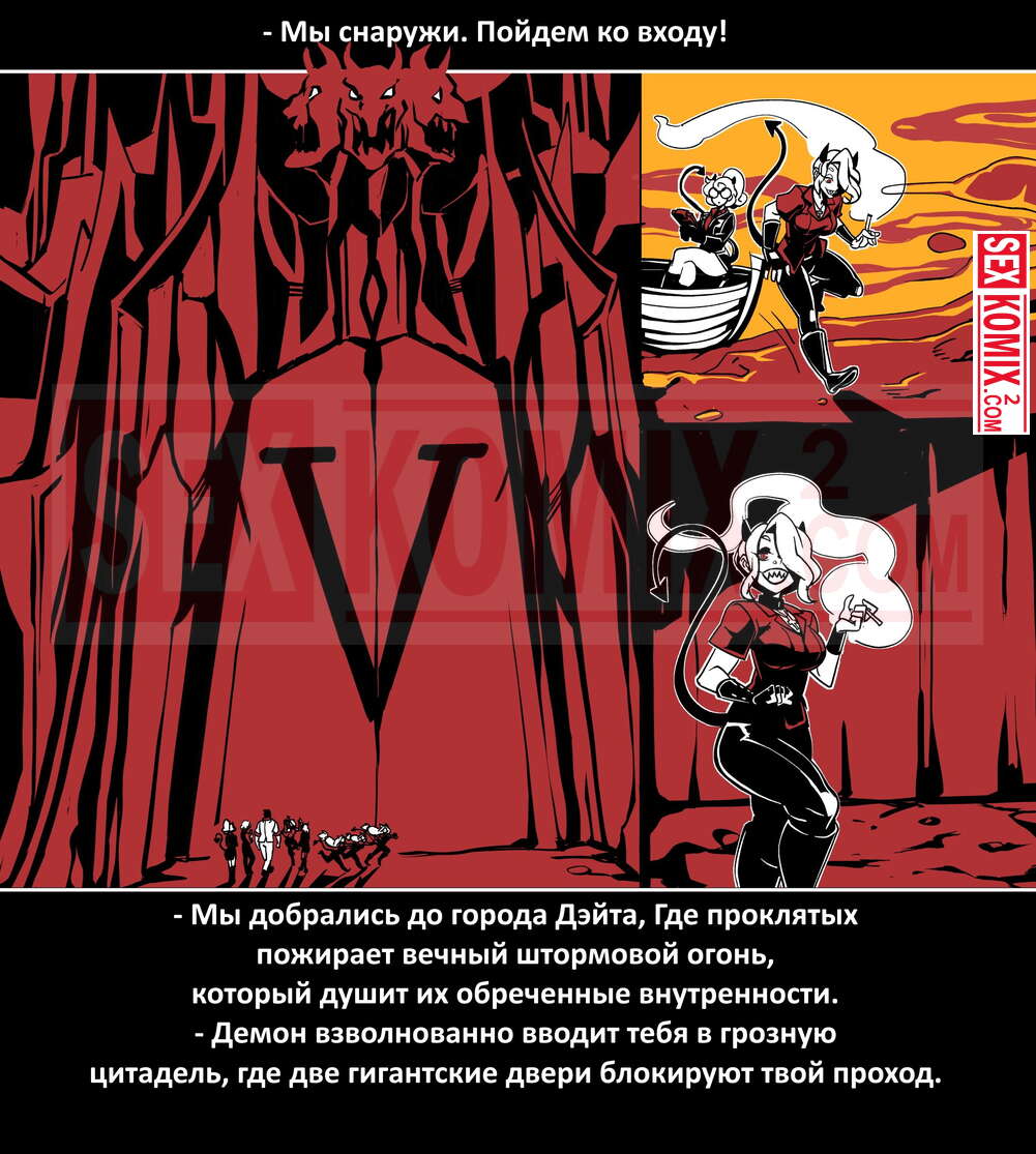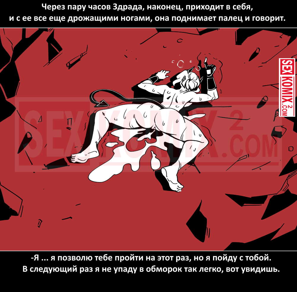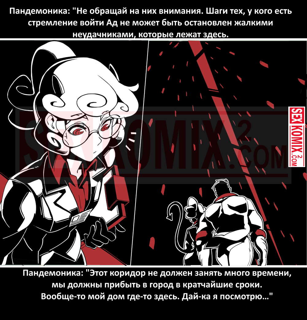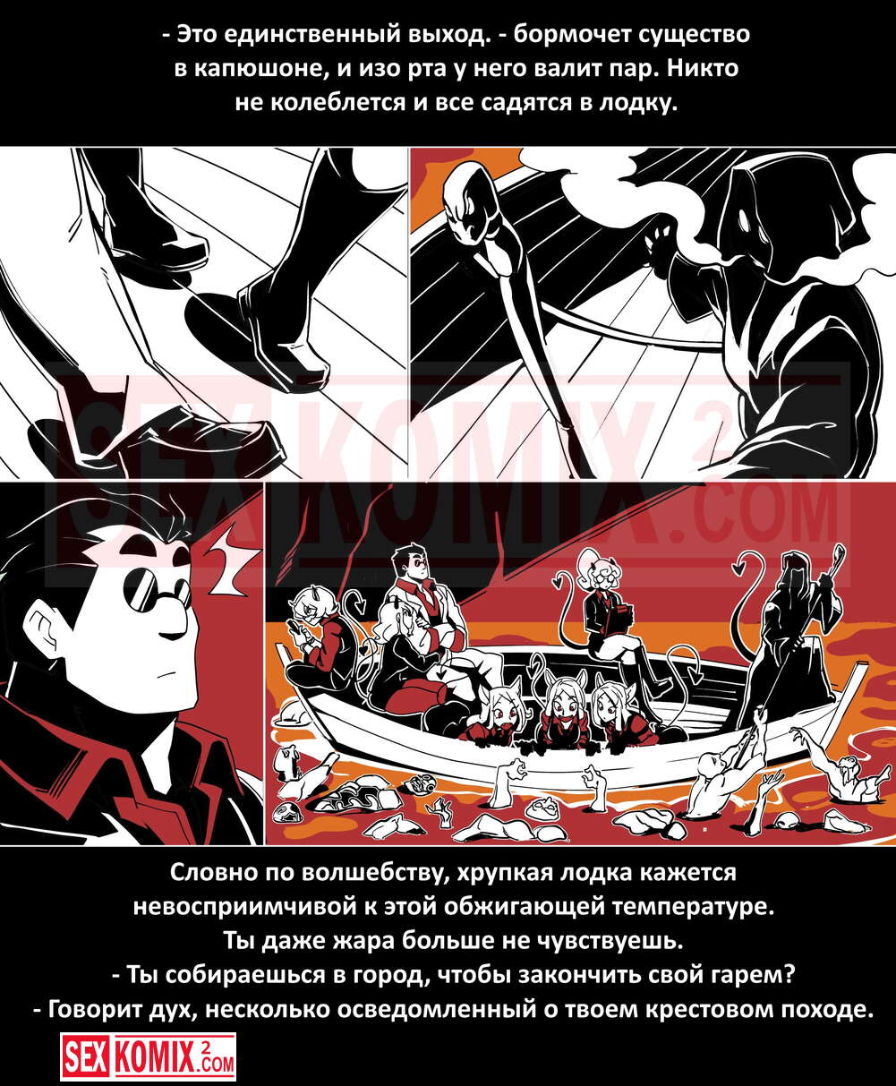 Порно комикс Безумие Хеллтакер. Helltaker. На русском. Мужчина понял, что ему перепадет отличный секс с демоническими красотками и он пошел в дорогу, на встречу опасностям, ради секса. Это похоже на какую-то игры, проходя уровни ты получаешь в награду киску горячей демоницы.