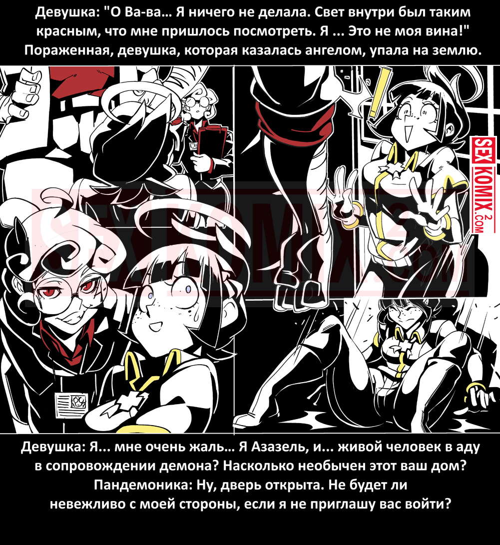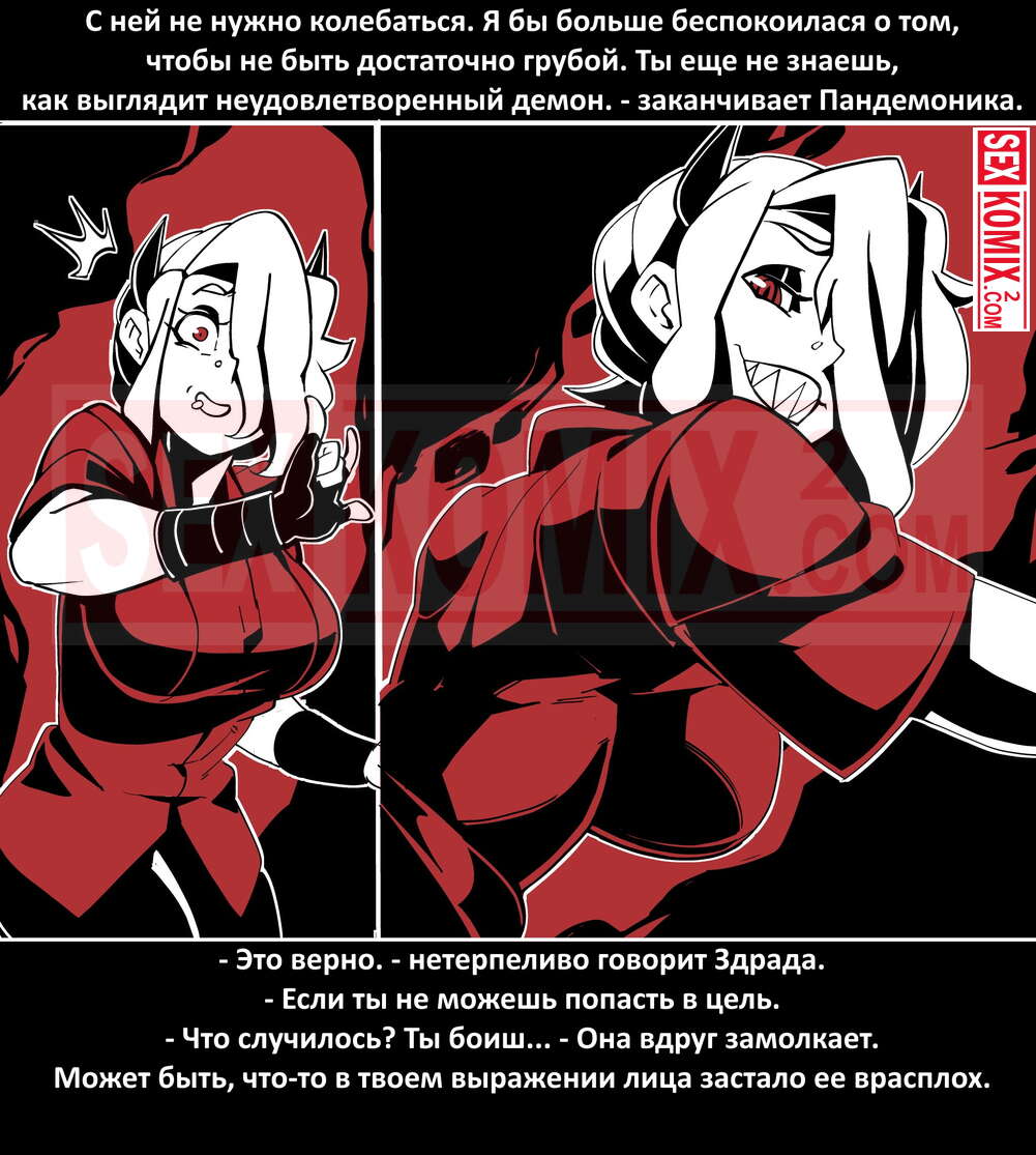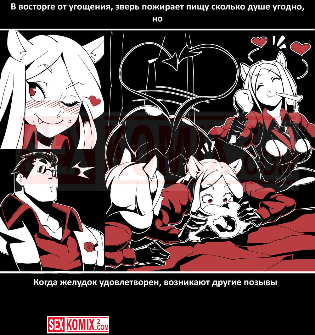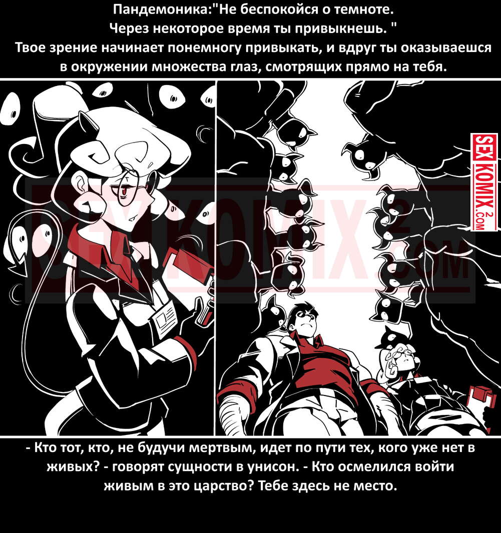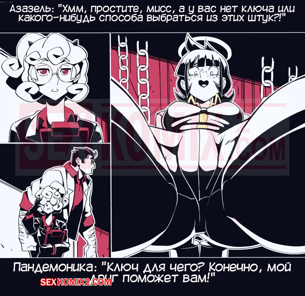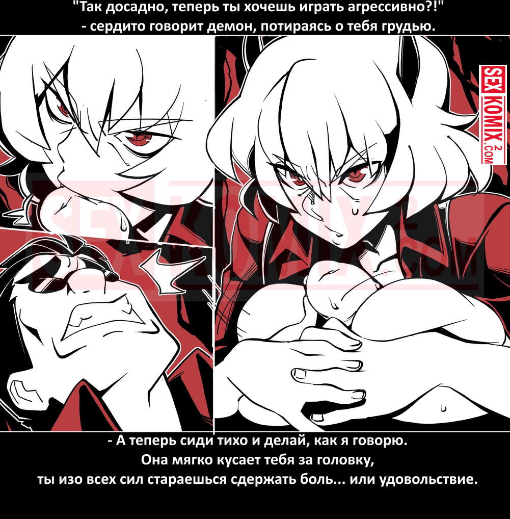 Порно комикс Безумие Хеллтакер. Helltaker. На русском. Мужчина понял, что ему перепадет отличный секс с демоническими красотками и он пошел в дорогу, на встречу опасностям, ради секса. Это похоже на какую-то игры, проходя уровни ты получаешь в награду киску горячей демоницы.
