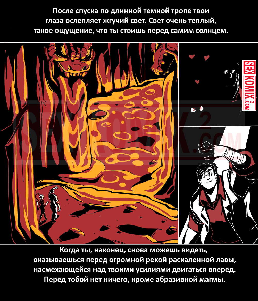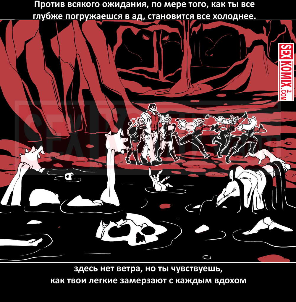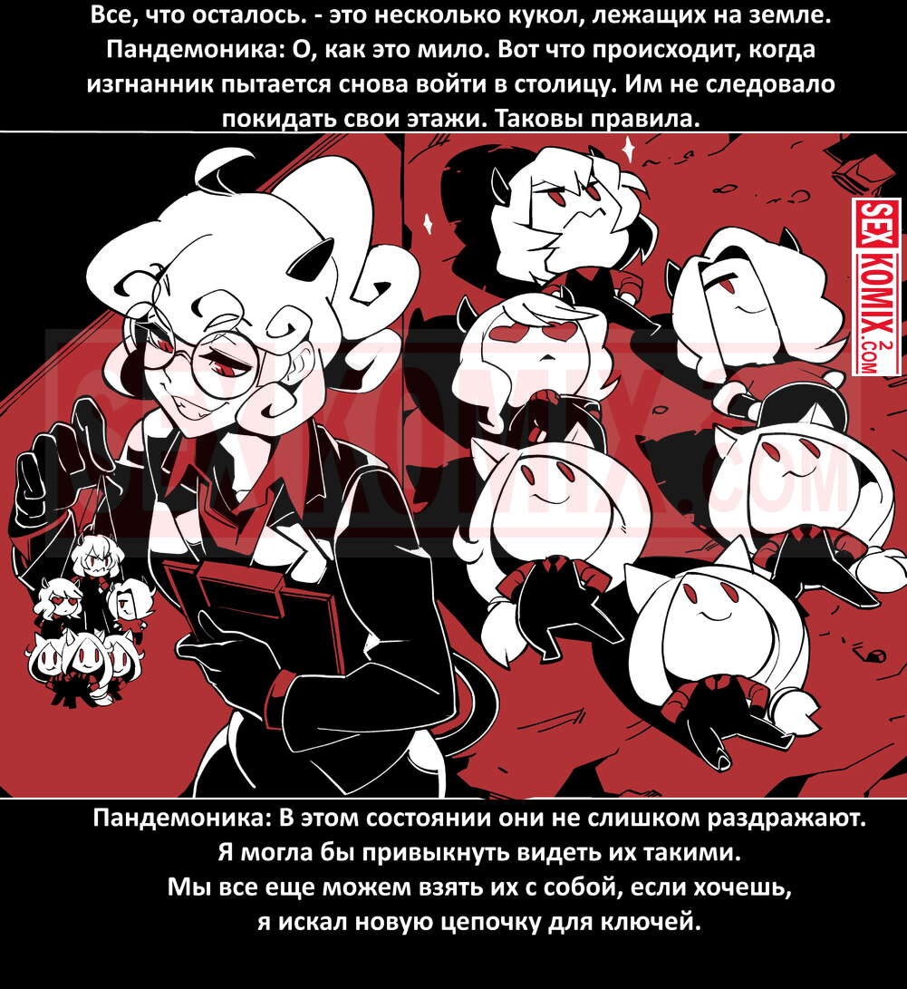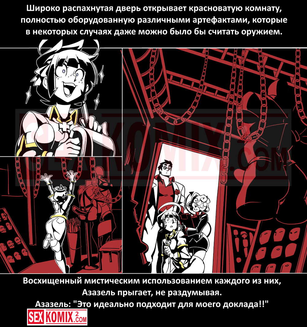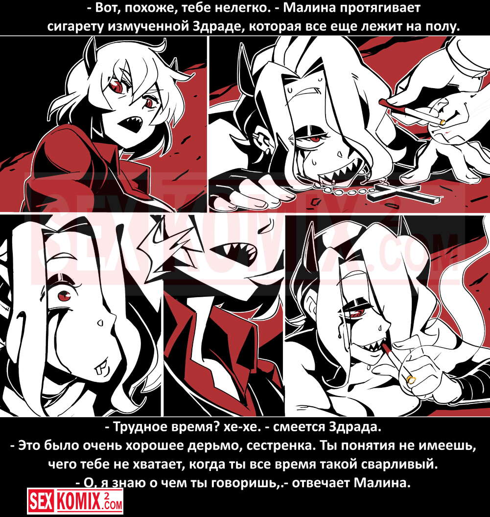 Порно комикс Безумие Хеллтакер. Helltaker. На русском. Мужчина понял, что ему перепадет отличный секс с демоническими красотками и он пошел в дорогу, на встречу опасностям, ради секса. Это похоже на какую-то игры, проходя уровни ты получаешь в награду киску горячей демоницы.