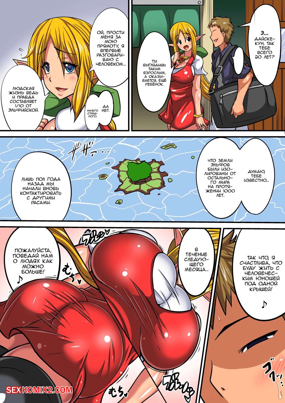 Порно комикс Elf Oyako to Pakopako Ibunka Kouryuu. Haneinu Горячая блондинка эльфийка застала своего дружка за дрочкой и возбудилась от размера его члена. Девушка разделась и отсосала хуй парня, после чего дала ему себя выебать.