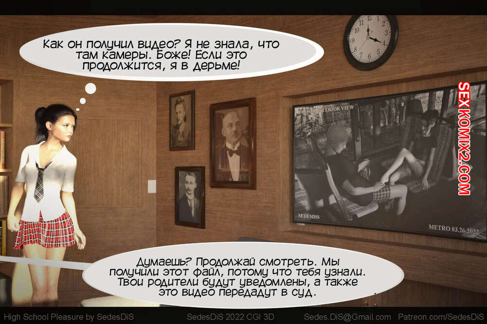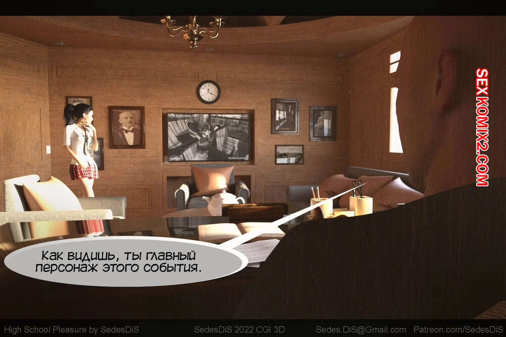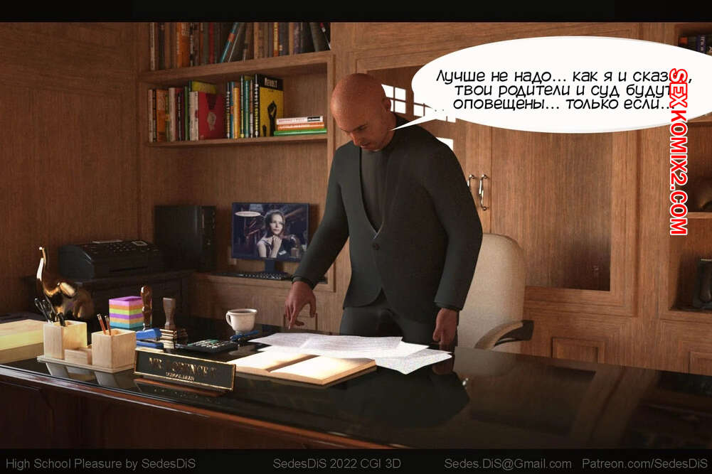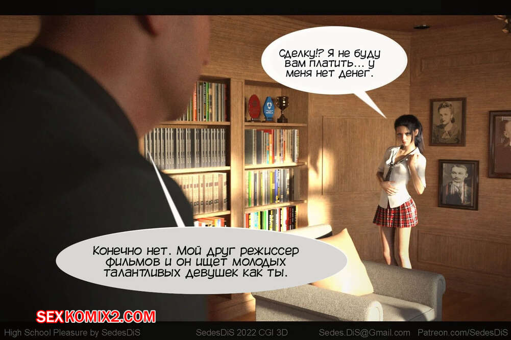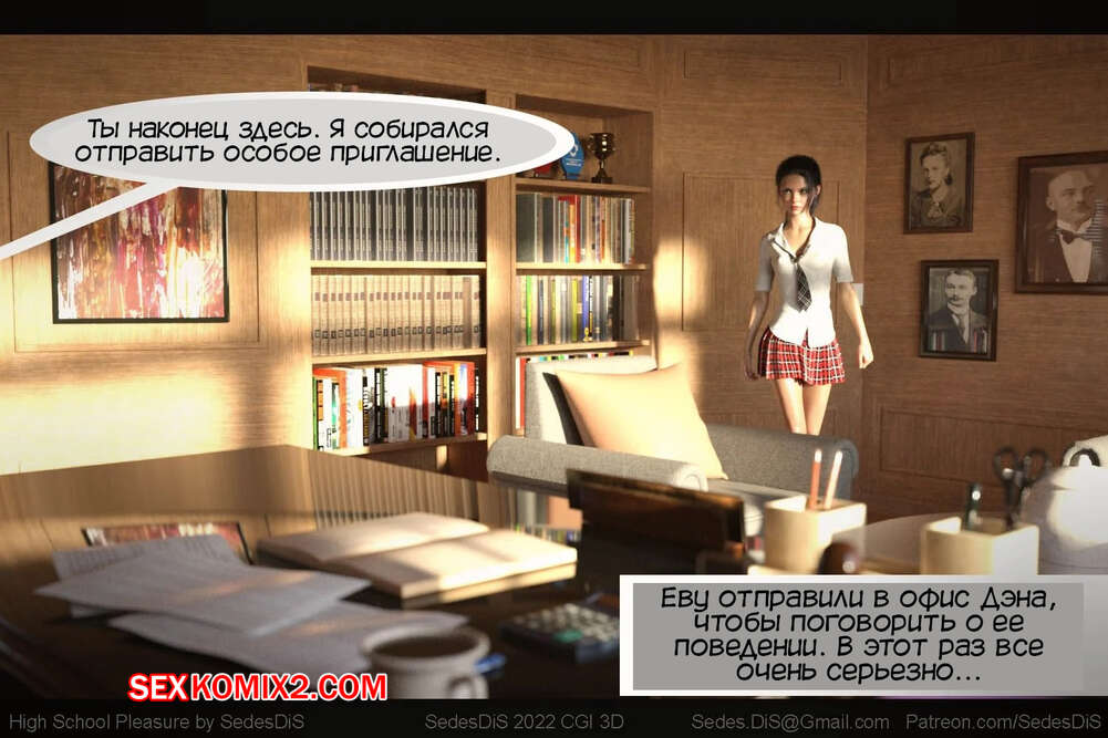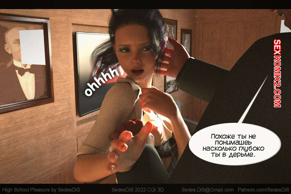 Порно комикс Удовольствие от старшей школы. Часть 1. High School Pleasure. SedesDiS. Мужик вызвал юную брюнетку к себе в кабинет и стал шантажировать ее неприличной видеозаписью из автобуса. Девушке пришлось раздеться и отсосать хуй парня, после чего он выебал ее пизденку.