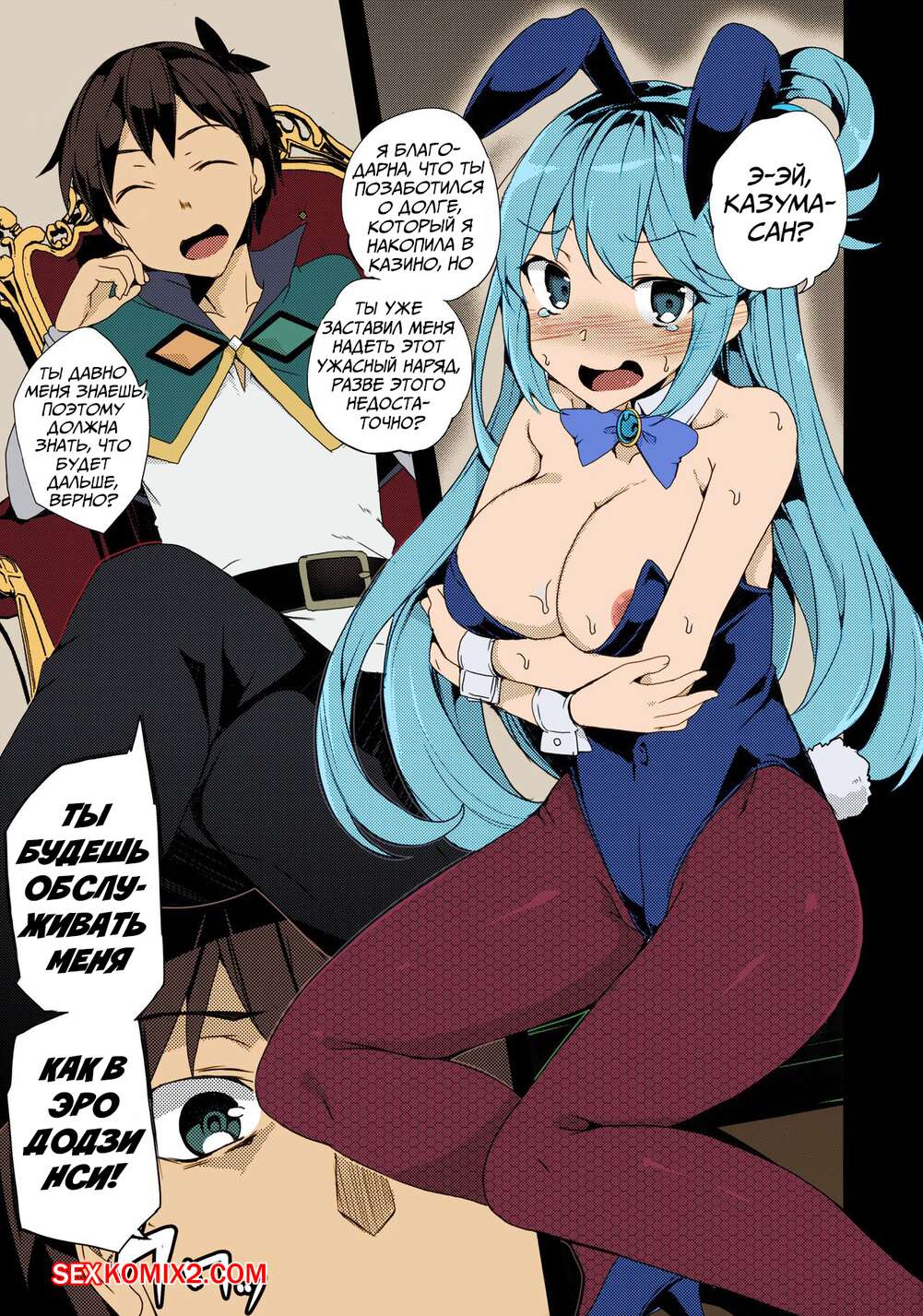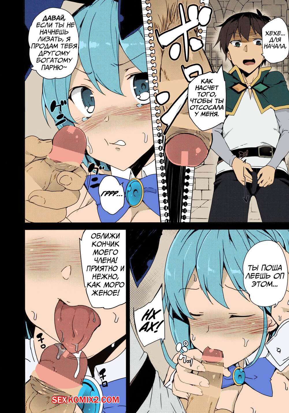 Порно комикс Konosuba. Богиня не может проиграть в азартные игры. Waffle Doumeiken Горячая блондинка проиграла в карты и парень хочет получить свою награду. Он достал свой член и дал подруге его отсосать, после чего выебал ее пизденку, получив удовольствие.