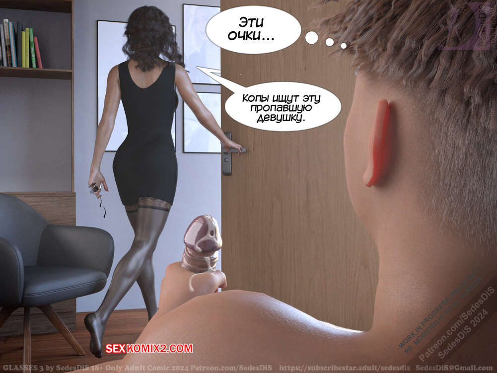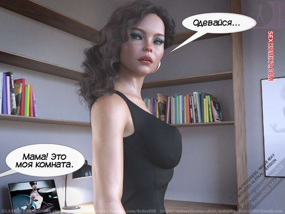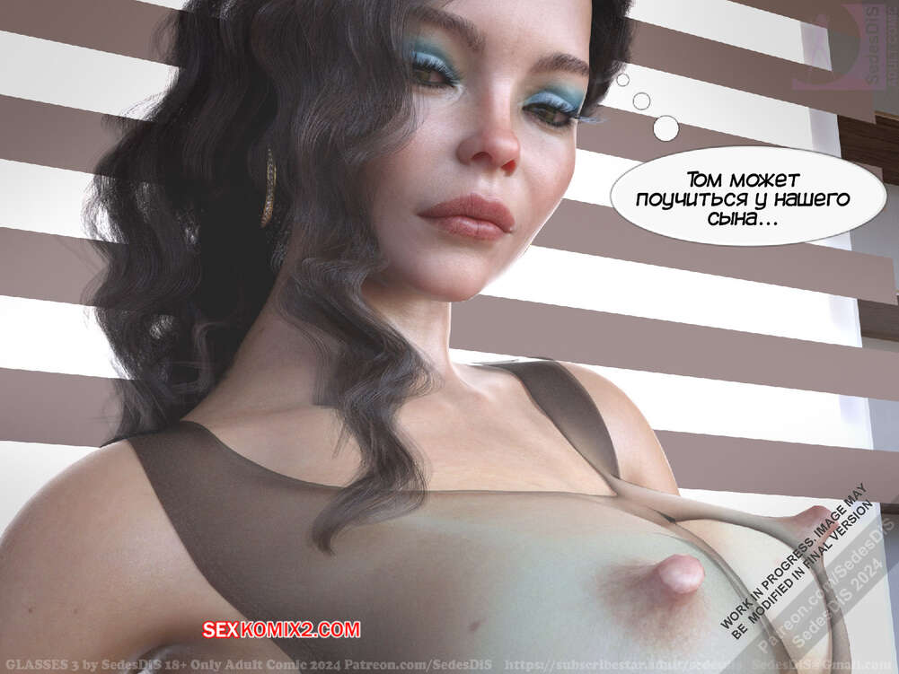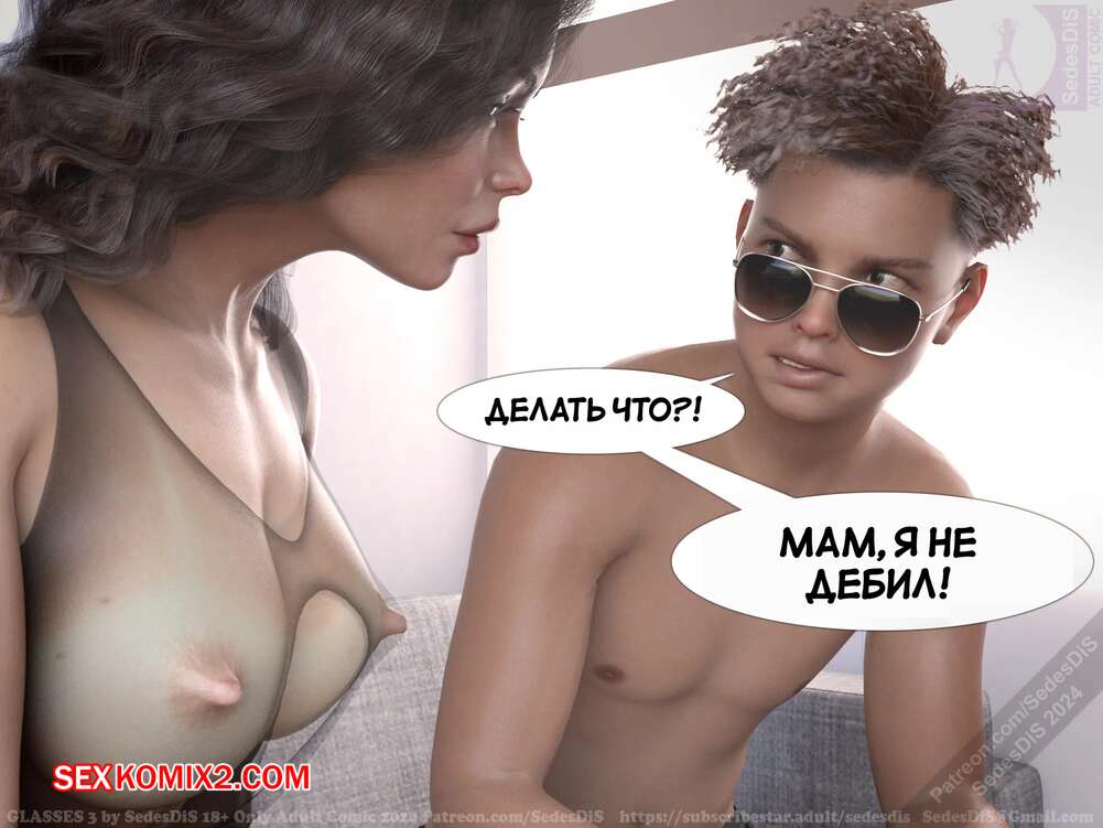 Порно комикс Очки. Часть 3. Glasses. SedesDiS Горячая милфа пришла в комнату к своему сыну, чтобы с ним поговорить. У парня были очки, поэтому он увидел во всей красе шикарное тело своей мамочки и сильно возбудился.