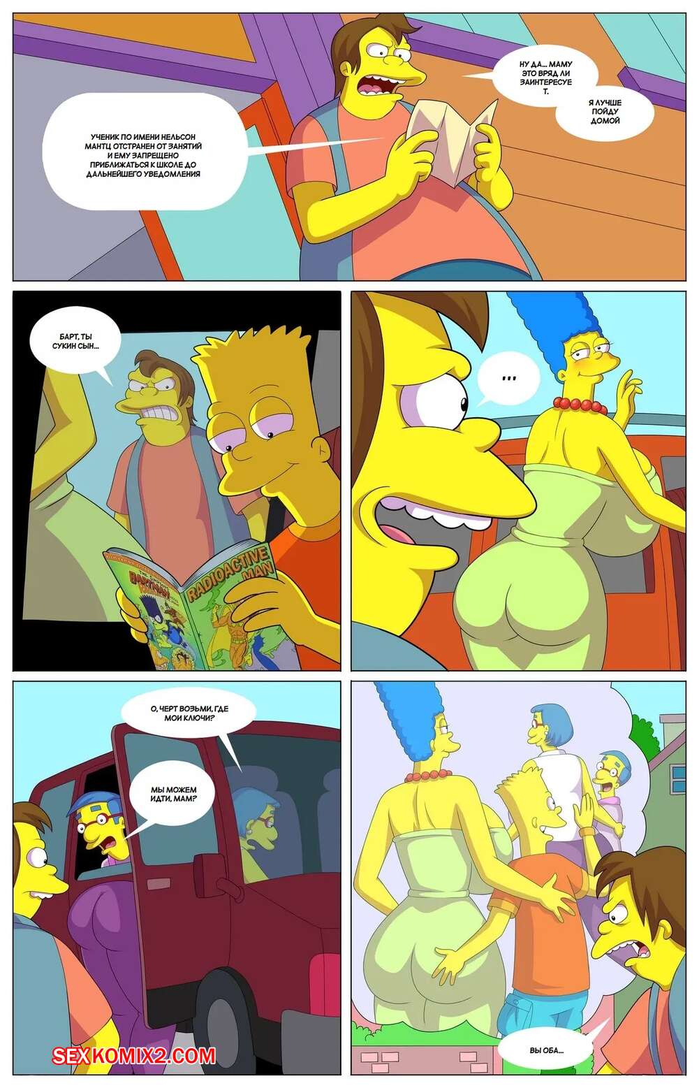 Порно комикс Симпсоны. Квест хулигана. Bullys Quest. Arabatos , Ventz Comics. Горячие милфы не могут устоять перед большим членом Нельсона. Красотки раздеваются и сосут большой хуй паренька, после чего дают ему себя выебать во все дырочки.