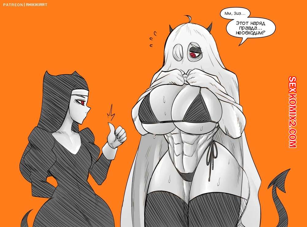 Порно комикс Helltaker. Бехемот и Балор. Behemoth x Balor. Anikiki Art. Горячая блондинка была очень возбуждена и решила повеселиться со своим дружком. Она разделась и отсосала большой хуй парня, после чего дала ему себя выебать.