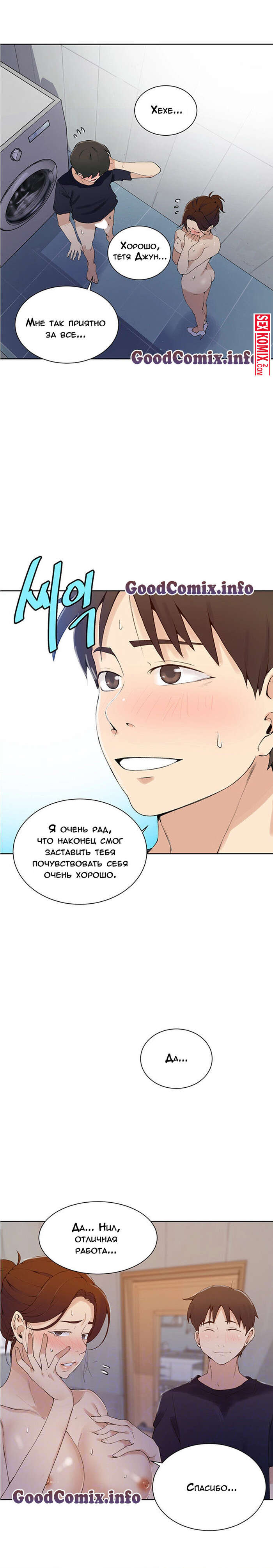 Порно комикс Тайное обучение. Части 44 и 45. Secret Class. После целого дня секса со своим племянником, женщина полка постирать вещи, но и там парень её настиг, снял трусики и выебал.