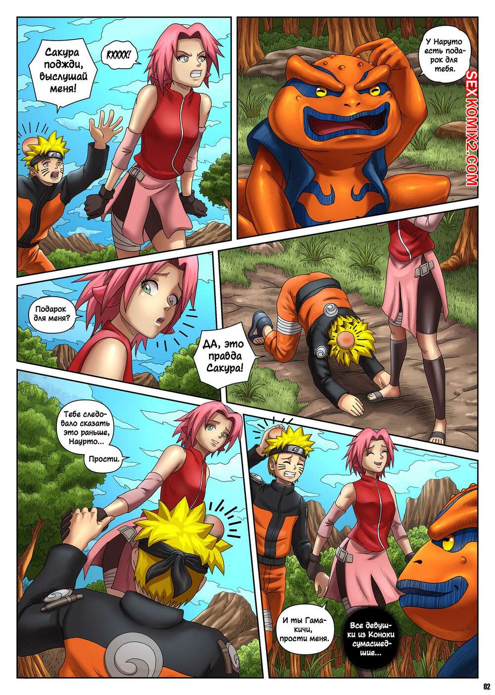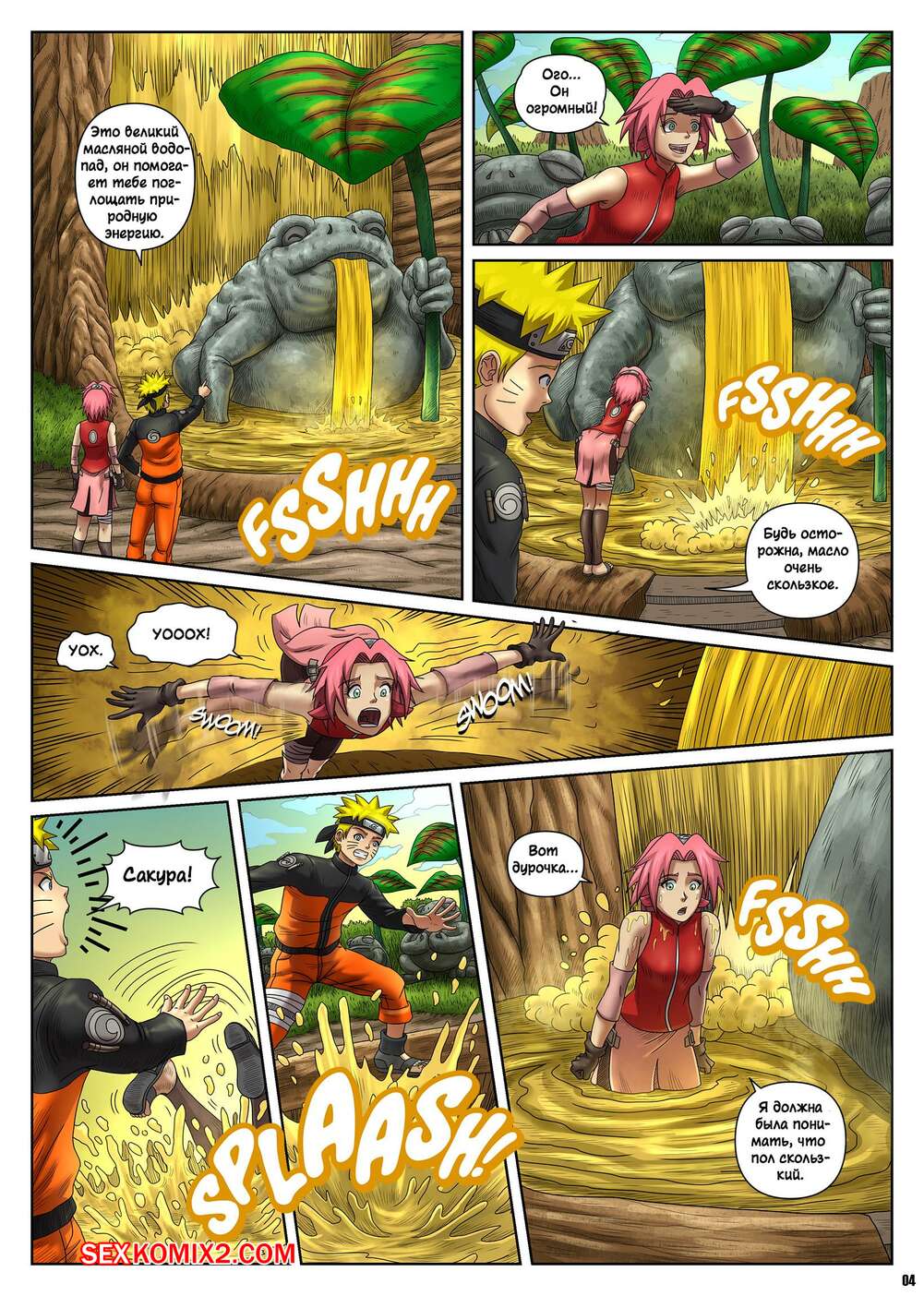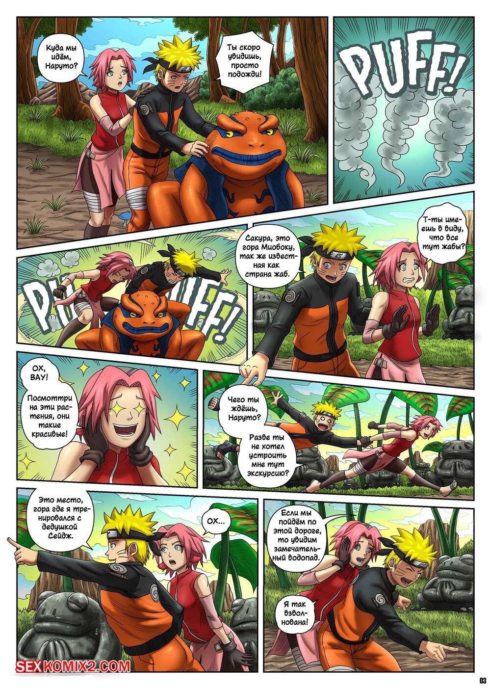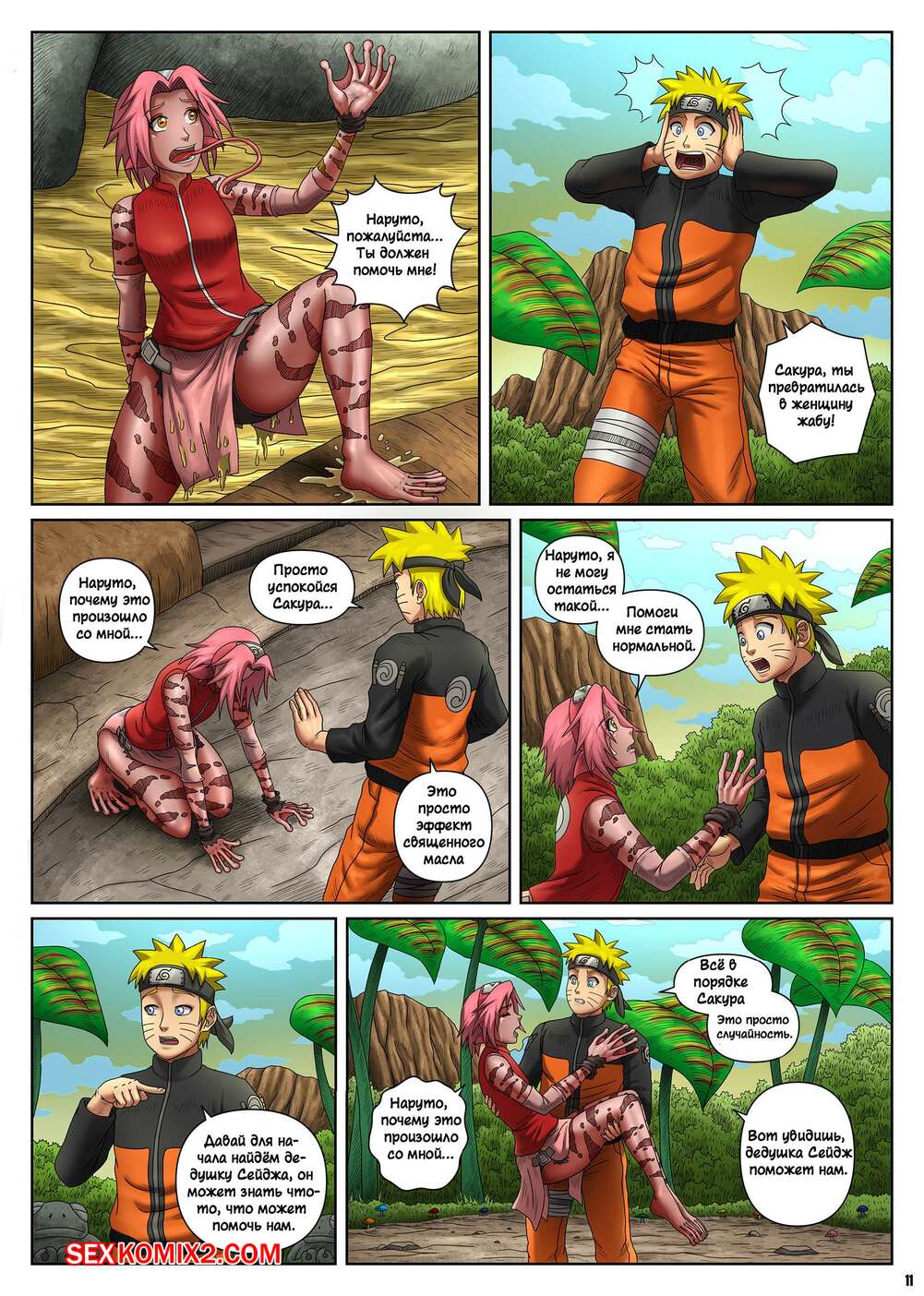 Порно комикс Naruto. The Sacred Oil Fountain. Locofuria С Сакурой и Наруто произошли невероятные изменения и они стали похожи на жаб. Девушка стала сильно комплексовать, но Наруто сделал ей комплименты, от чего девушка отсосала хуй друга и дала ему себя выебать.