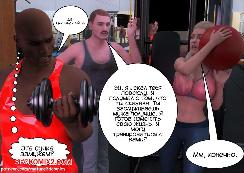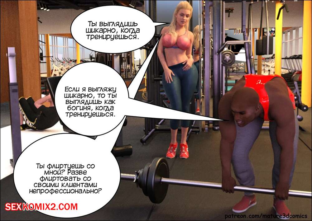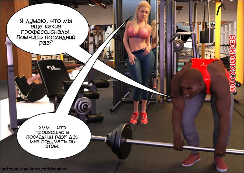 Порно комикс Удвоение жизни и лжи. Часть 1. Double The Lives And Lies. Mature3DComics. Горячая блондинка милфа недовольна жизнью со своим мужем и ходит в тренажерный зал, чтобы отвлекаться. Красотка соблазняет темнокожего тренера, чтобы он ее как следует трахал.