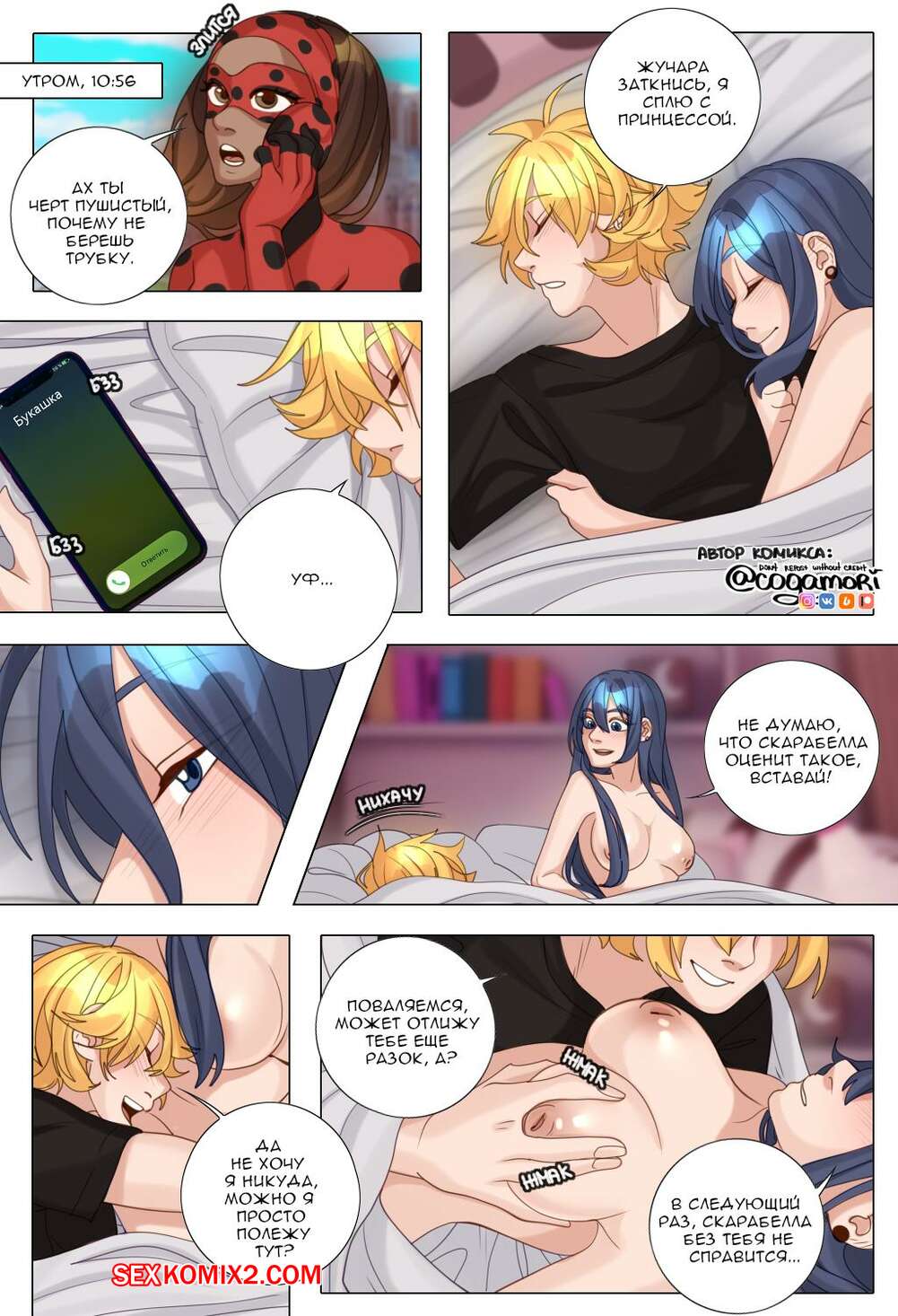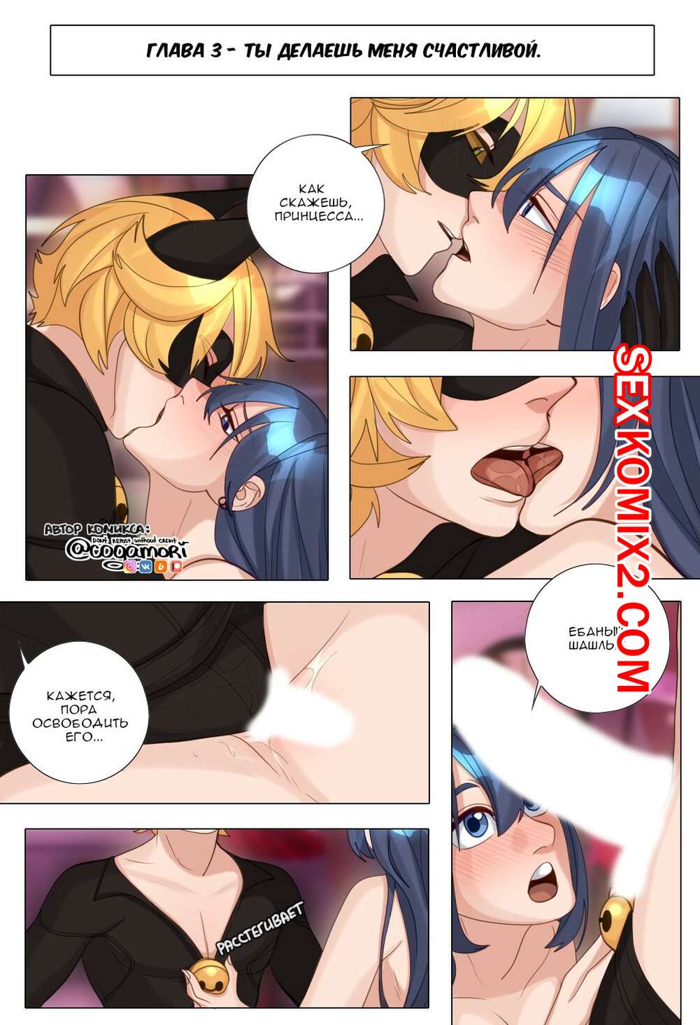 Порно комикс Леди Баг. Кошачьи привычки. Часть 3. Cat habits. Cogamori Горячая брюнетка разделась перед своим дружком и отсосала его большой хуй. Красотка раздвинула ножки и дала парню себя выебать, получив невероятное удовольствие.