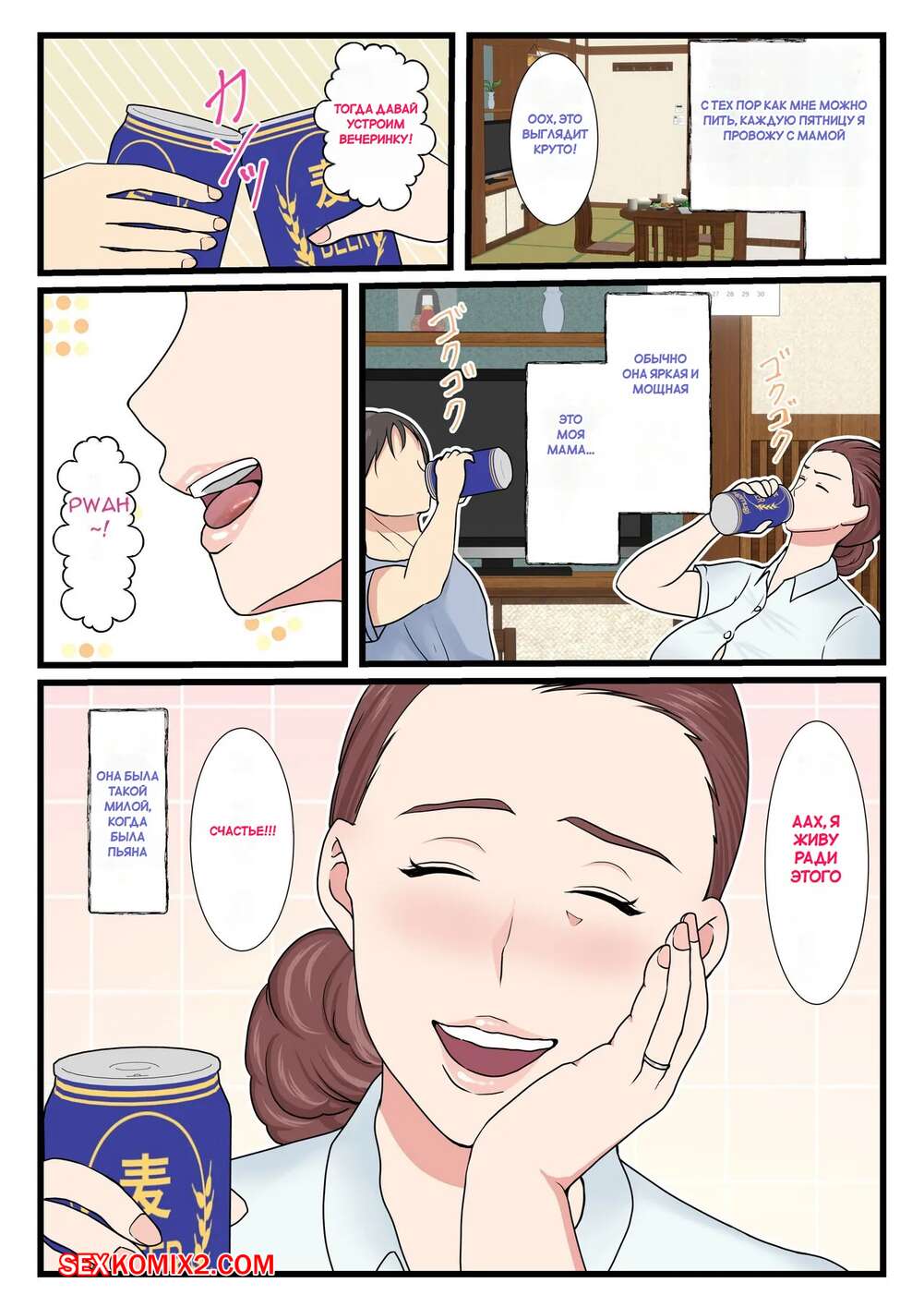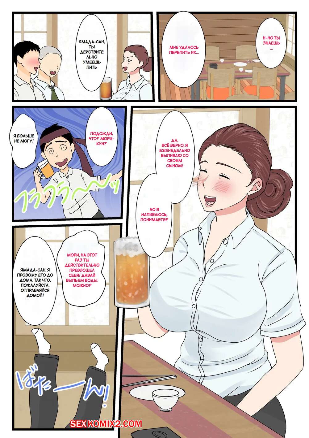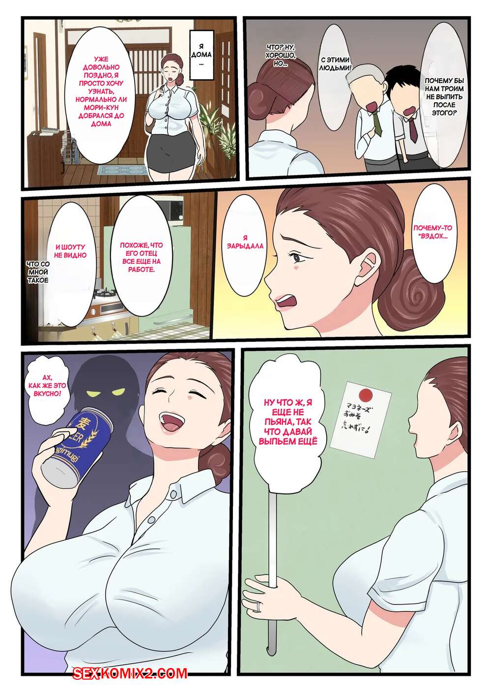 Порно комикс Моя пьяная мама такая милая. My Drunk Mom is so cute. Benii Kenkyuujo Горячая сисястая милфа напилась и решила повеселиться со своим сыном. Красотка разделась и отсосала большой хуй парня, после чего дала ему себя выебать.