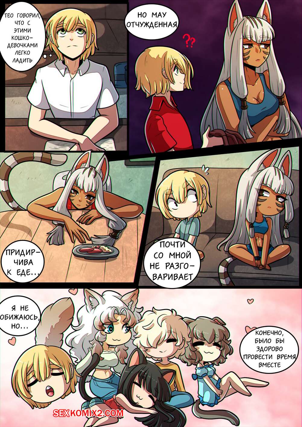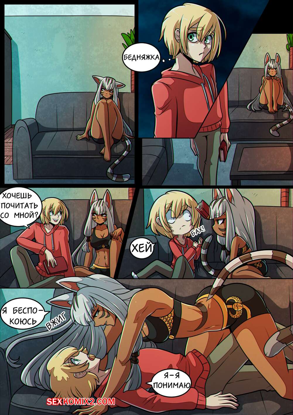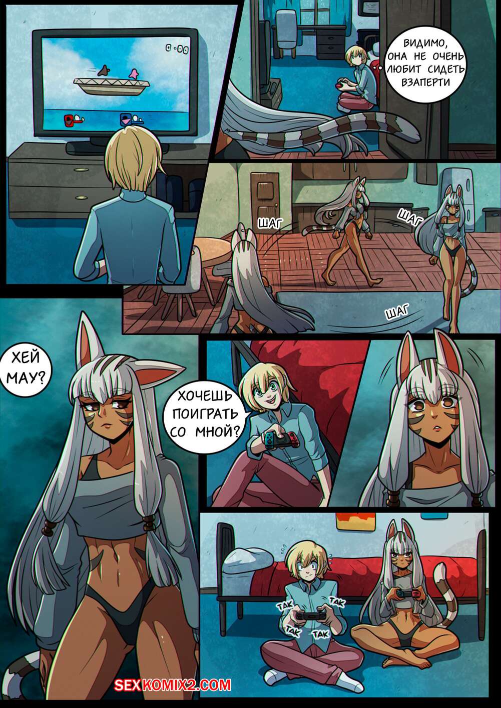 Порно комикс Кошачий замок. Часть 6. Feline Chateau Горячая блондинка была очень возбуждена и решила повеселиться со своим дружком. Она разделась и возбудила парня шикарным телом, после чего дала ему выебать свою пизденку.