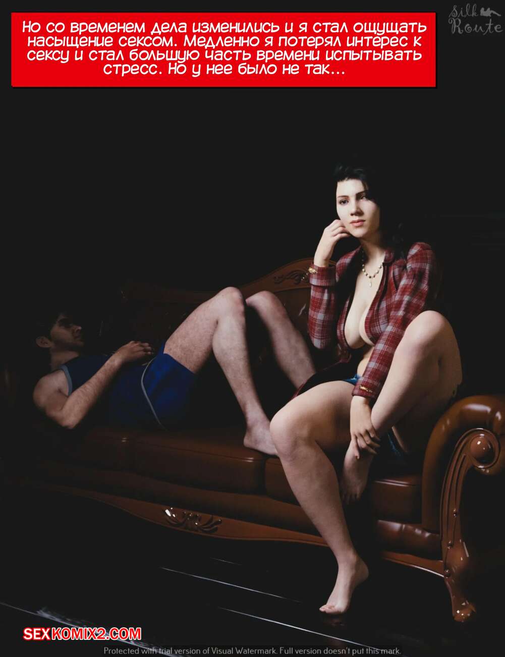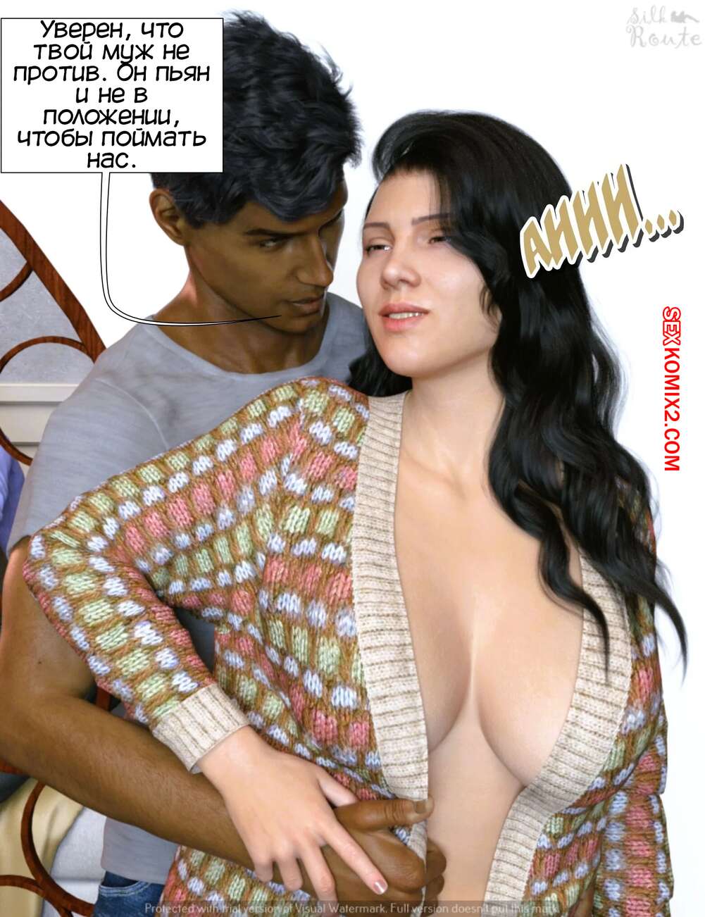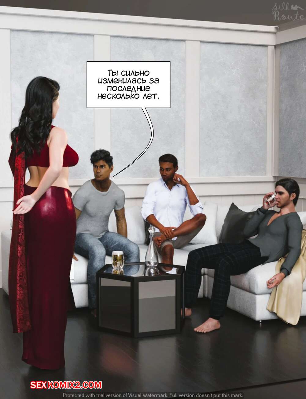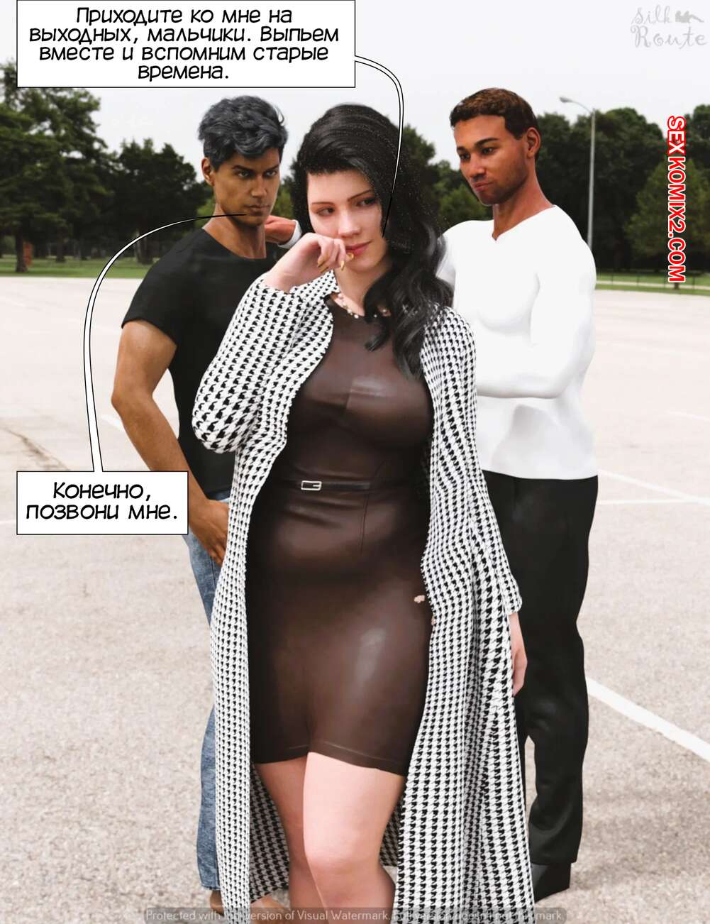 Порно комикс Освобожденная. Unleashed. Silk Route. Горячая милфа испытывает сильное сексуальное желание, так как ее муж потерял к ней интерес. Красотка пригласила к себе своего бывшего парня из колледжа и его друга, чтобы они ее хорошенько выебали.
