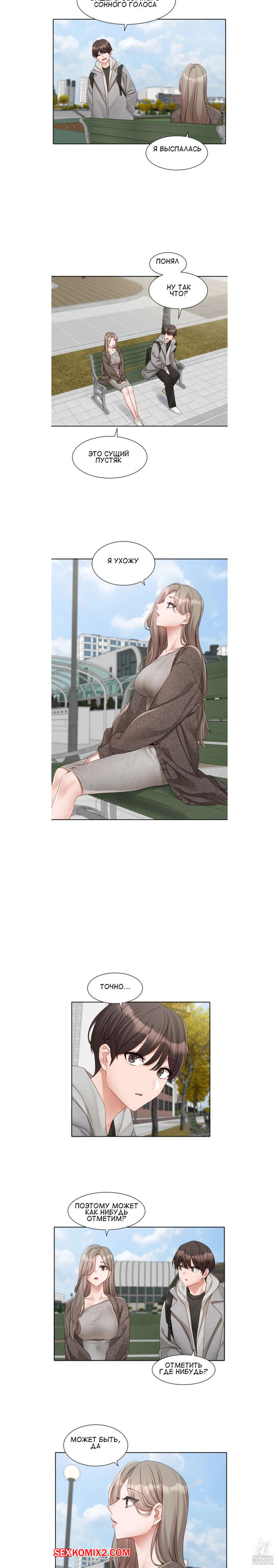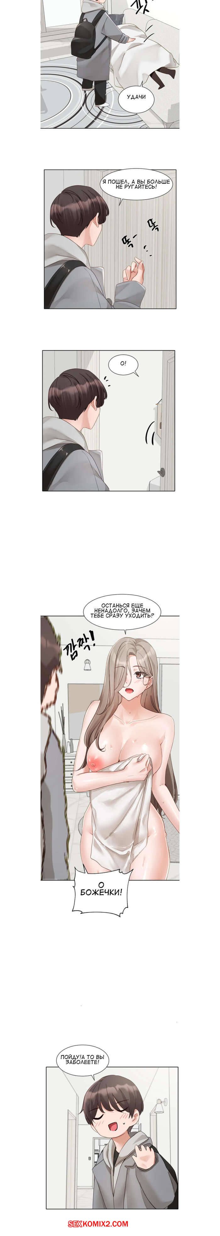 Порно комикс Театральный клуб. Часть 162. Circles. Theater cociety Парень с девушкой пришли домой к ней. Красотка пошла принять душ, после чего вышла в одном полотенце, вызвав у парня восторг. Девушка переоделась и они отправились на прогулку.