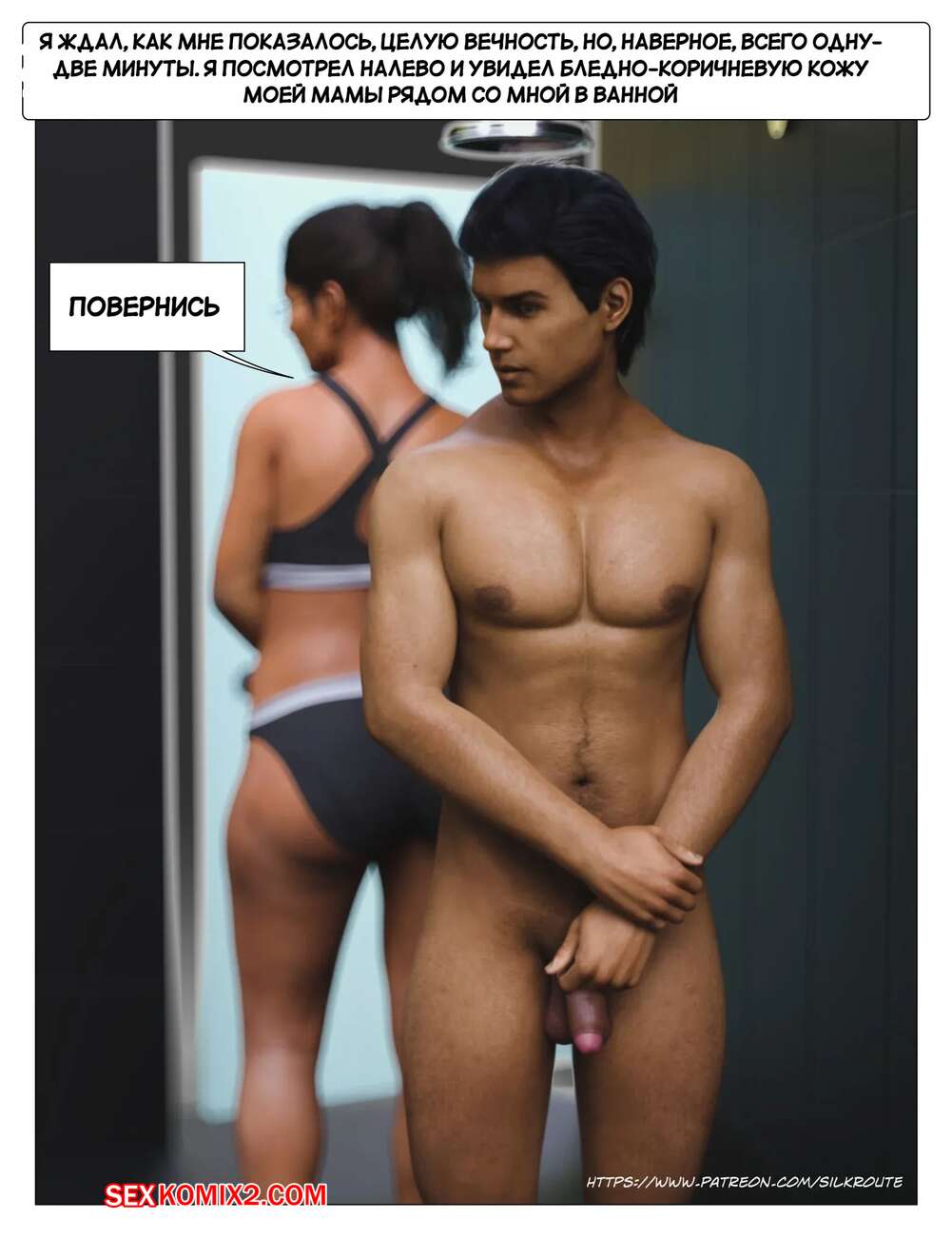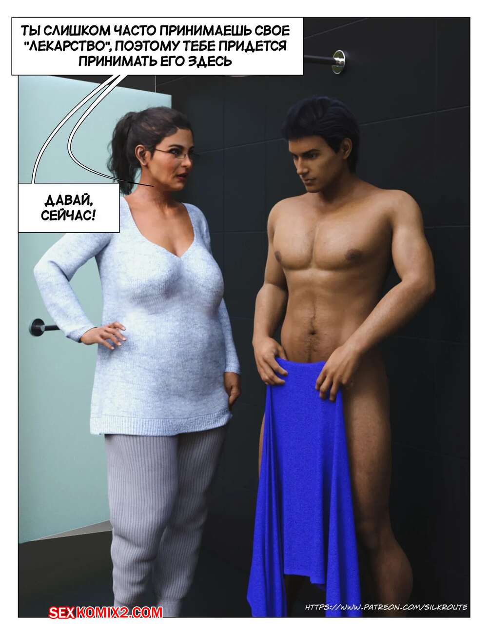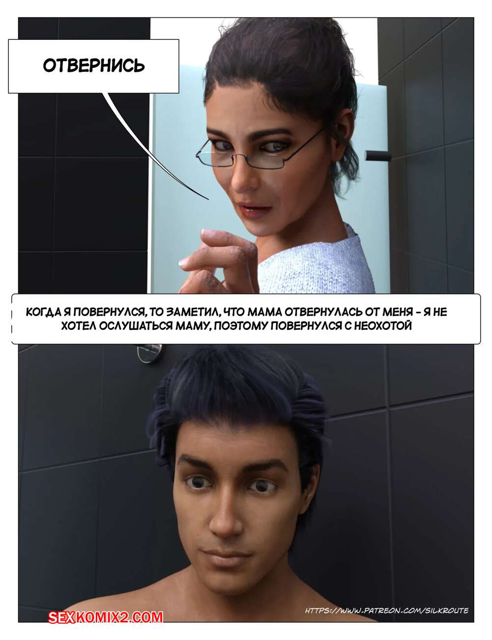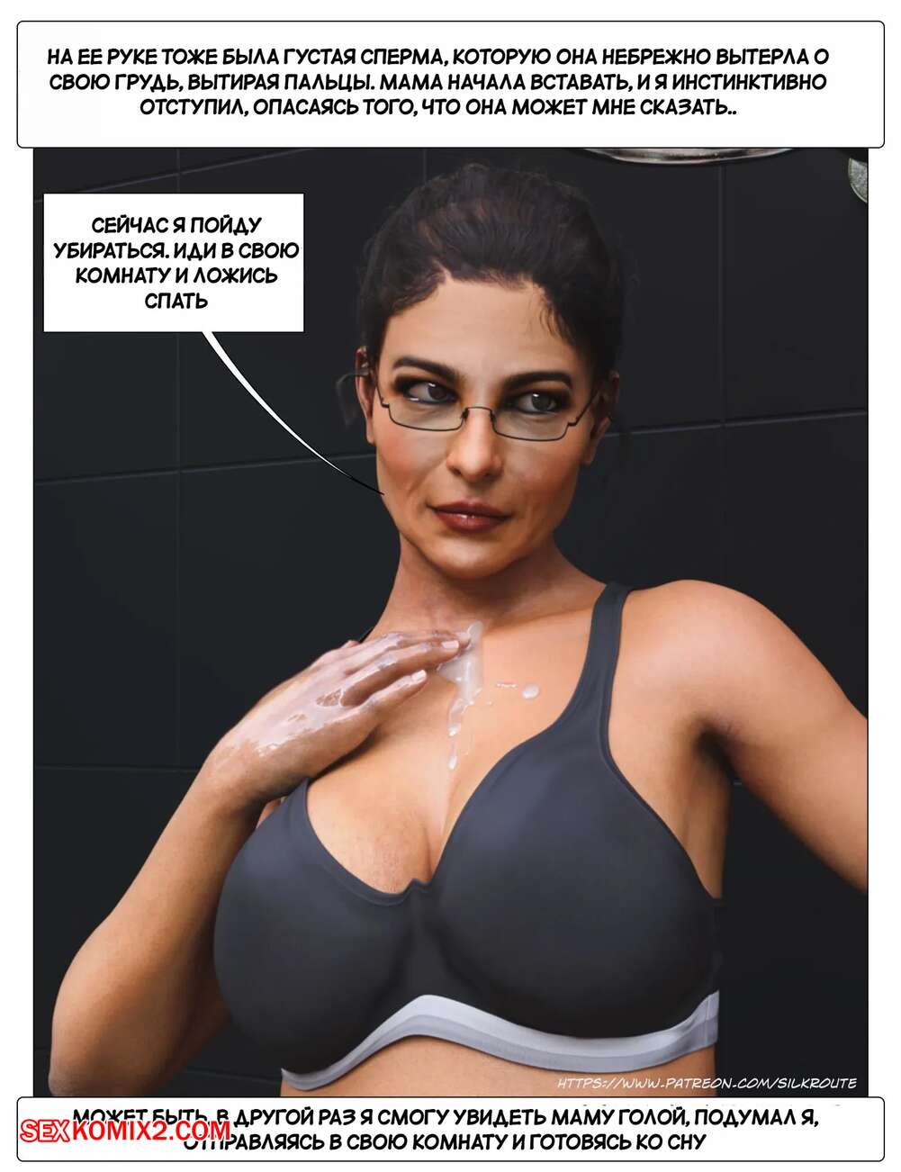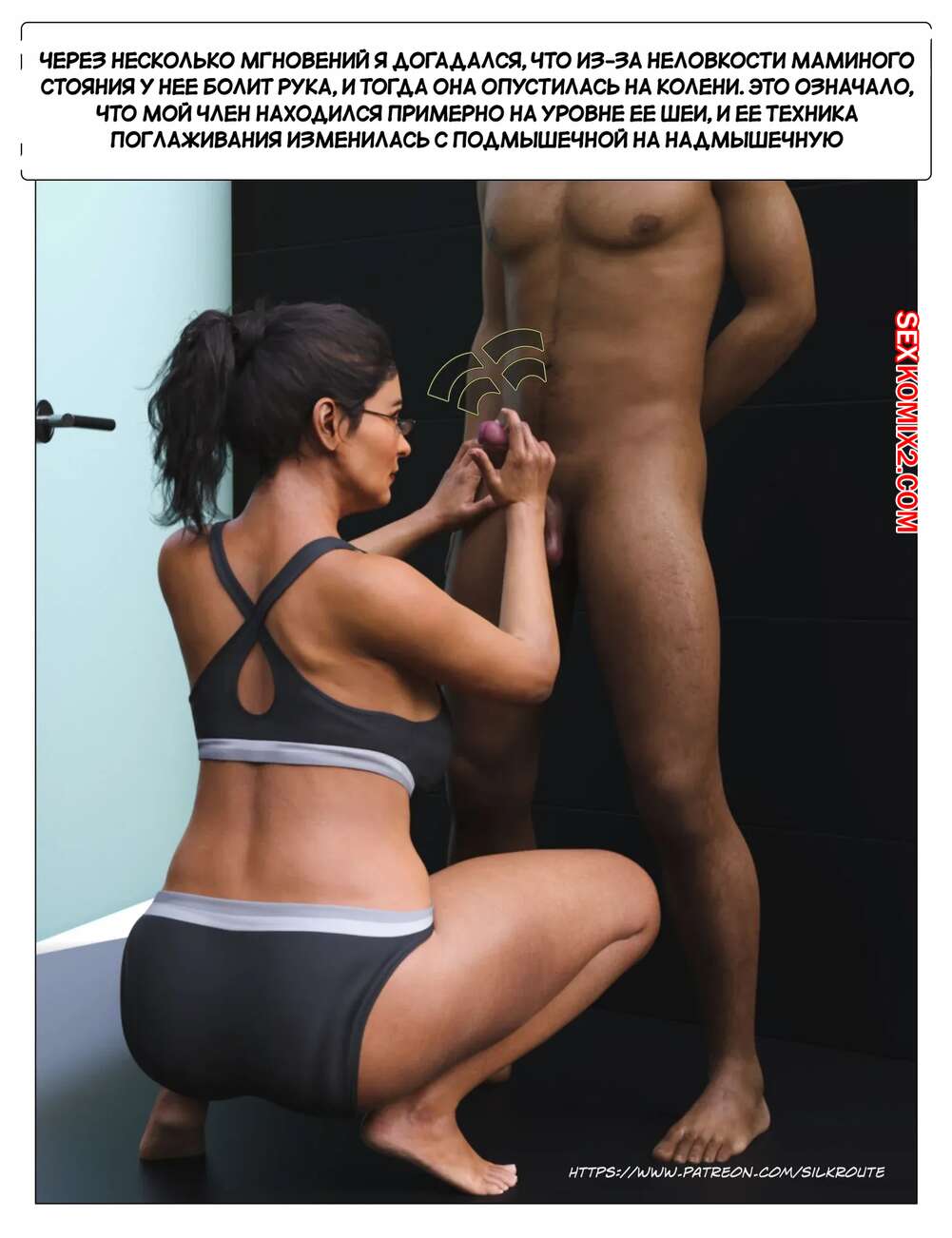 Порно комикс Прошу, помоги мне расслабиться. Часть 3. Please Relieve Me. Silk Route, Ira Raman У парня снова заболел член, когда он принимал душ, так что его мамочка сразу пришла к нему на помощь. Милфа встала на колени и стала дрочить хуй сына, от чего он быстро кончил.