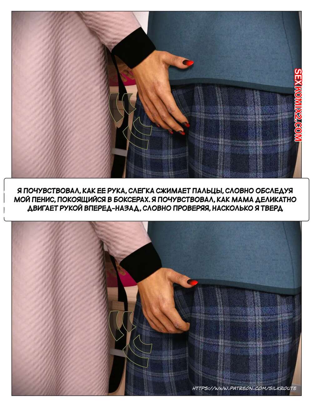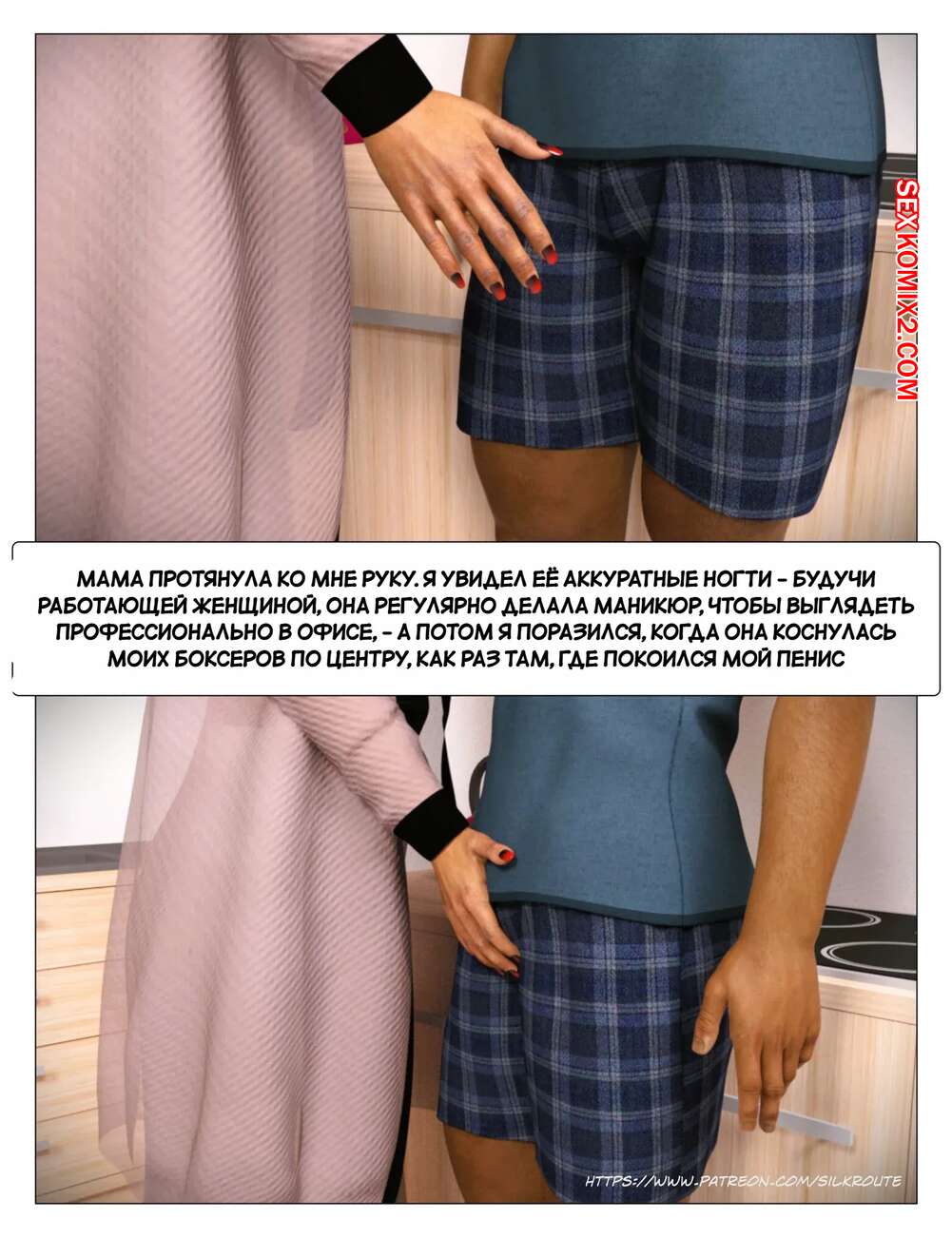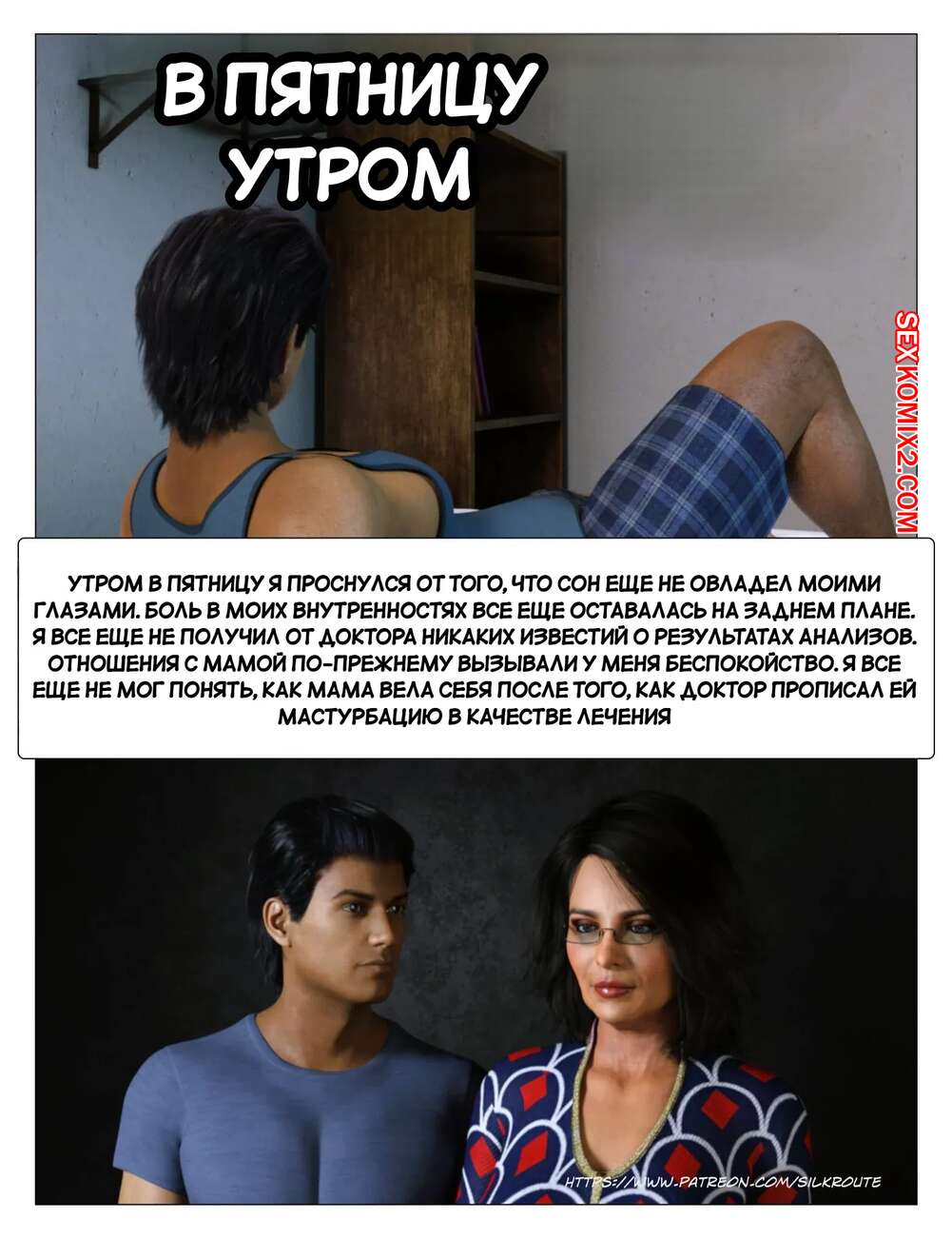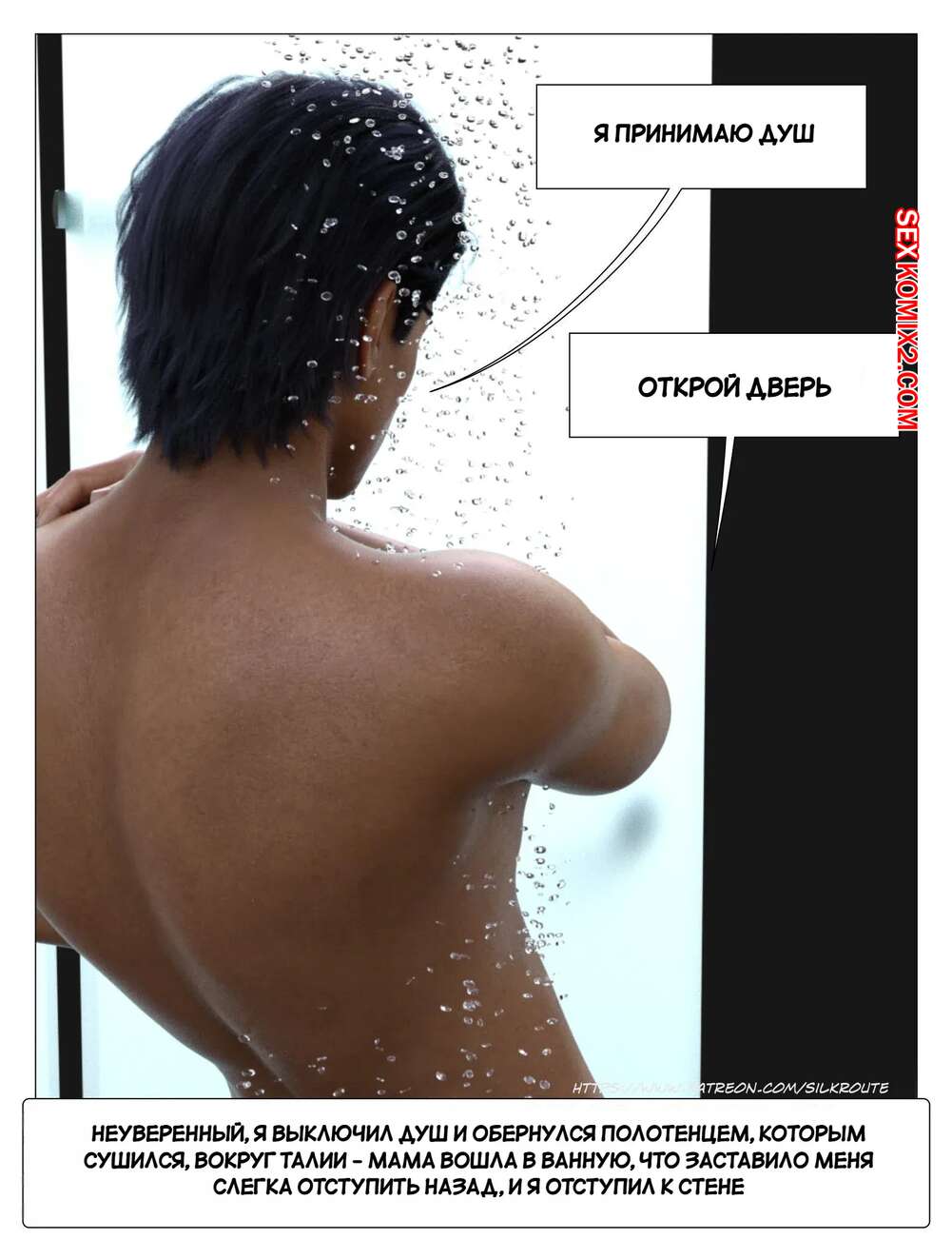 Порно комикс Прошу, помоги мне расслабиться. Часть 3. Please Relieve Me. Silk Route, Ira Raman У парня снова заболел член, когда он принимал душ, так что его мамочка сразу пришла к нему на помощь. Милфа встала на колени и стала дрочить хуй сына, от чего он быстро кончил.