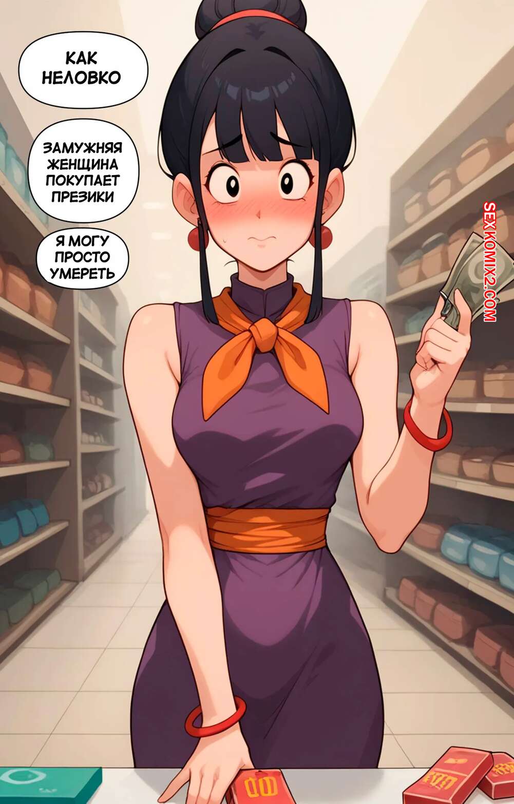 Порно комикс Dragon Ball. Отсутствие Гоку. Часть 3. Gokus Absence. Scarlet Meow Горячая брюнетка была очень возбуждена и решила повеселиться со своим дружком в отсутствие ее мужа. Красотка разделась и отсосала большой хуй парня, после чего дала ему себя выебать.