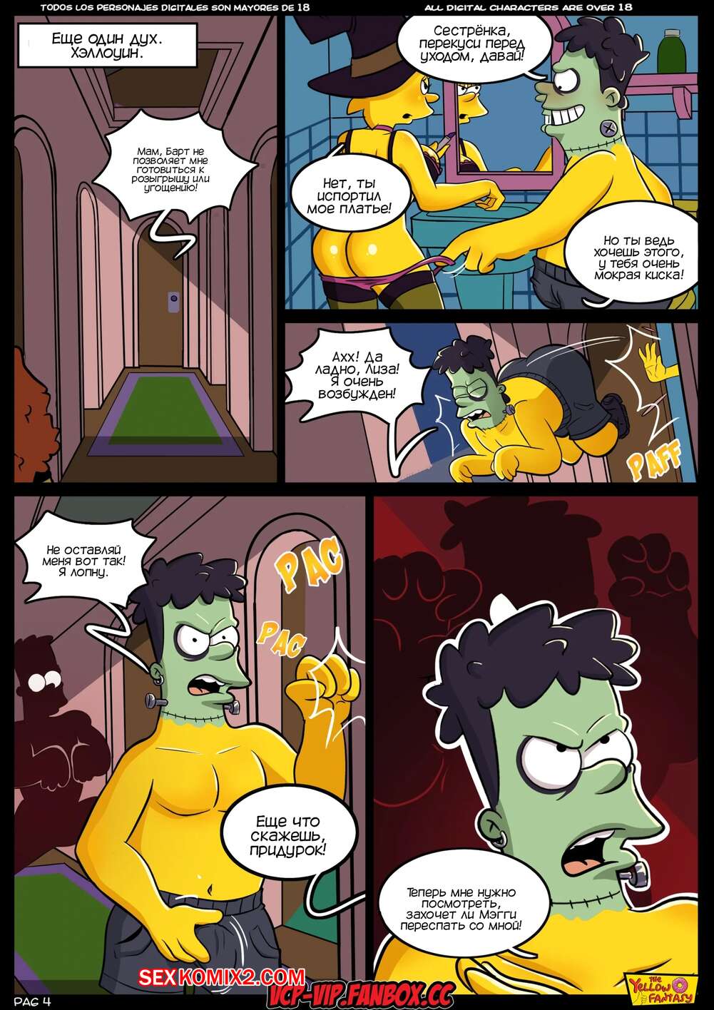 Порно комикс Симпсоны. Желтая фантазия. Шлюший дом ужасов на дереве Барт был очень возбужден ночью и отправился в комнату своих родителей, чтобы повеелиться с Мардж. Он достал свой член и мамка стала его сосать, но парню было мало.